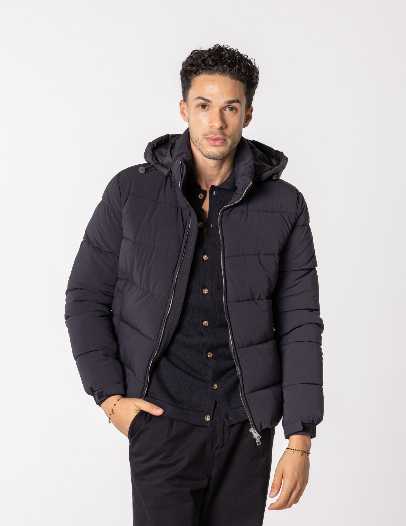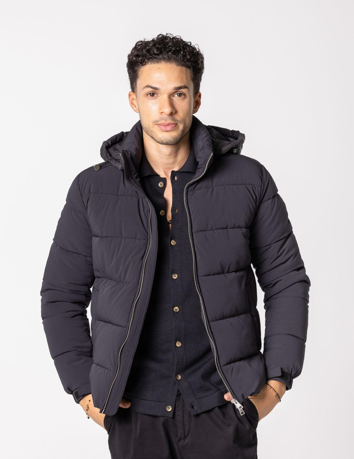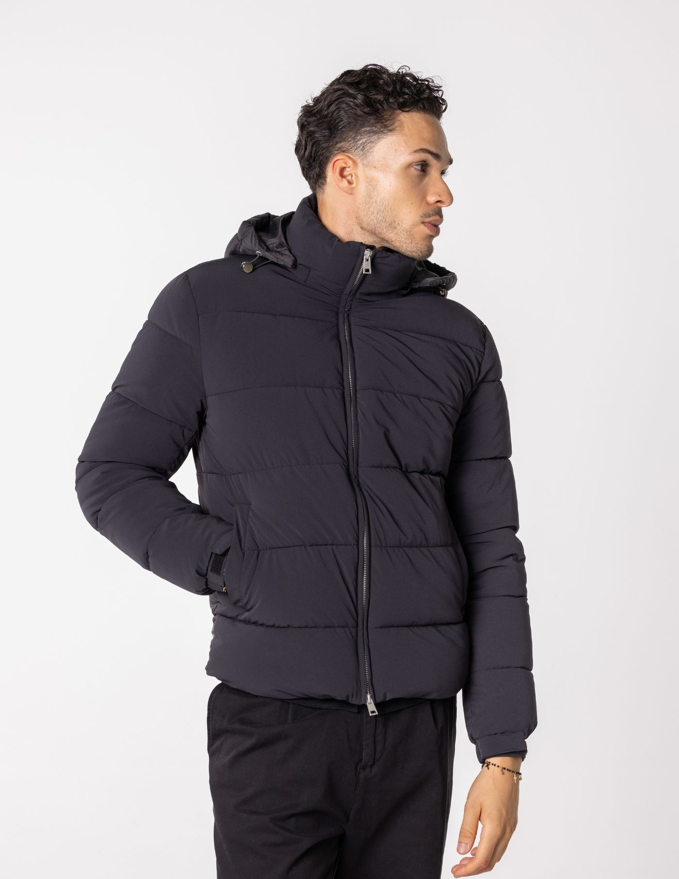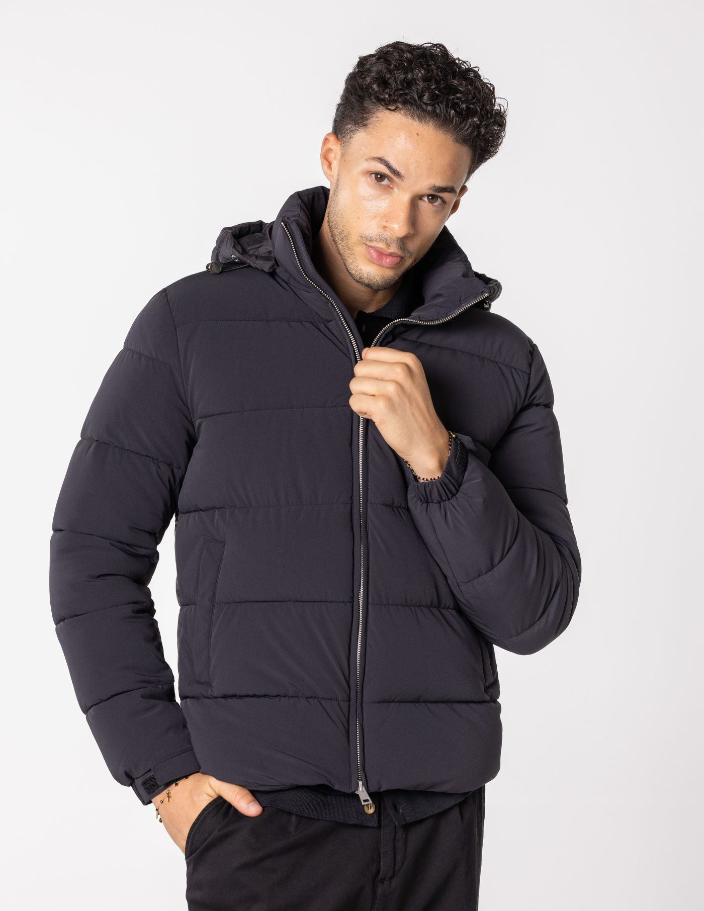 Detalhes: 2 bolsos / Termorregulador / Fecho de correr / Capuz ajustável e removível