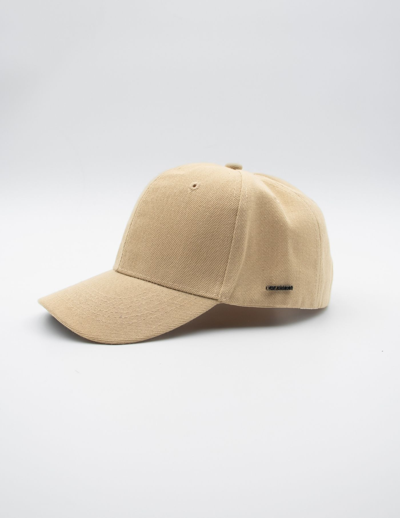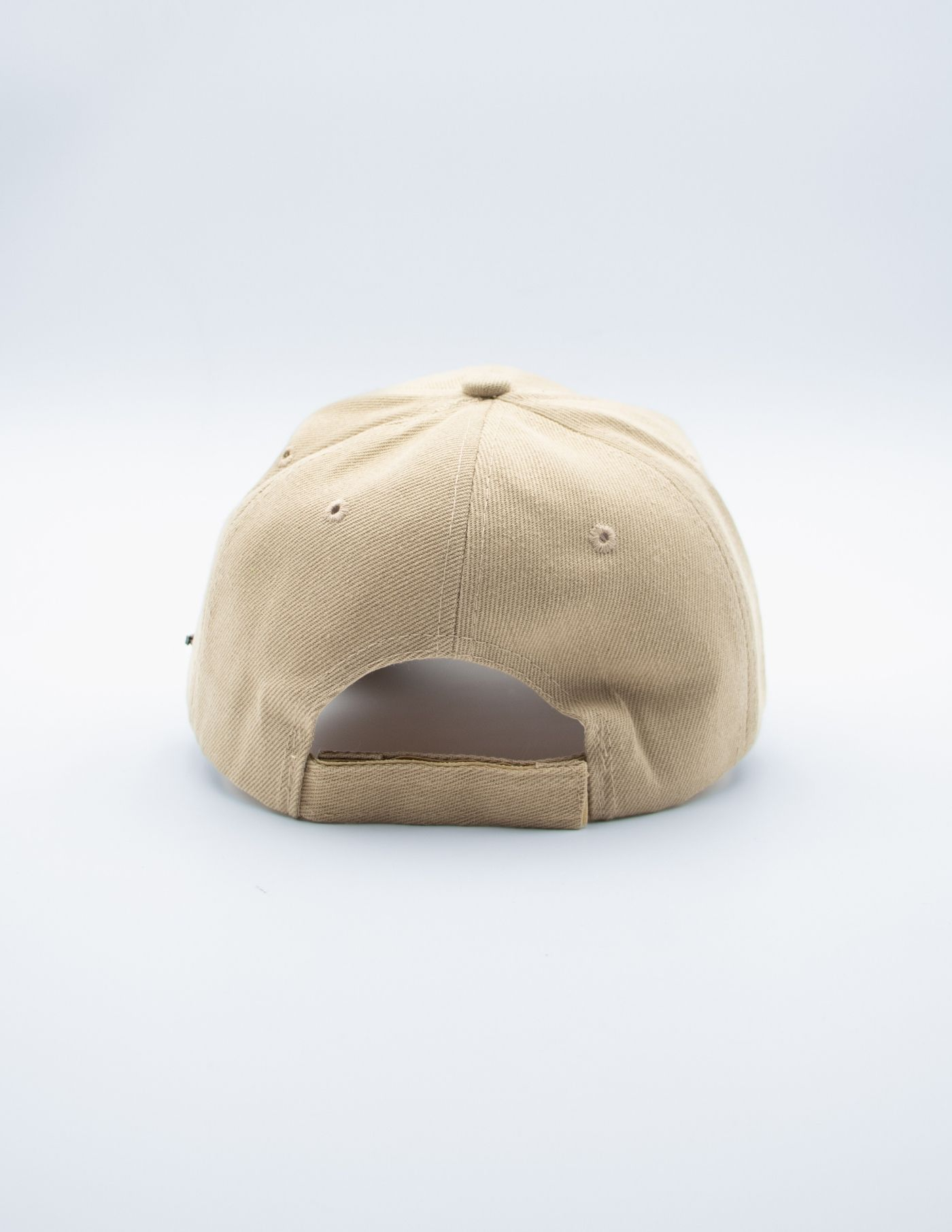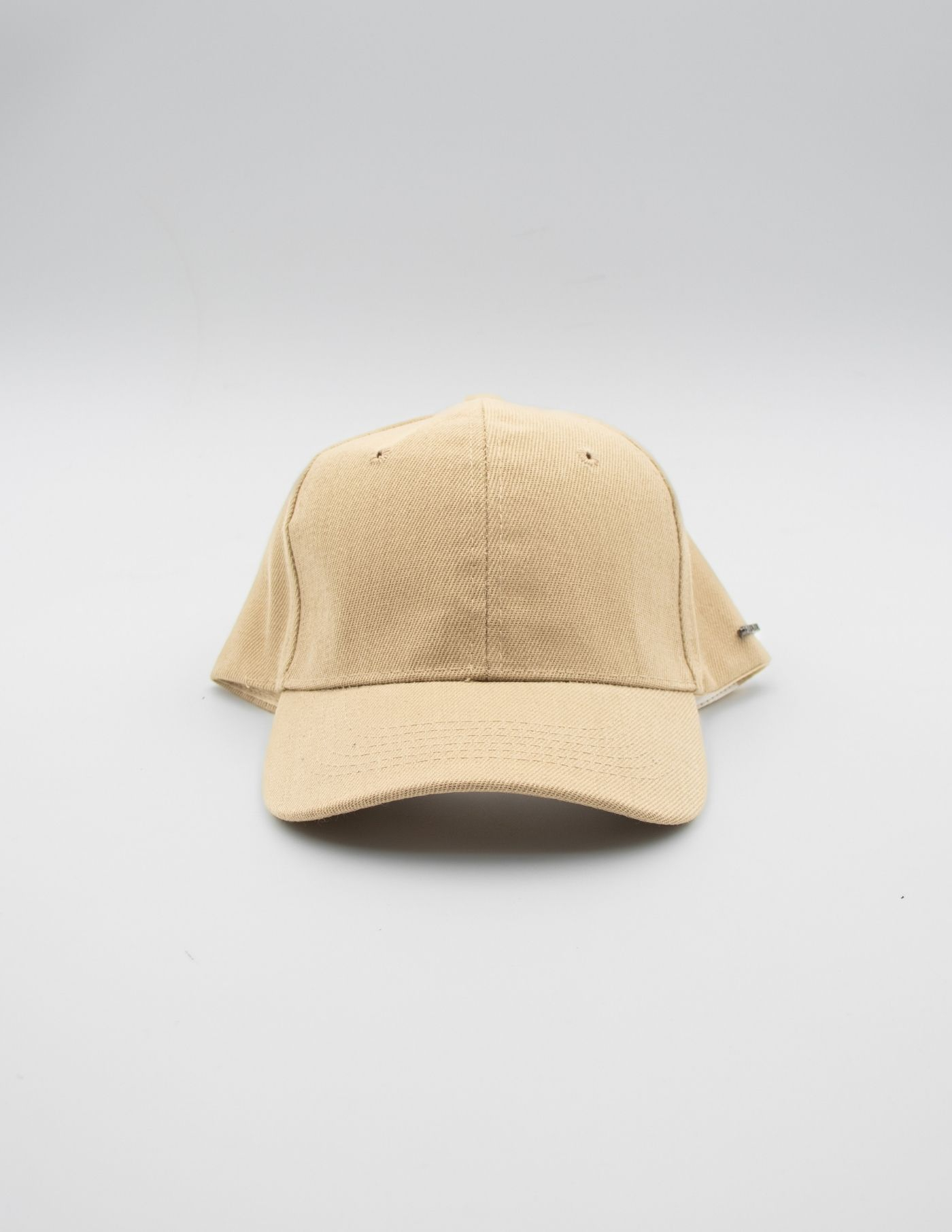 Boné bege com pala curva. Uma peça essencial para completar um look de verão.
