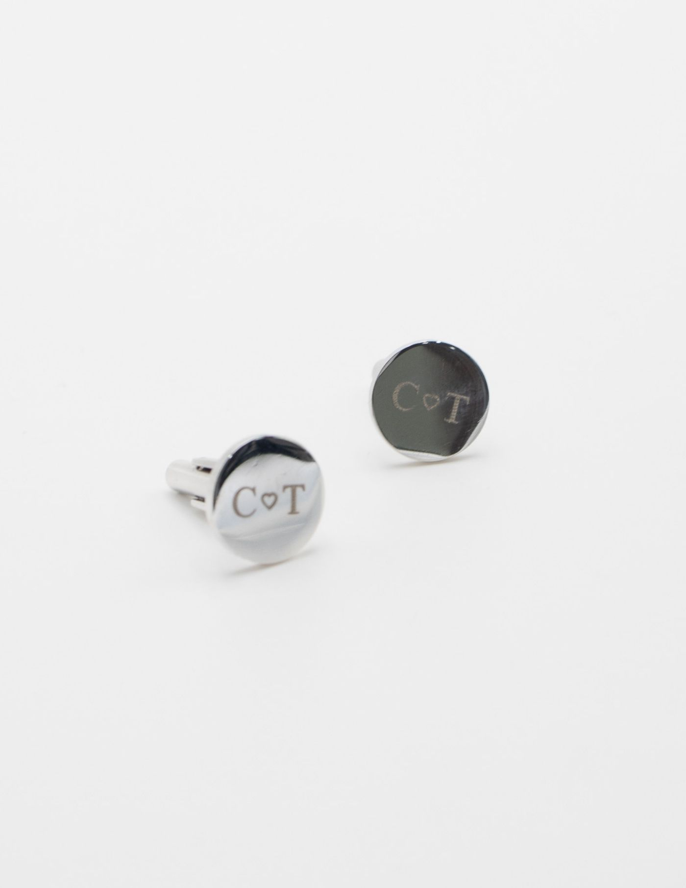 Botões de punho com gravação personalizada, em tom prateado, 100% aço inoxidável.