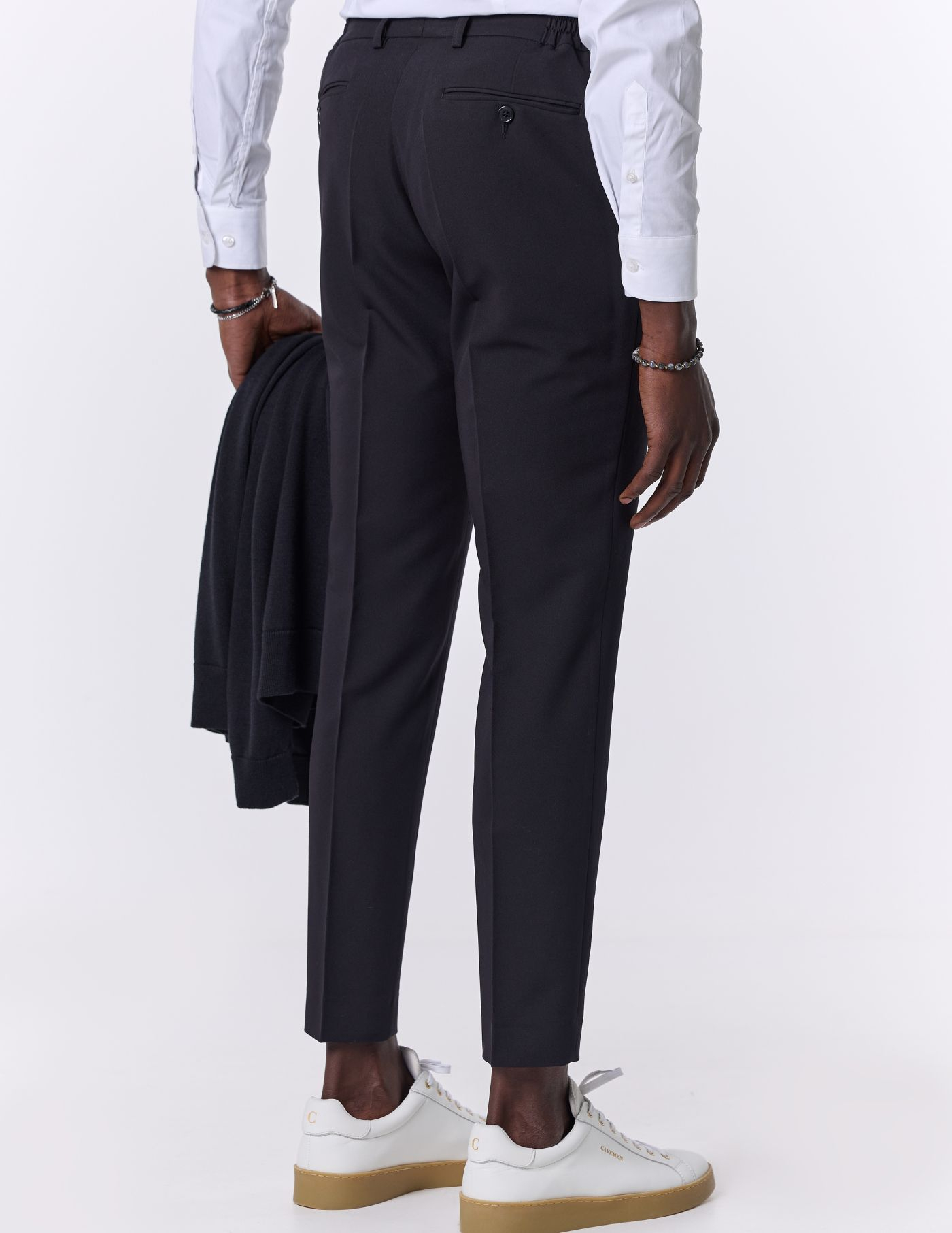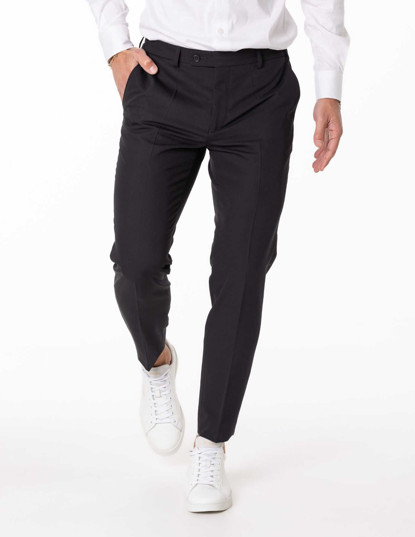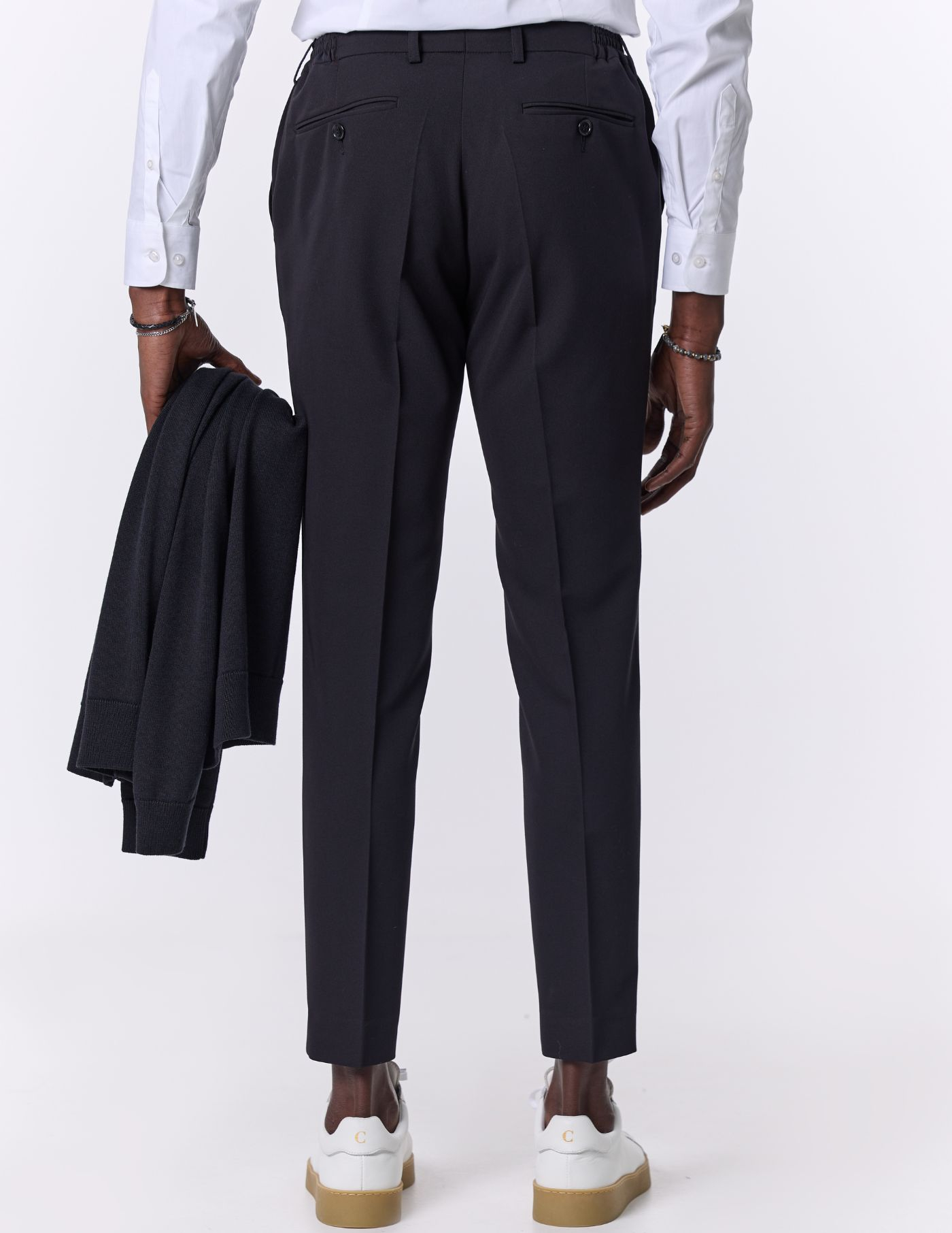 O vinco marcado adiciona um toque clássico e elegante, enquanto o estilo versátil torna esta peça ideal tanto para ocasiões formais quanto para momentos casuais que exigem um visual bem cuidado. Uma escolha indispensável para homens que valorizam o clássico redesenhado.