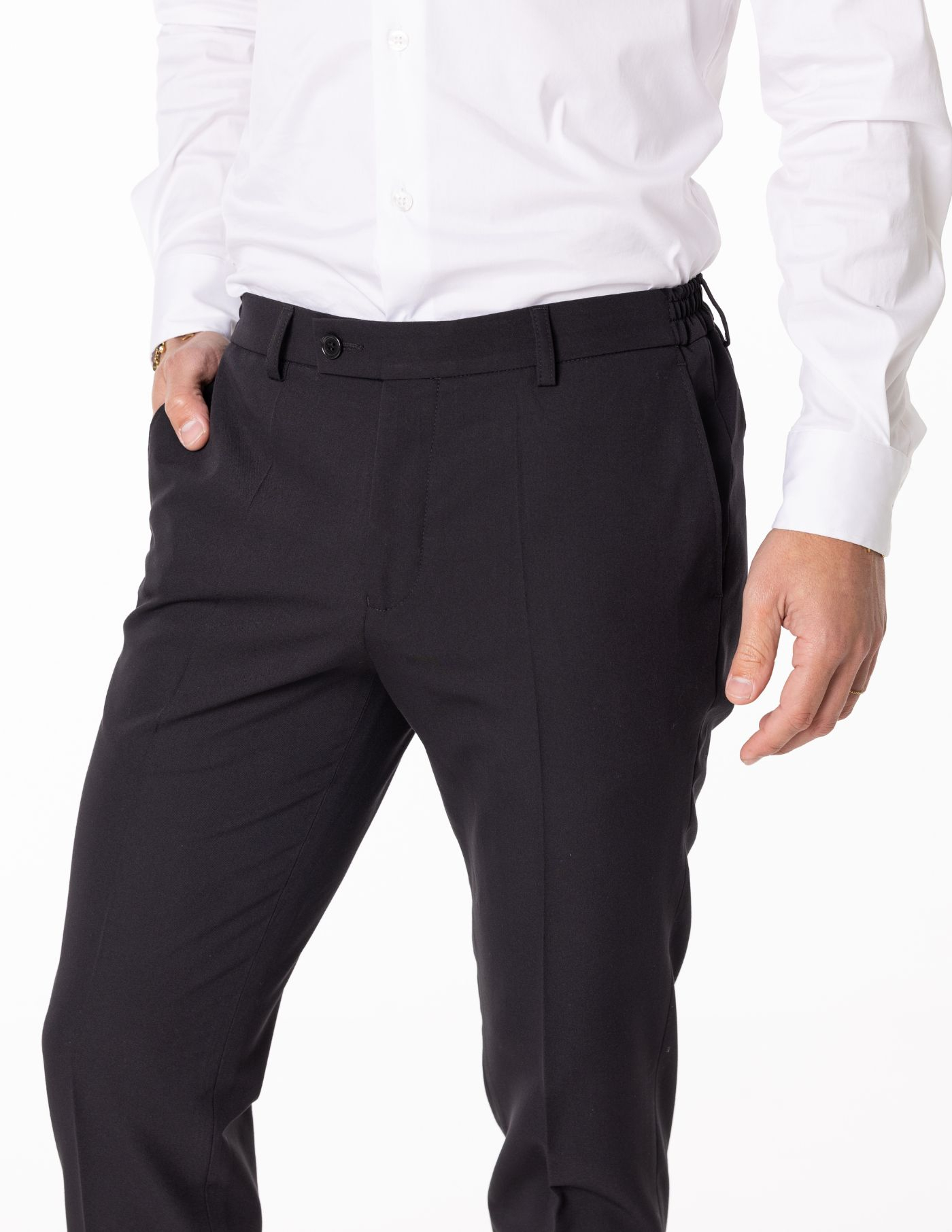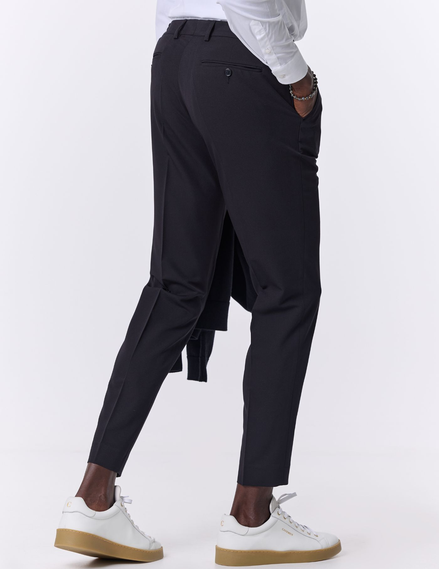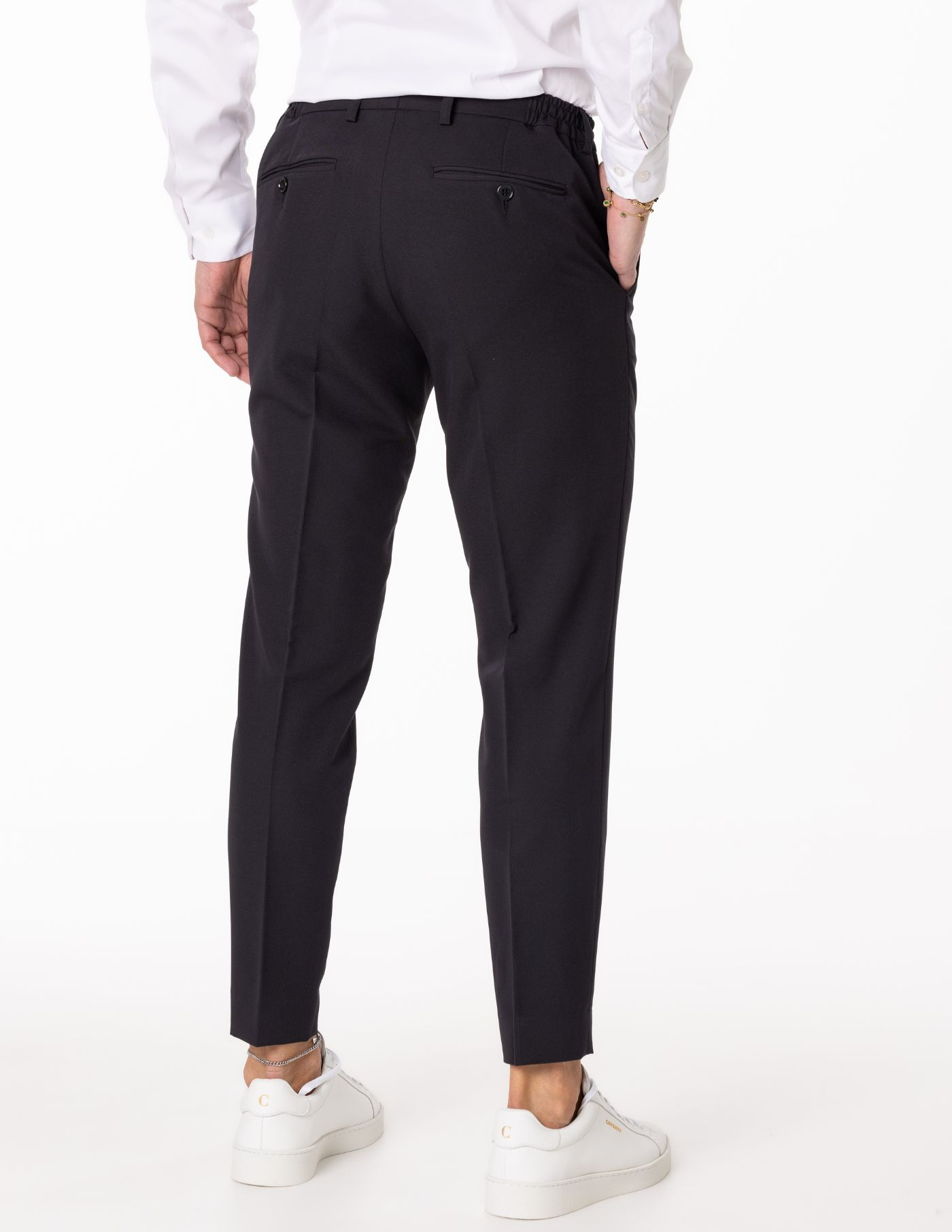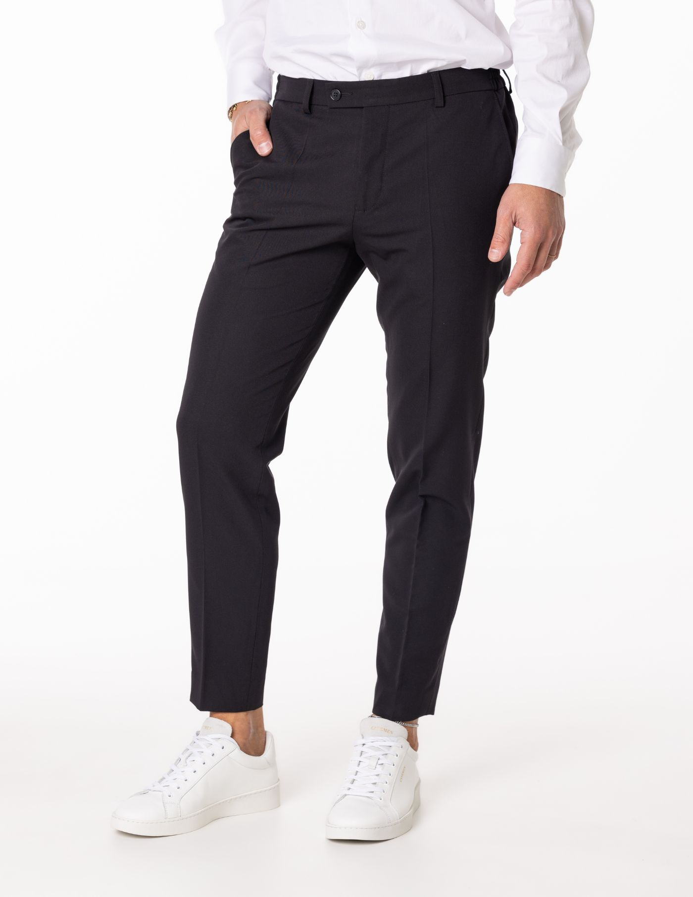 O vinco marcado adiciona um toque clássico e elegante, enquanto o estilo versátil torna esta peça ideal tanto para ocasiões formais quanto para momentos casuais que exigem um visual bem cuidado. Uma escolha indispensável para homens que valorizam o clássico redesenhado.