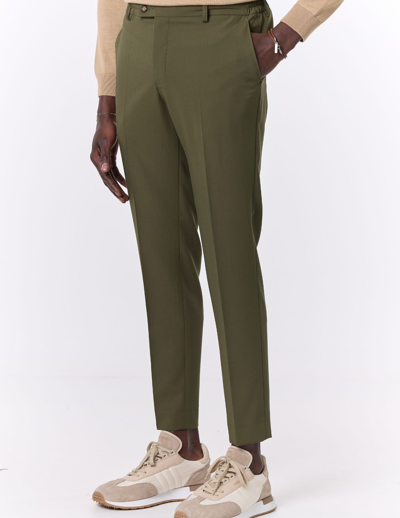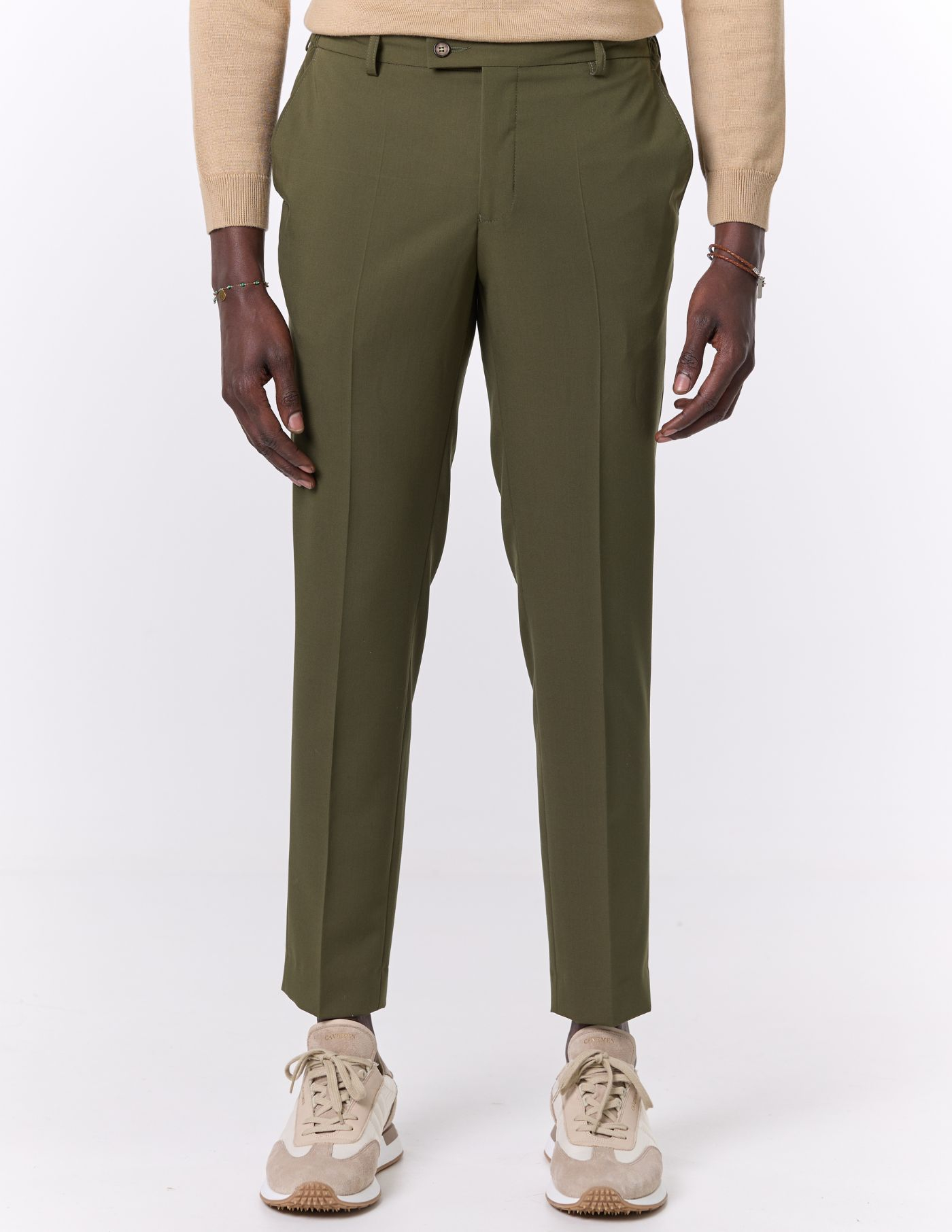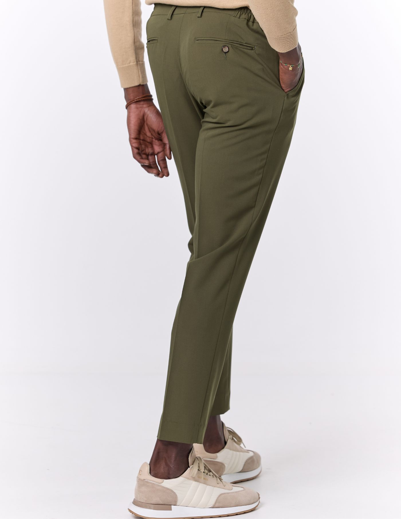 O vinco marcado adiciona um toque clássico e elegante, enquanto o estilo versátil torna esta peça ideal tanto para ocasiões formais quanto para momentos casuais que exigem um visual bem cuidado. Uma escolha indispensável para homens que valorizam o clássico redesenhado.