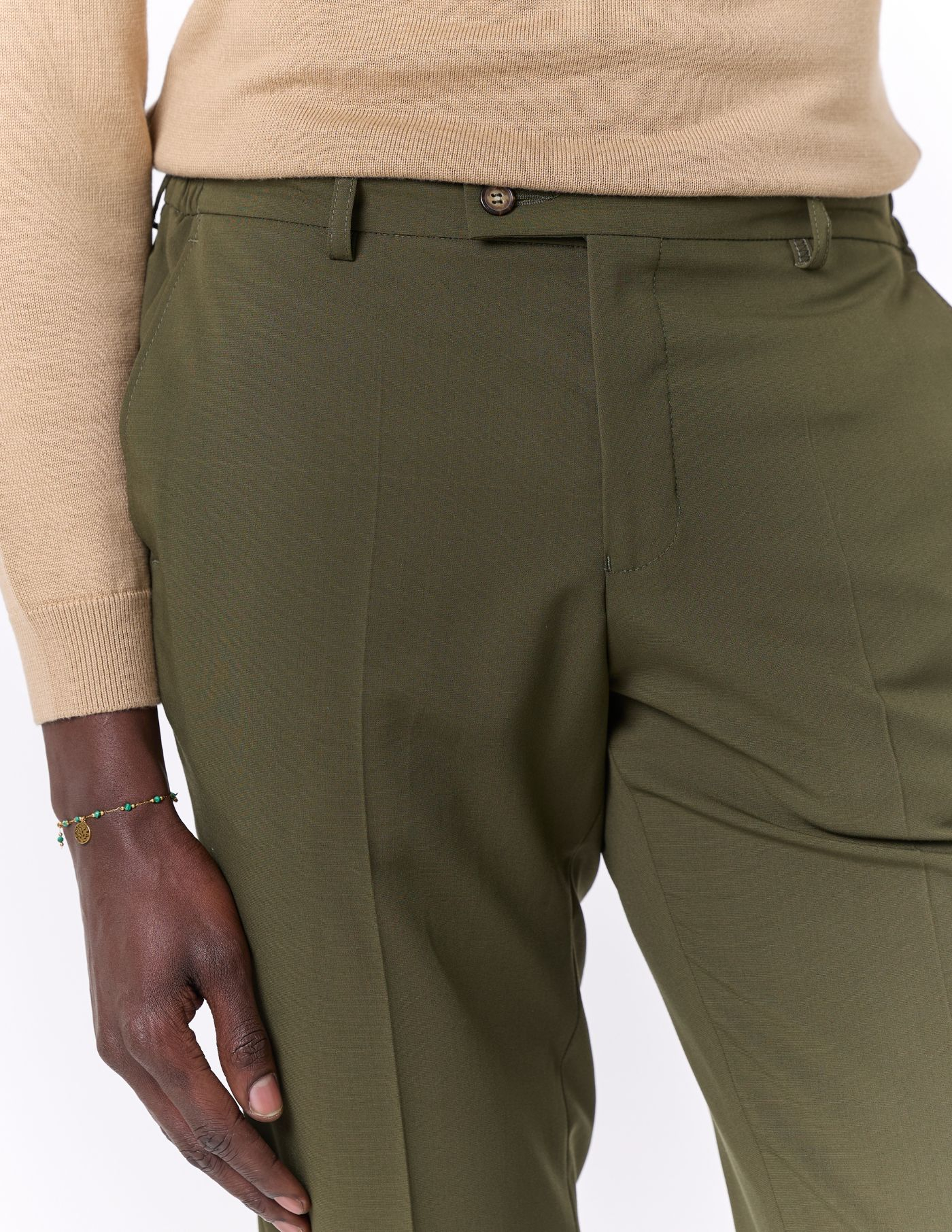 Calça de alfaiataria, com design distinto e atenção aos detalhes. Apresenta cinto de trespasse com fecho manual, costura aberta e acabamento que realça a sofisticação. Confeccionada em tecido de elevado conforto, proporciona uma experiência leve e agradável ao longo do dia.