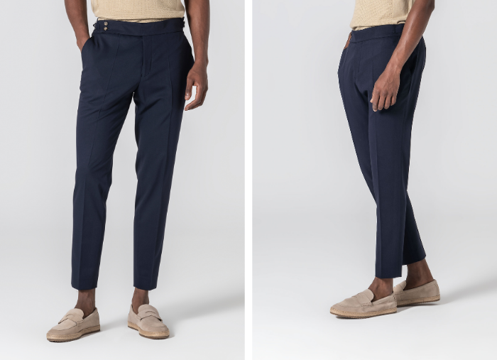 O vinco marcado adiciona um toque clássico e elegante, enquanto o estilo versátil torna esta peça ideal tanto para ocasiões formais quanto para momentos casuais que exigem um visual bem cuidado. Uma escolha indispensável para homens que valorizam o clássico redesenhado.