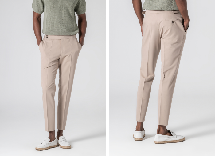 O vinco marcado adiciona um toque clássico e elegante, enquanto o estilo versátil torna esta peça ideal tanto para ocasiões formais quanto para momentos casuais que exigem um visual bem cuidado. Uma escolha indispensável para homens que valorizam o clássico redesenhado.
