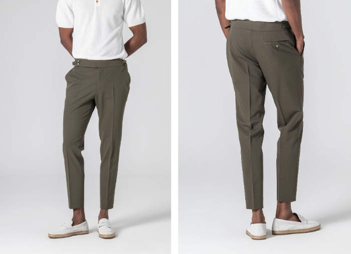 O vinco marcado adiciona um toque clássico e elegante, enquanto o estilo versátil torna esta peça ideal tanto para ocasiões formais quanto para momentos casuais que exigem um visual bem cuidado. Uma escolha indispensável para homens que valorizam o clássico redesenhado.