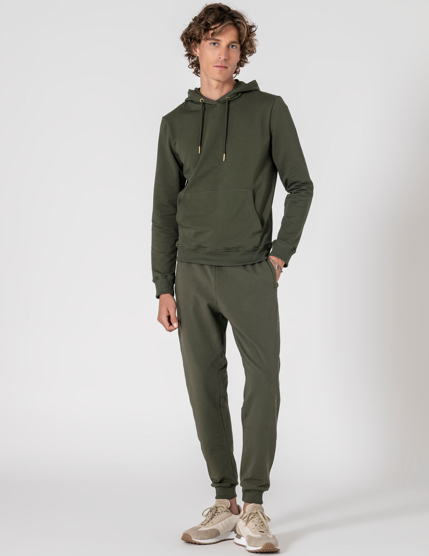 A calça de fato de treino masculina é ideal para quem procura liberdade de movimento e praticidade. Confeccionada com materiais de alta qualidade, garante elasticidade e resistência. O seu design moderno e o ajuste confortável proporcionam o suporte necessário, mantendo o máximo de comodidade. Com bolsos laterais, cós elástico e cordão ajustável, é a escolha ideal para quem valoriza qualidade e funcionalidade.
