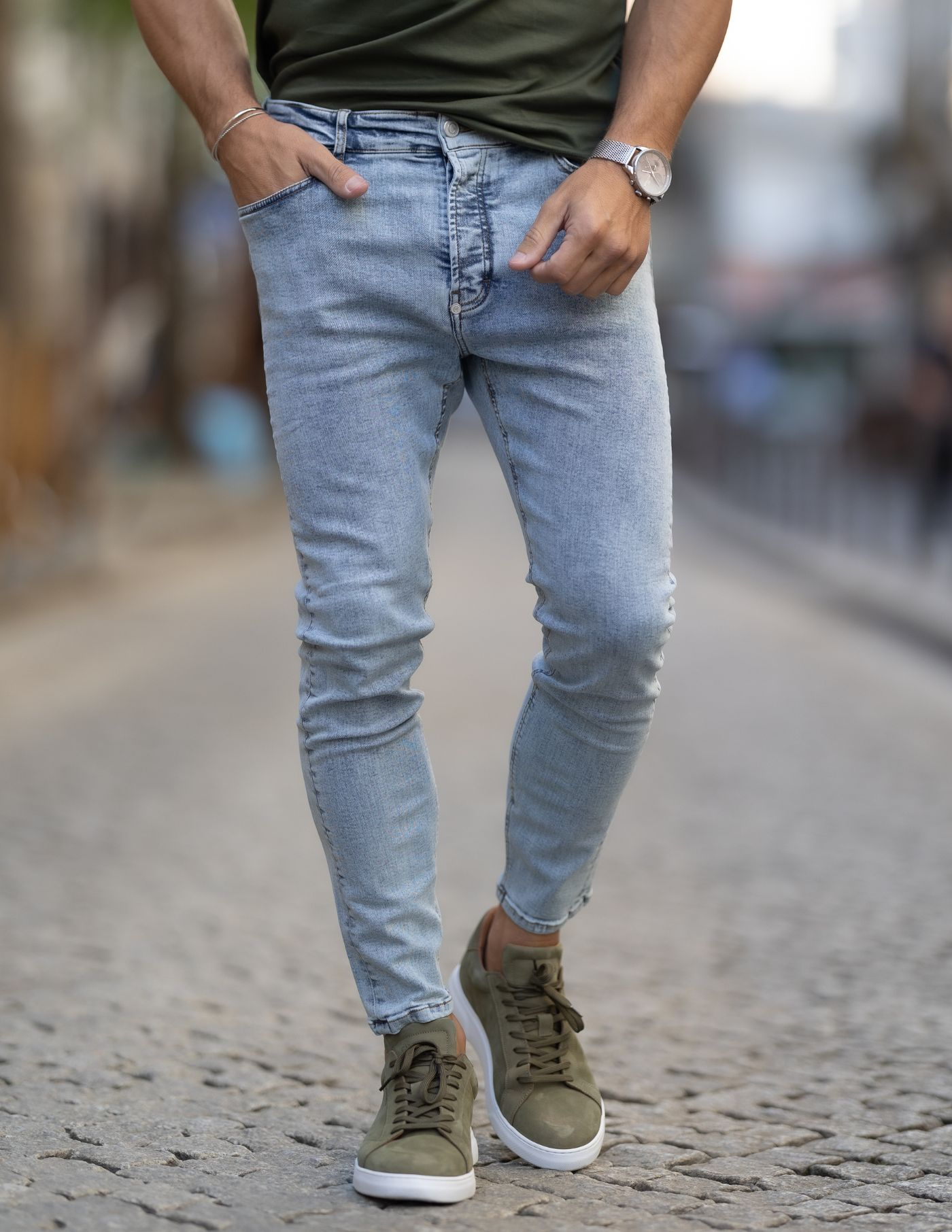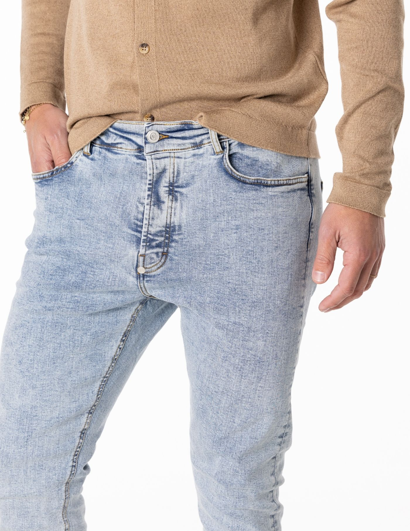 As calças de ganga CAVEMEN são para um homem que procura umas calças de denim, com o conforto de um fato de treino. A mistura de algodão e elastano concede uma sensação de liberdade de movimento e faz com que o material estique e siga cada movimento. As calças são slim fit, sem serem demasiado justas.