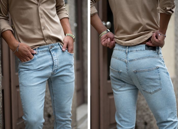 A elegância e robustez do denim, com o conforto de um fato de treino.