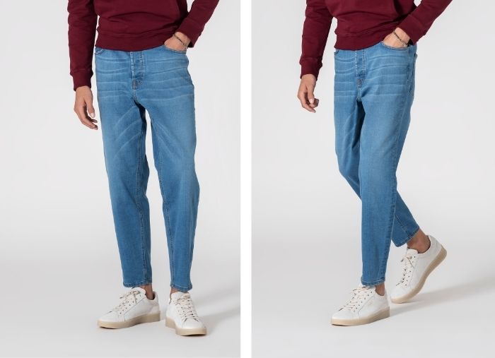 As calças de ganga modelo straight para homem têm um corte reto e confortável, com ajuste reto que vai da cintura até à perna.