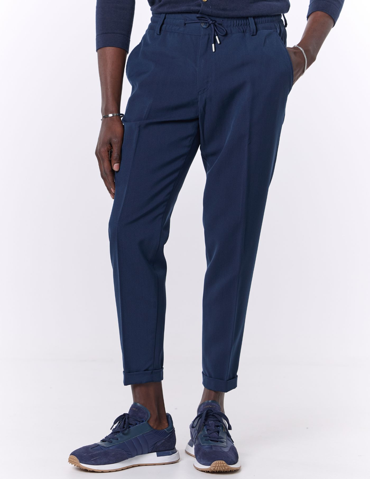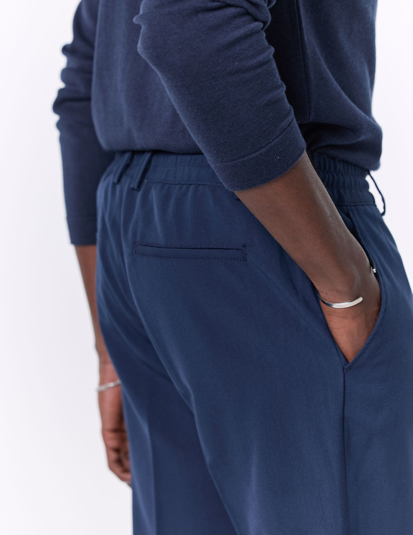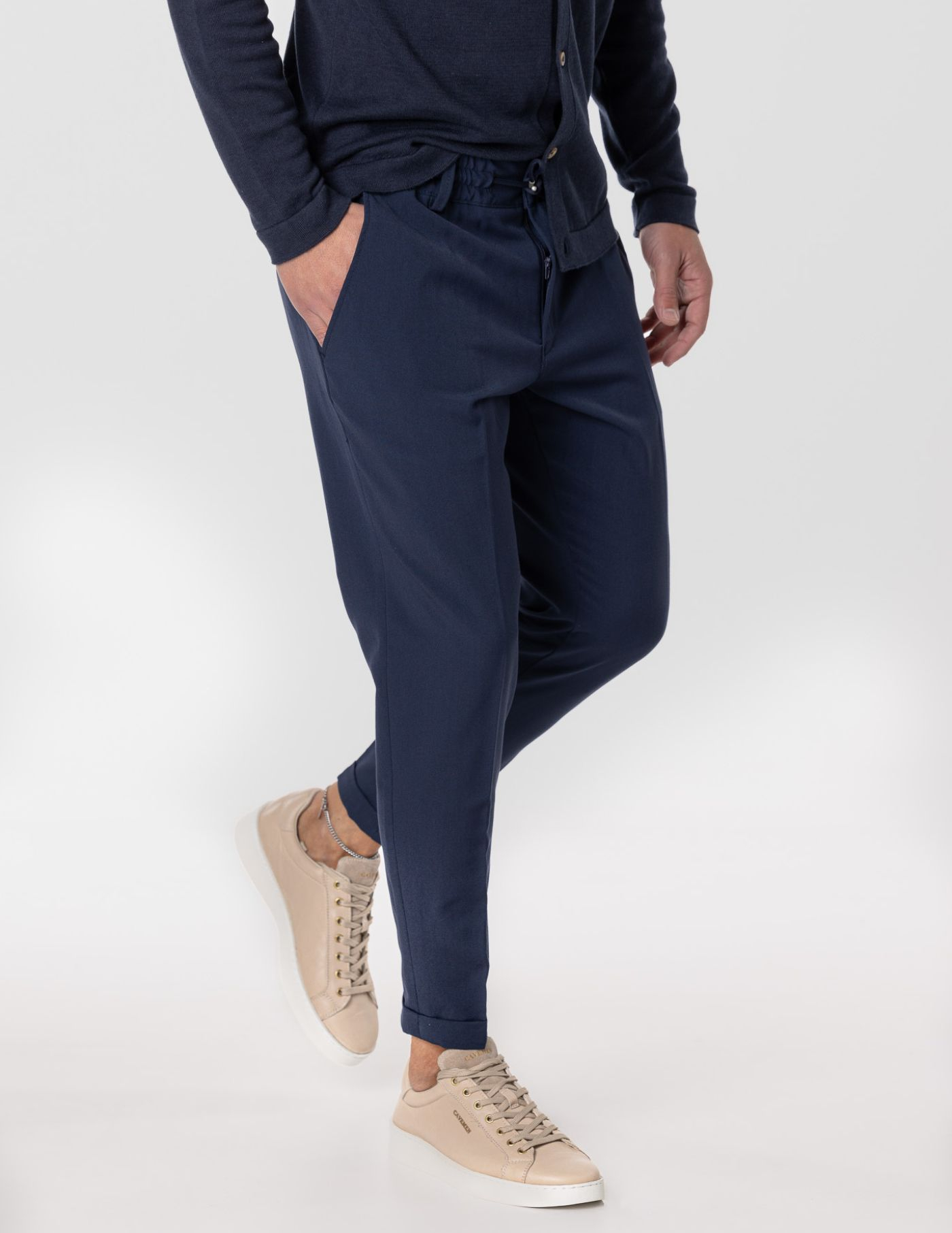 Calças cropped fit são a opção perfeita para quem procura conforto e um corte moderno. Confeccionadas em tecido leve e de alta qualidade, garantem liberdade de movimento e um ajuste confortável. O cordão na cintura permite um ajuste personalizado, enquanto as vírolas nas barras dão um acabamento refinado e discreto.