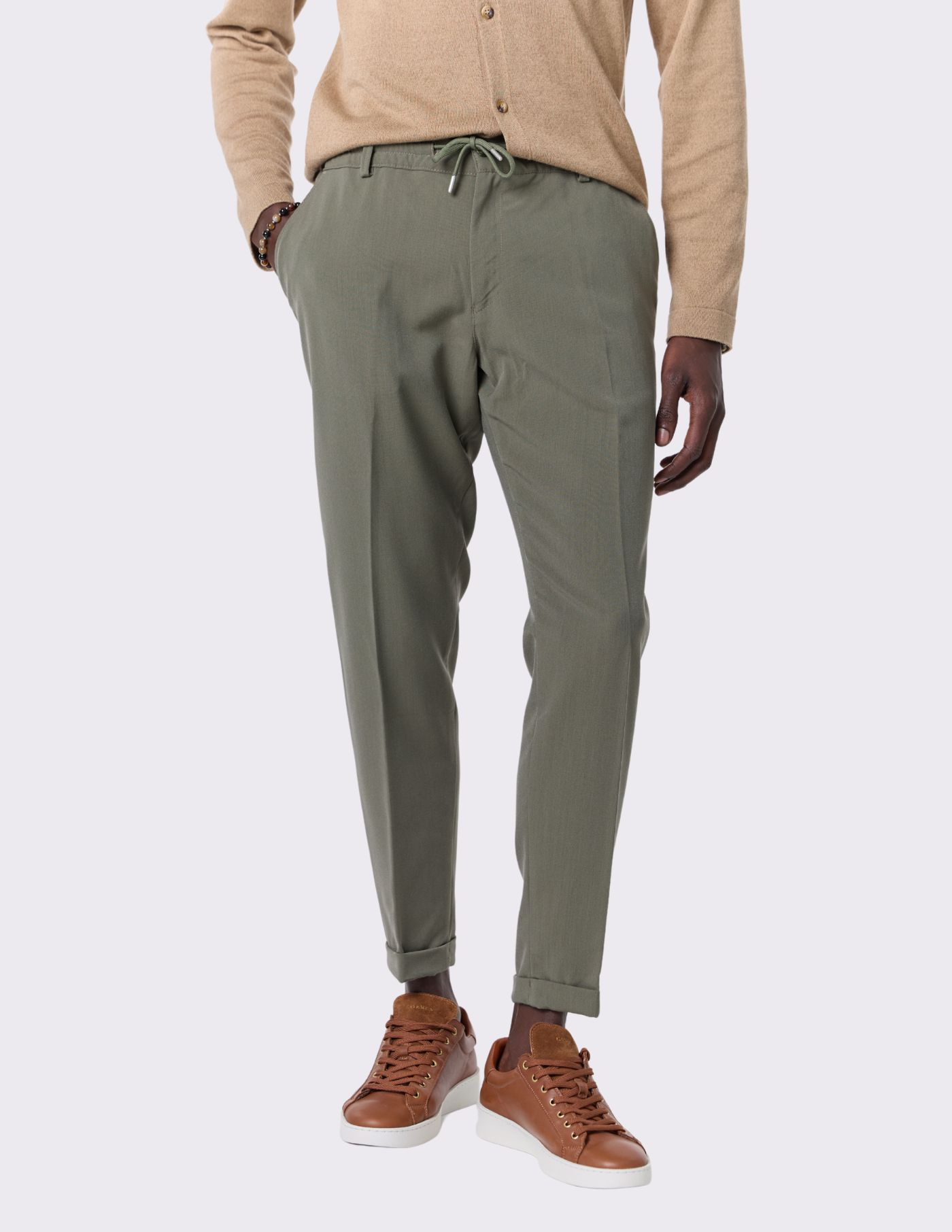 Calças cropped fit são a opção perfeita para quem procura conforto e um corte moderno. Confeccionadas em tecido leve e de alta qualidade, garantem liberdade de movimento e um ajuste confortável. O cordão na cintura permite um ajuste personalizado, enquanto as vírolas nas barras dão um acabamento refinado e discreto.
