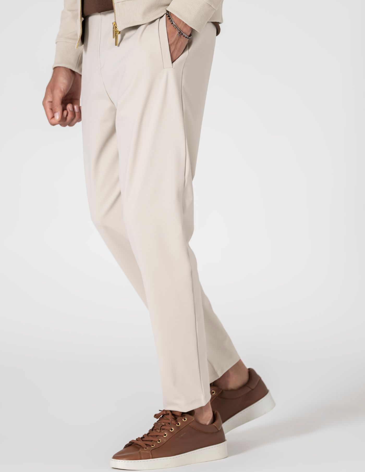 Estas calças, confeccionadas com poliamida e elastano, oferecem uma combinação única de resistência e flexibilidade. O tecido garante liberdade de movimentos, mantendo o ajuste perfeito ao corpo. Leves e duráveis, são ideais para o dia a dia, proporcionando conforto sem comprometer a estética. Com um design moderno, são versáteis e podem ser usadas tanto em looks casuais como em ocasiões mais descontraídas.