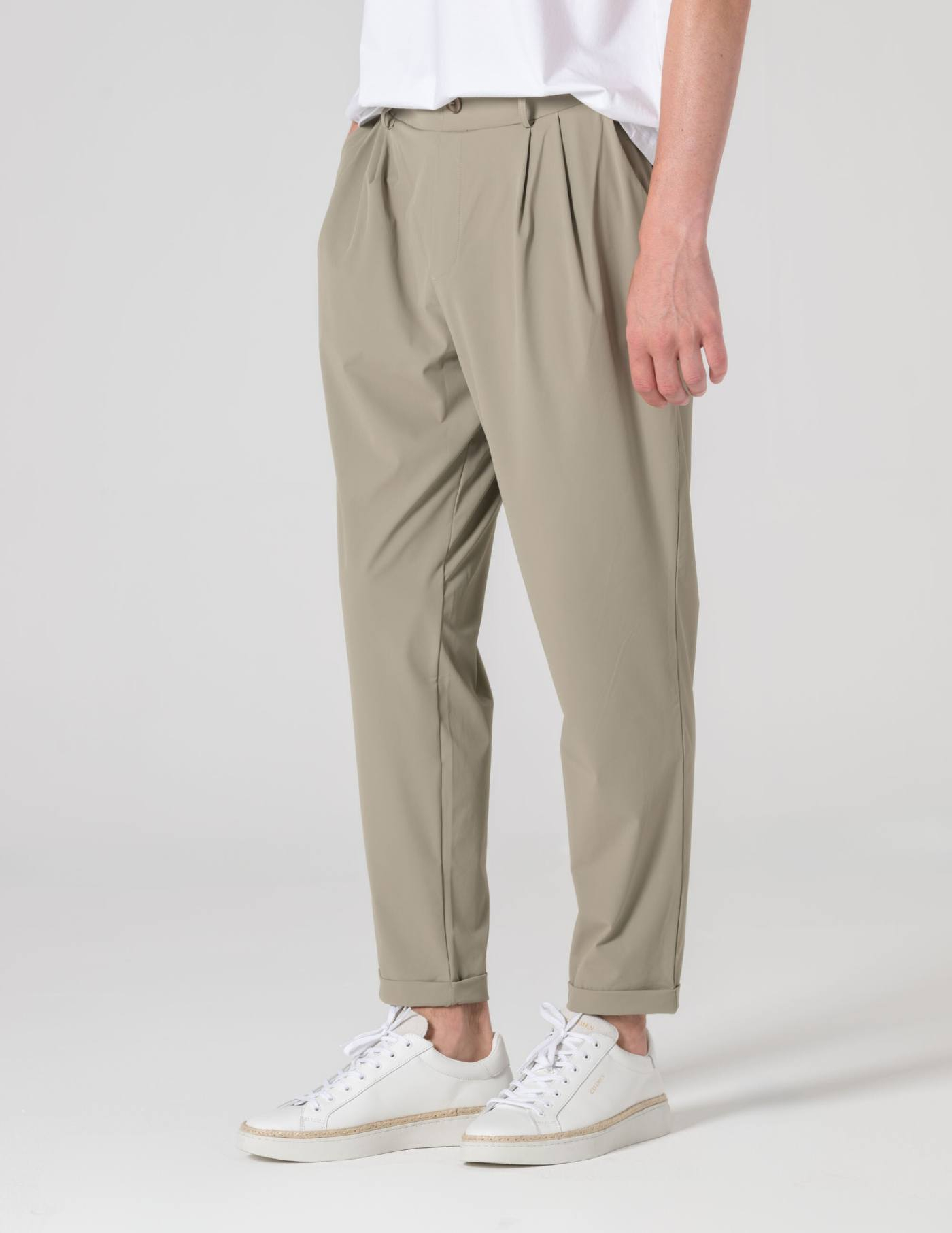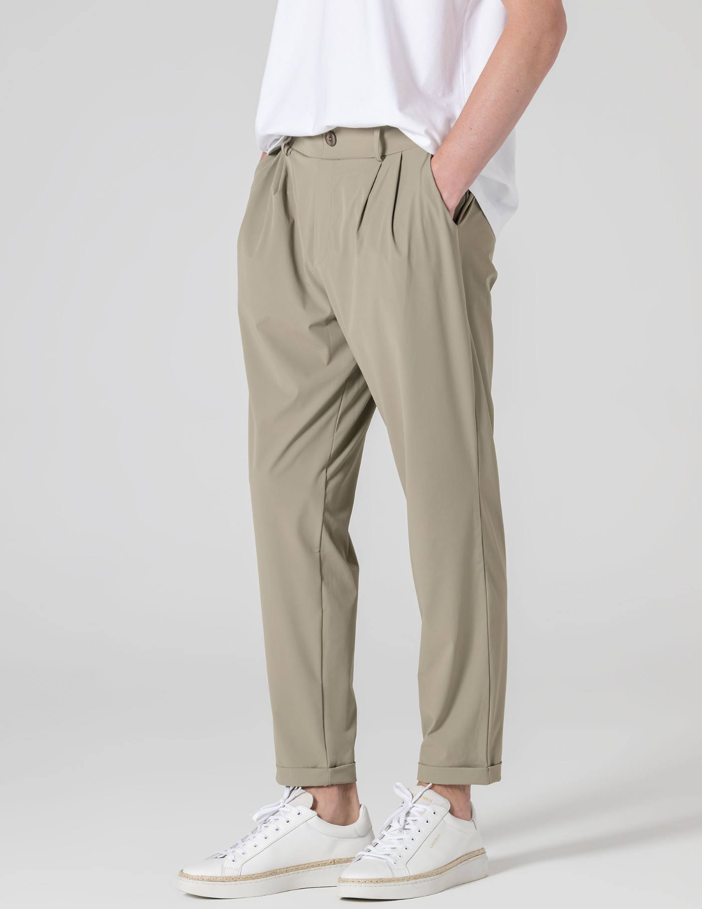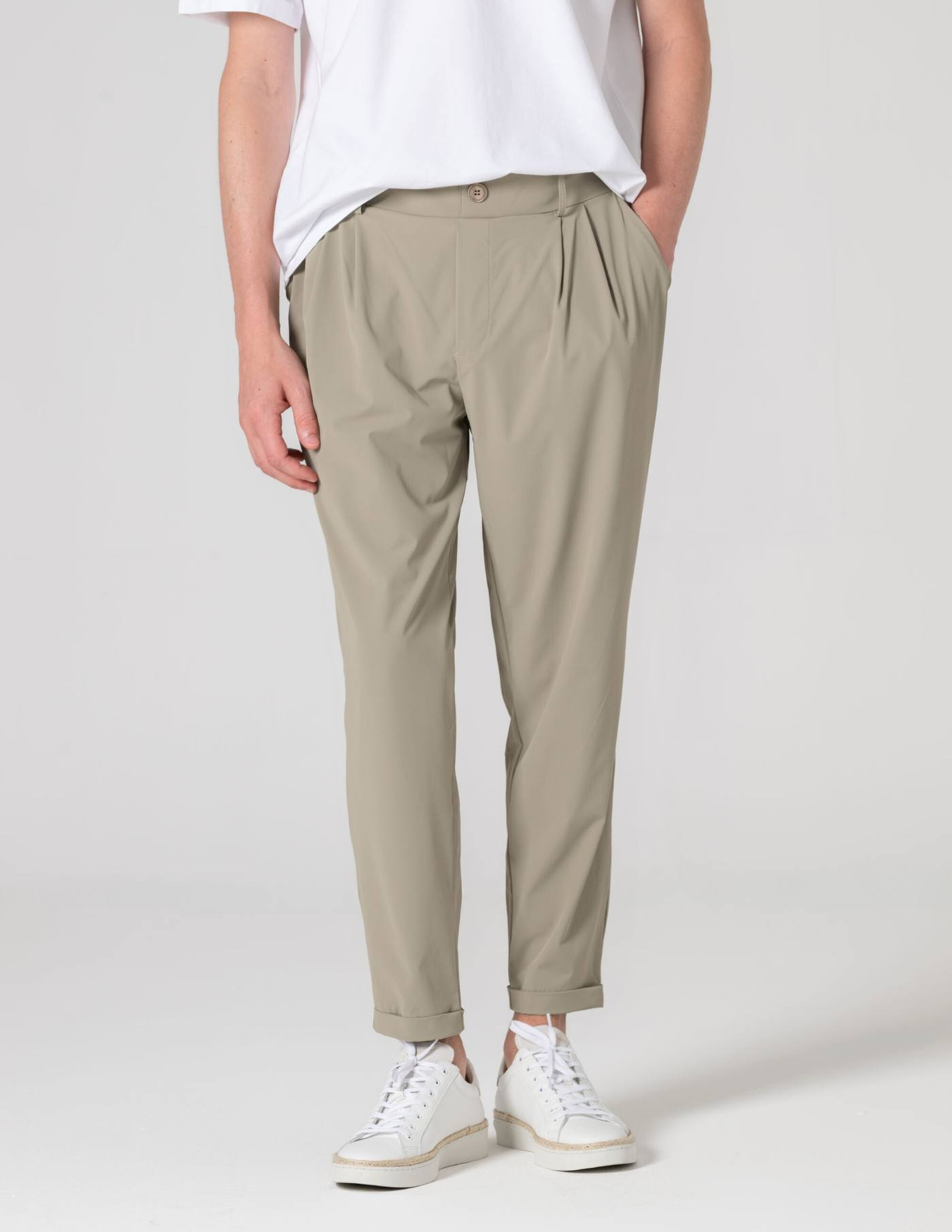 Calça em tecido técnico leve e fresco, numa mistura de nylon e elastano que garante conforto e liberdade de movimentos sem perder a forma, pensada para dias mais quentes.