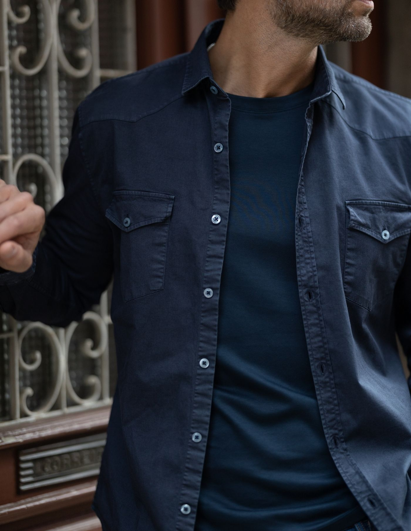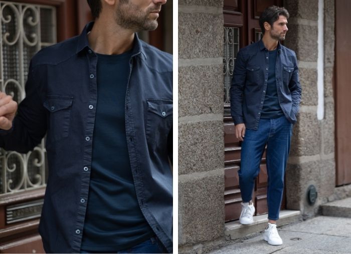 A peça ideal para um look casual. Muito versátil, combina perfeitamente com uma camisa, t-shirt ou malha. A camisa é slim fit, leve e a matéria prima é suave ao toque. Não enruga facilmente, mantendo-se elegante ao longo do dia. Finalizada com dois bolsos tipo camisa e botões azuis.