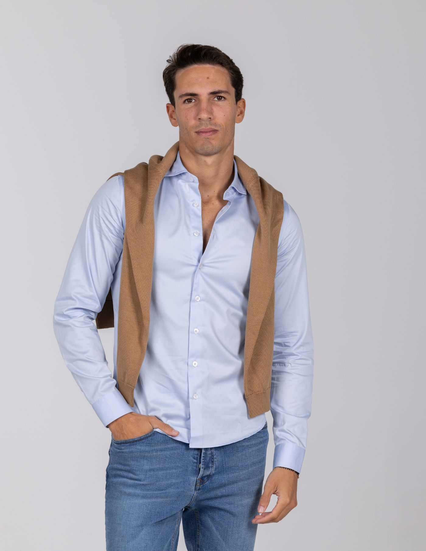 É confortável e versátil, nunca abdicando da elegância de uma camisa clássica slim fit. A matéria prima é 100% algodão e confecionada com fio 120, conferindo leveza, toque suave e uma estética irrepreensivel. Uma peça essencial em qualquer guarda-roupa.