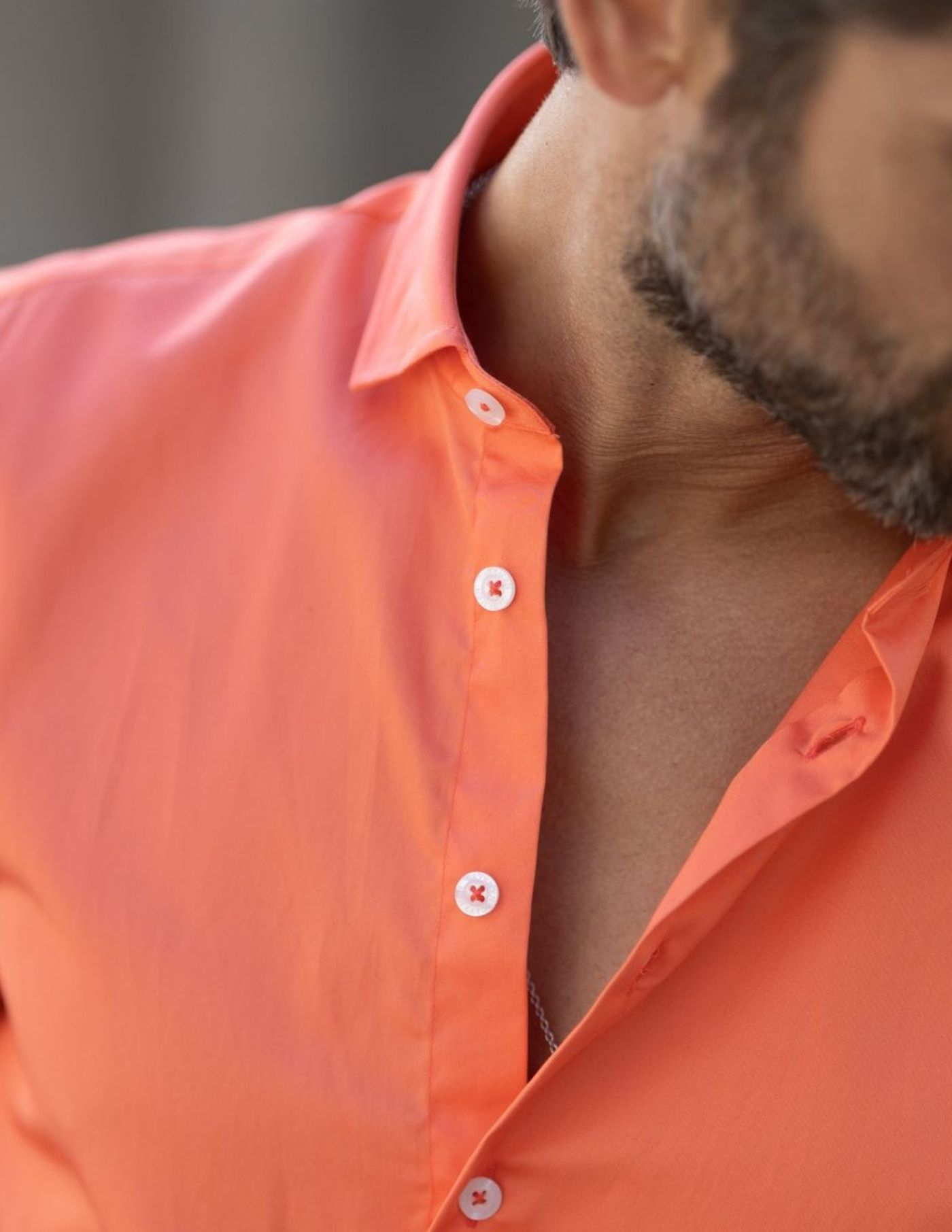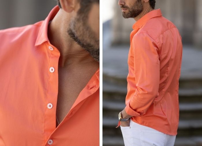 Detalhes: Colarinho italiano / Botões brancos