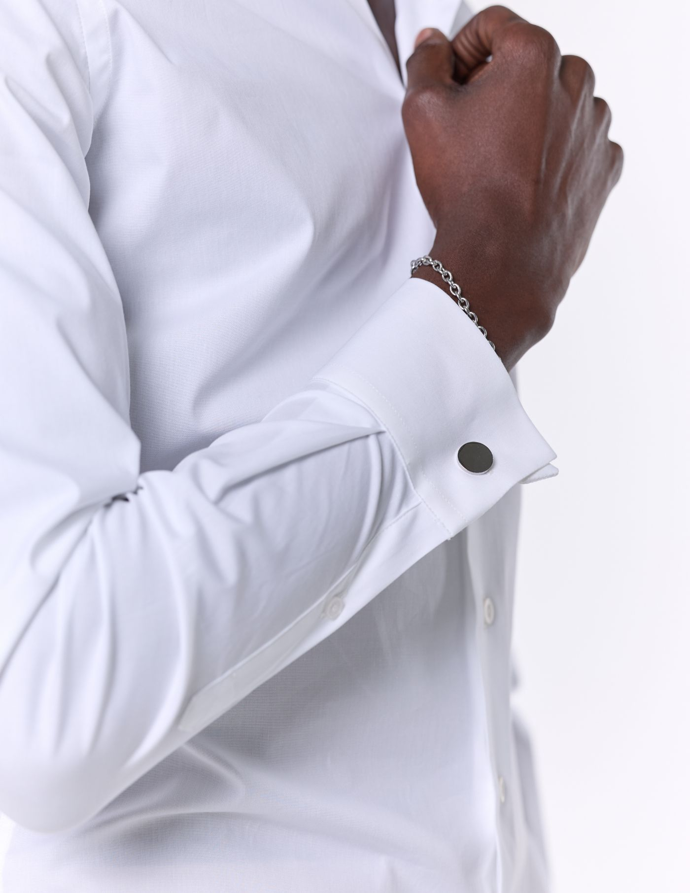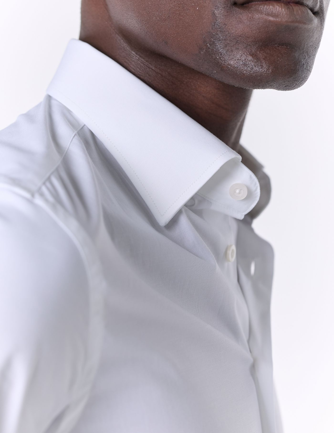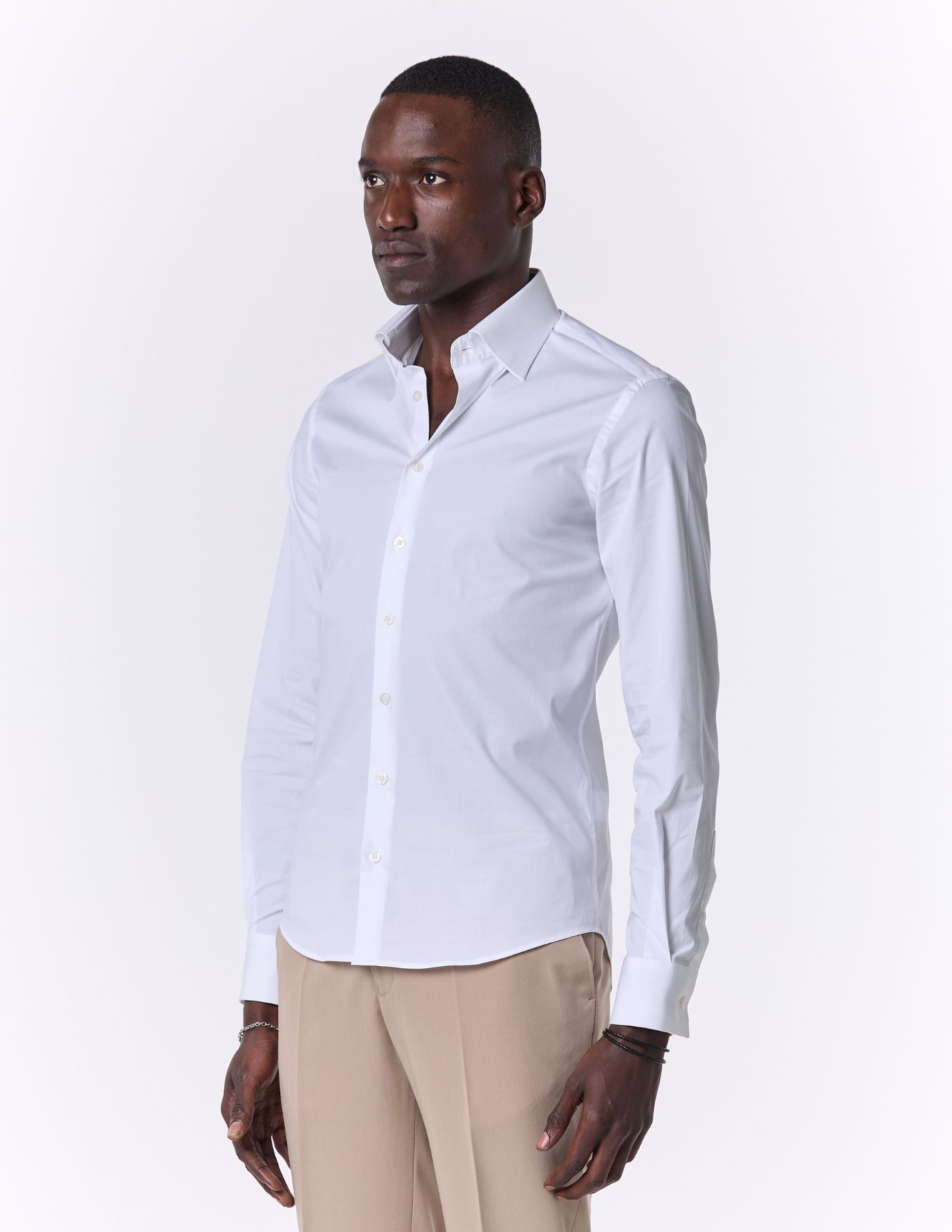 É leve e elegante, e combina o corte slim fit com uma gola ligeiramente mais alta e opção de casa para usar botão de punho.