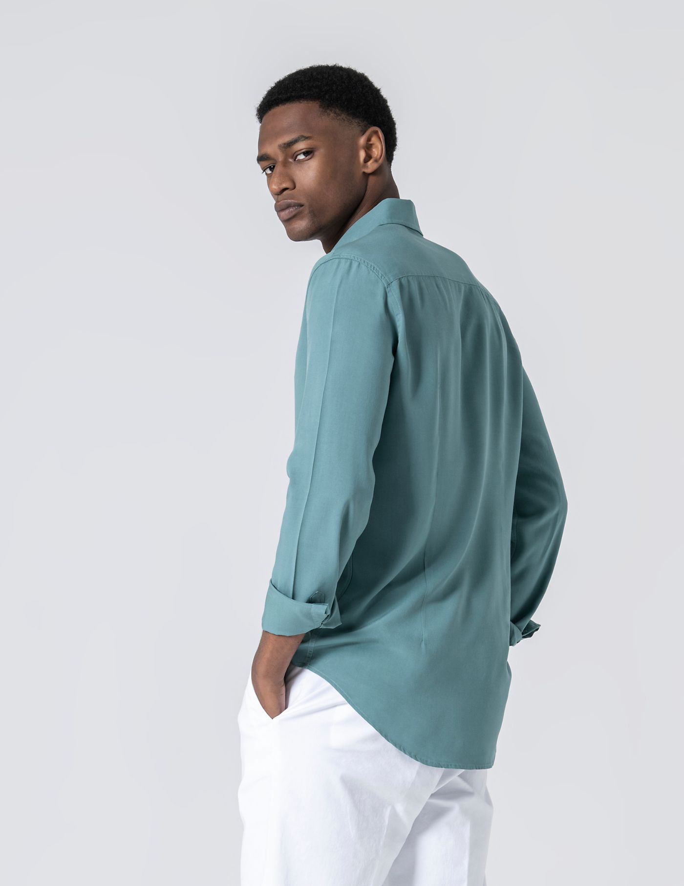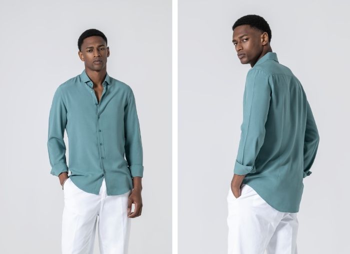 Finalizada com colarinho italiano e botão invisível, que mantém a estrutura do mesmo.