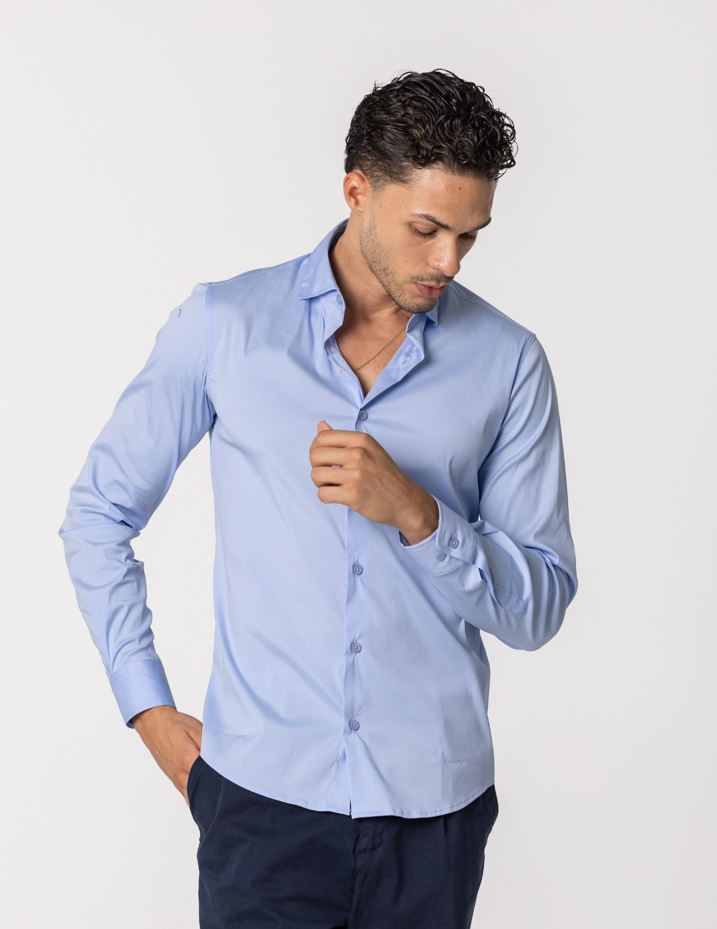 Uma peça slim fit, de toque suave e conforto soberbo. Confecionada com uma matéria-prima singular que assegura um tecido macio e elástico, garantindo assim liberdade de movimento em todas as situações.