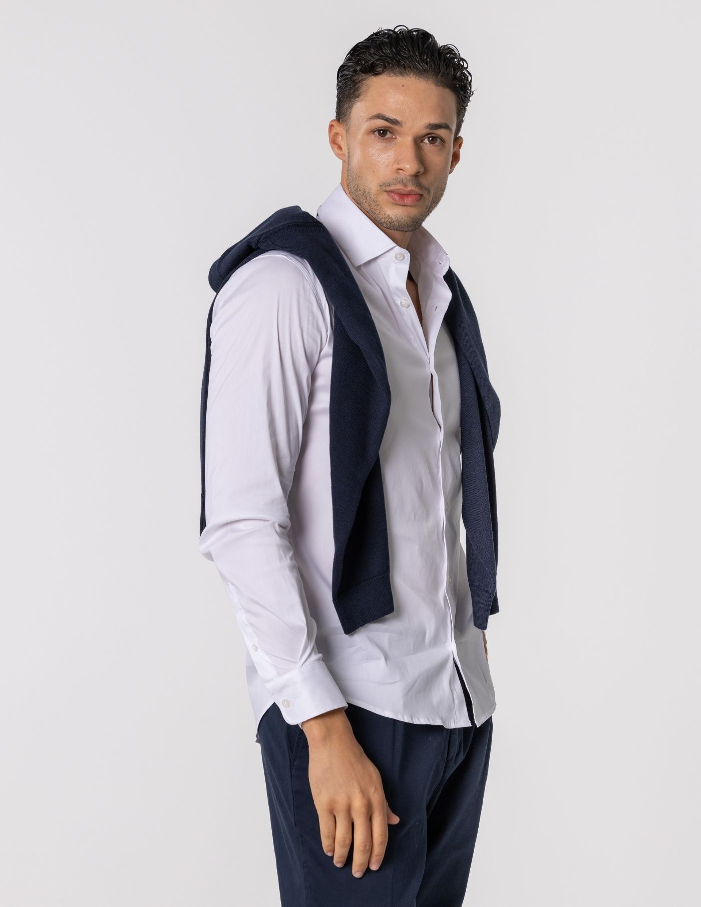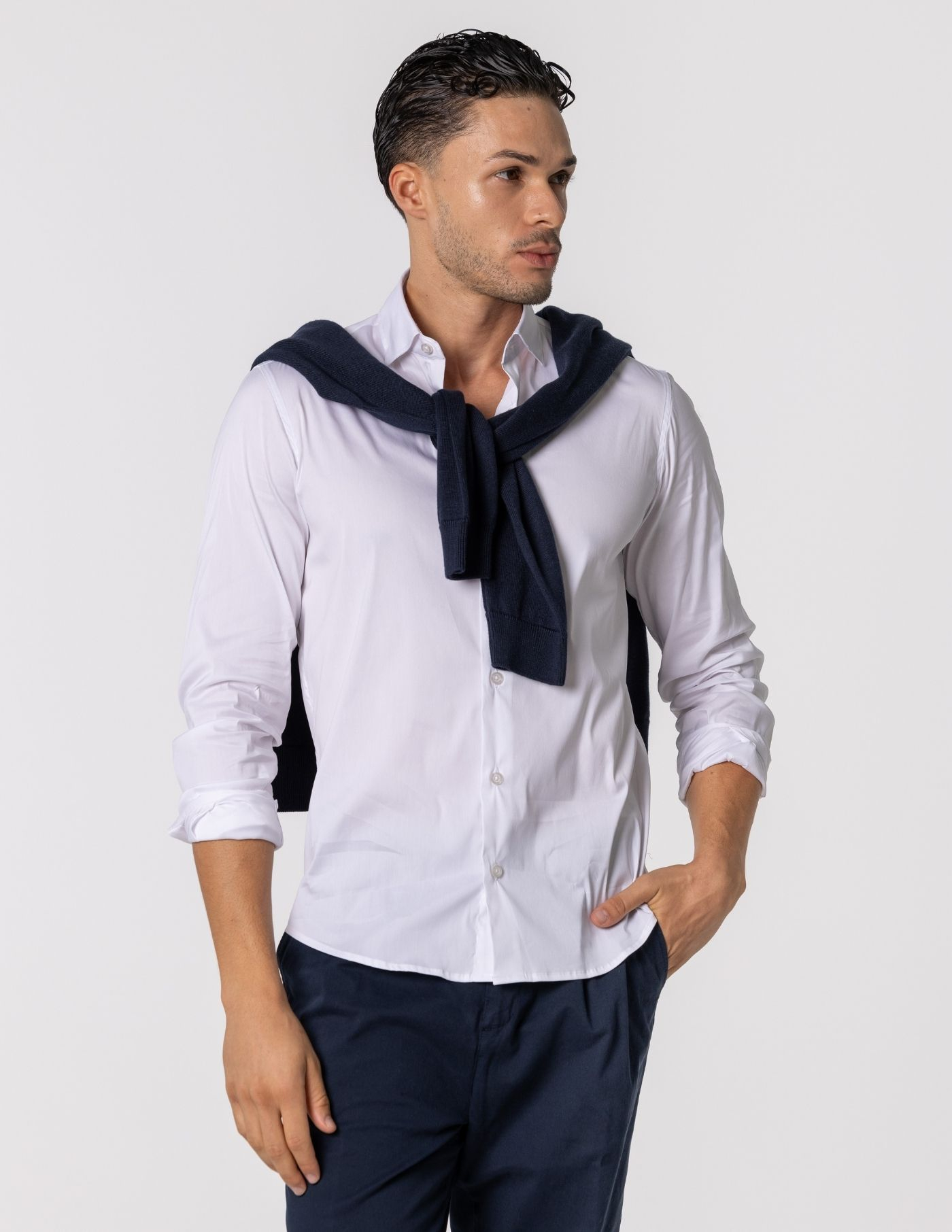 Uma peça slim fit, de toque suave e conforto soberbo. Confecionada com uma matéria-prima singular que assegura um tecido macio e elástico, garantindo assim liberdade de movimento em todas as situações.