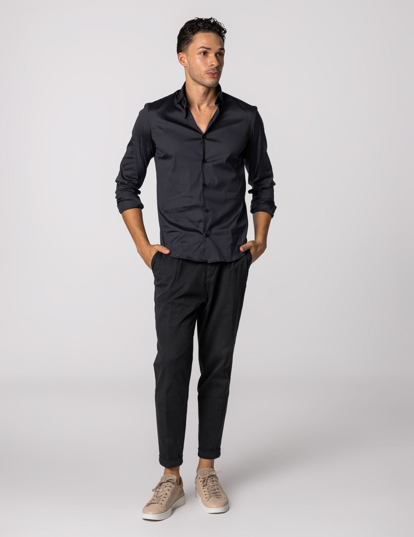 Uma peça slim fit, de toque suave e conforto soberbo. Confecionada com uma matéria-prima singular que assegura um tecido macio e elástico, garantindo assim liberdade de movimento em todas as situações.