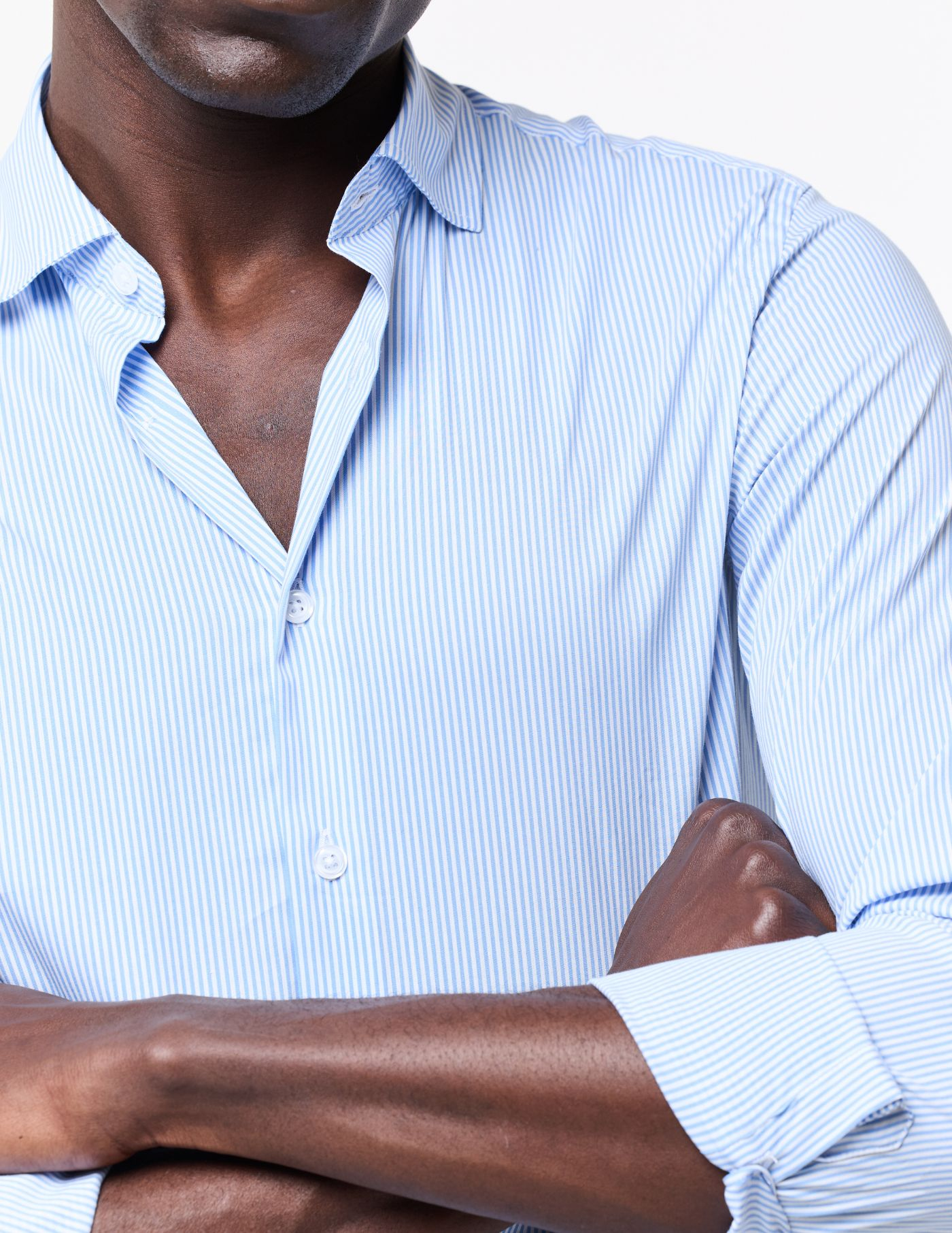 Detalhes: Colarinho italiano / Botão invisível no colarinho / Botões brancos