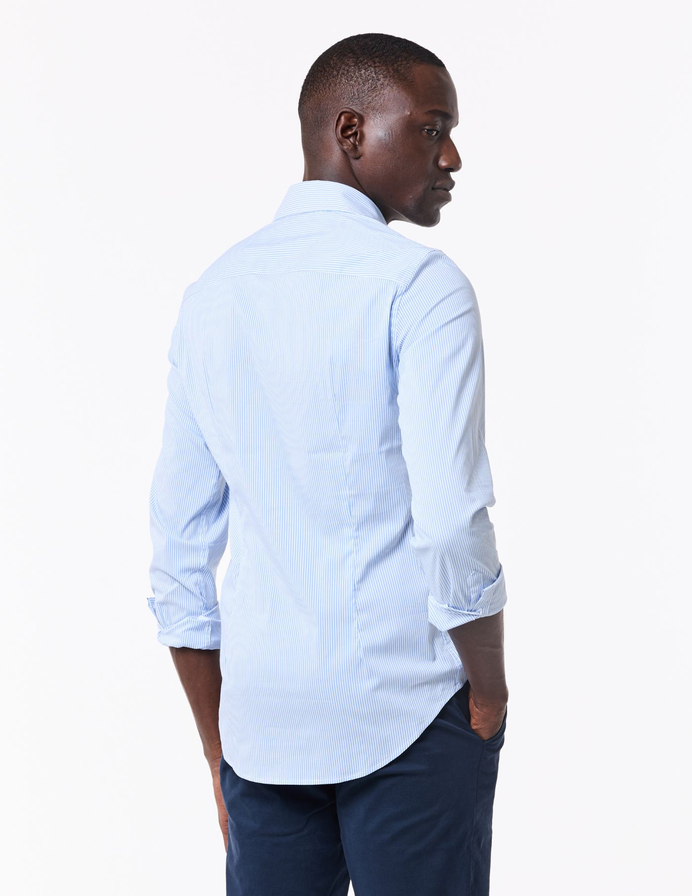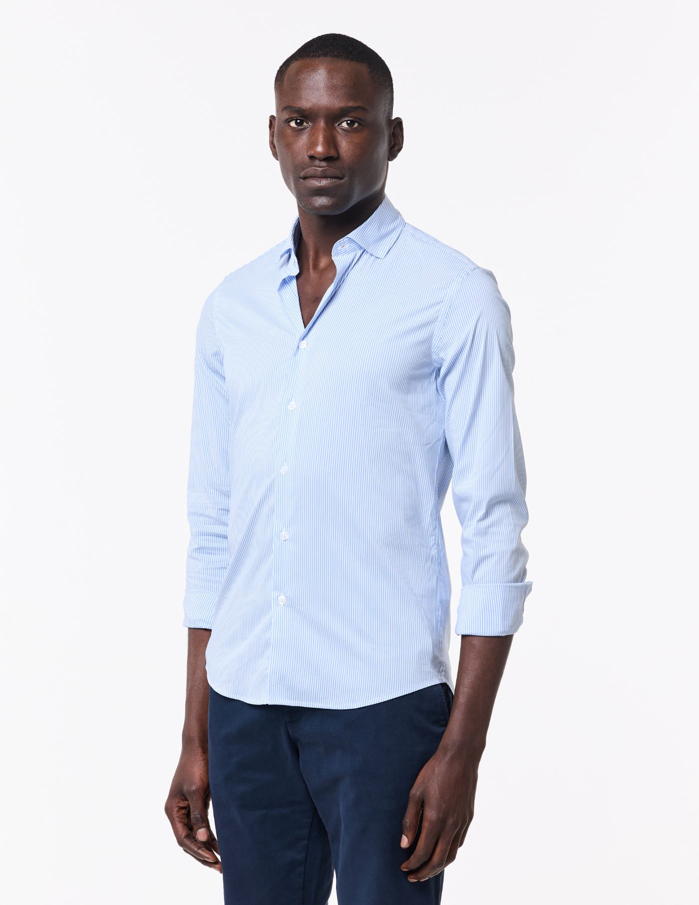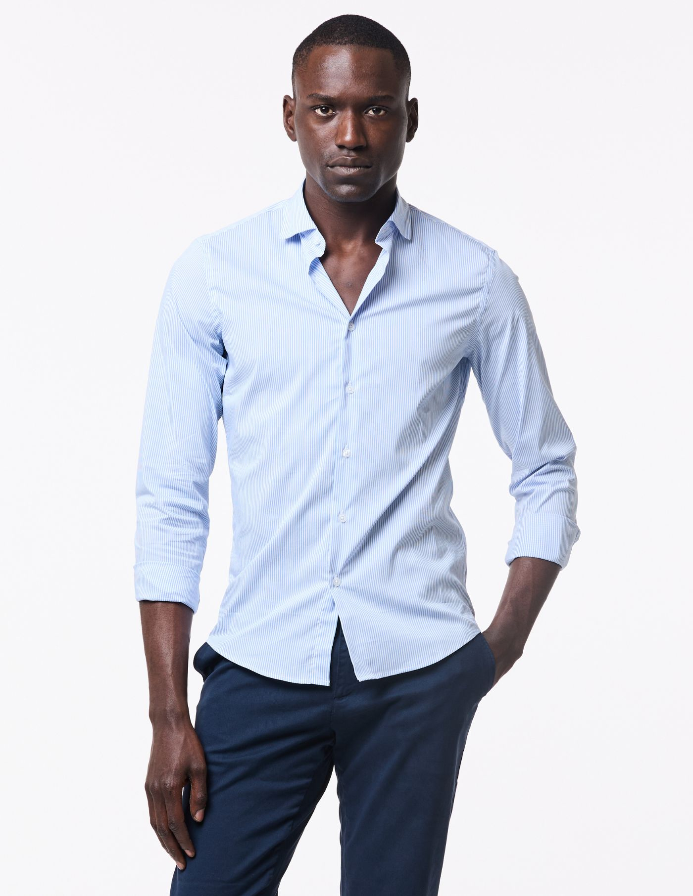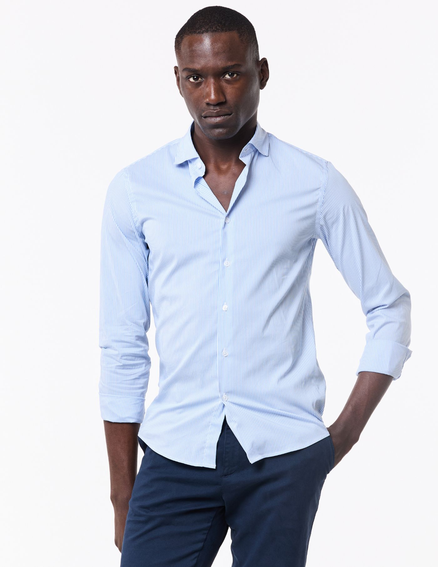 Uma peça slim fit, de toque suave e conforto soberbo. Confecionada com uma matéria-prima singular que assegura um tecido macio e elástico, garantindo assim liberdade de movimento em todas as situações.