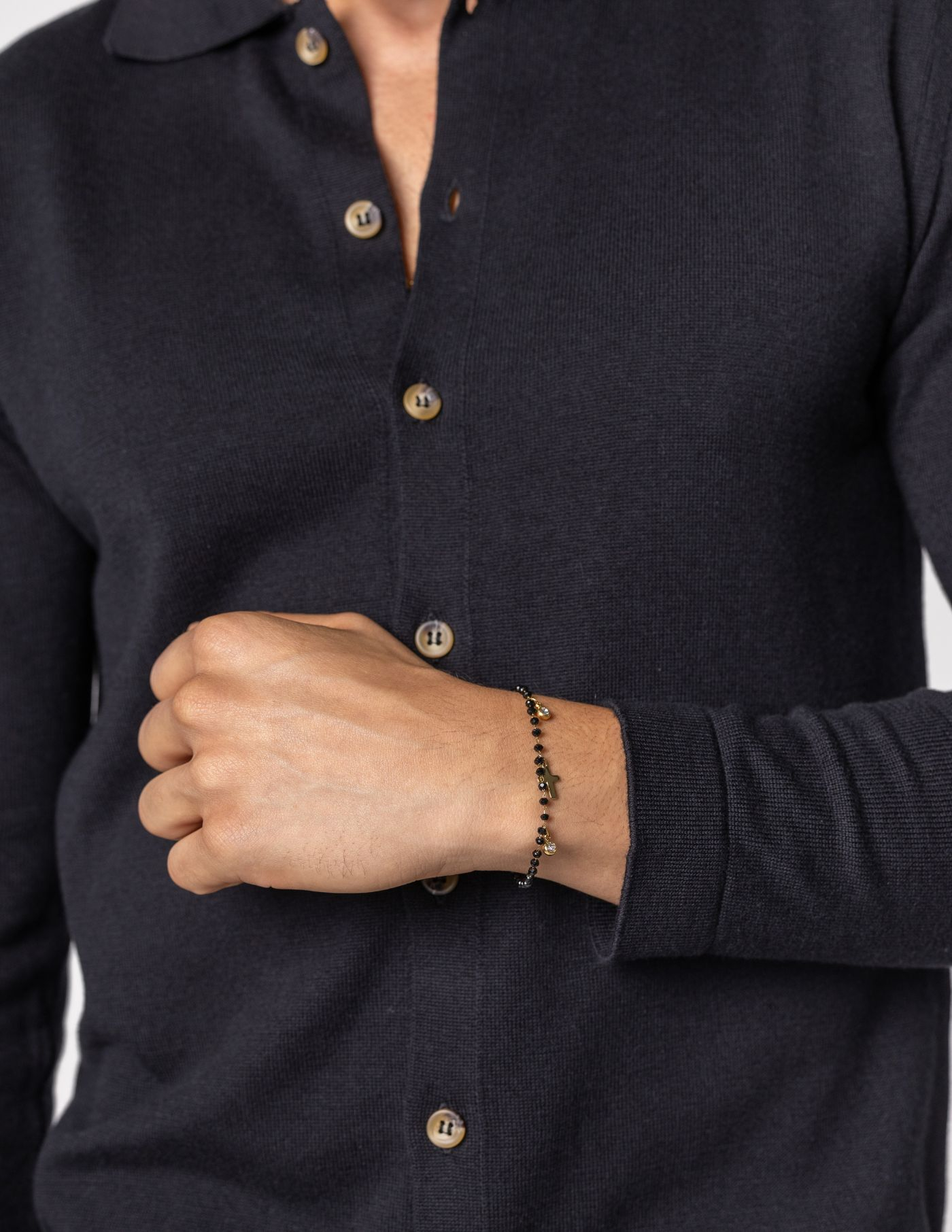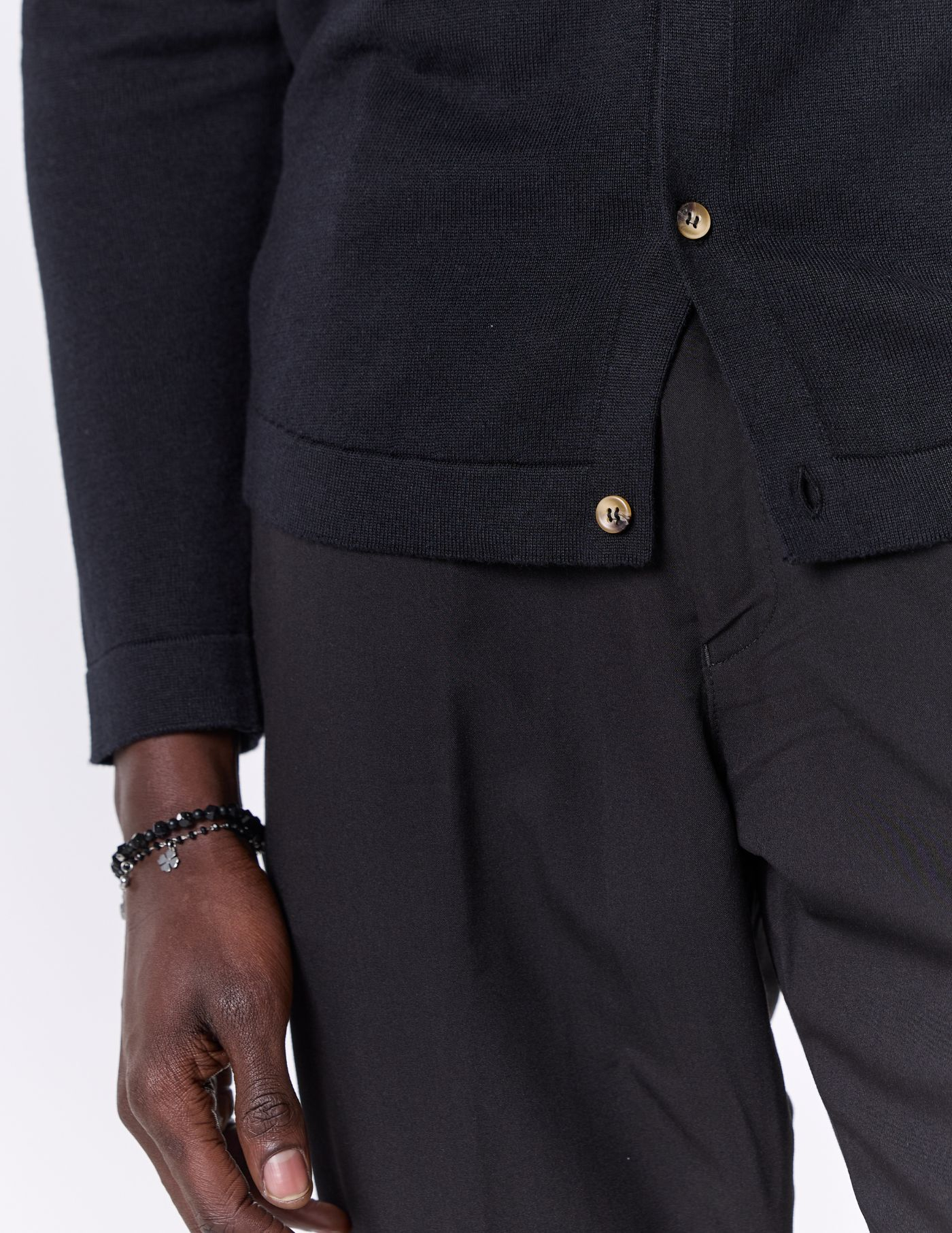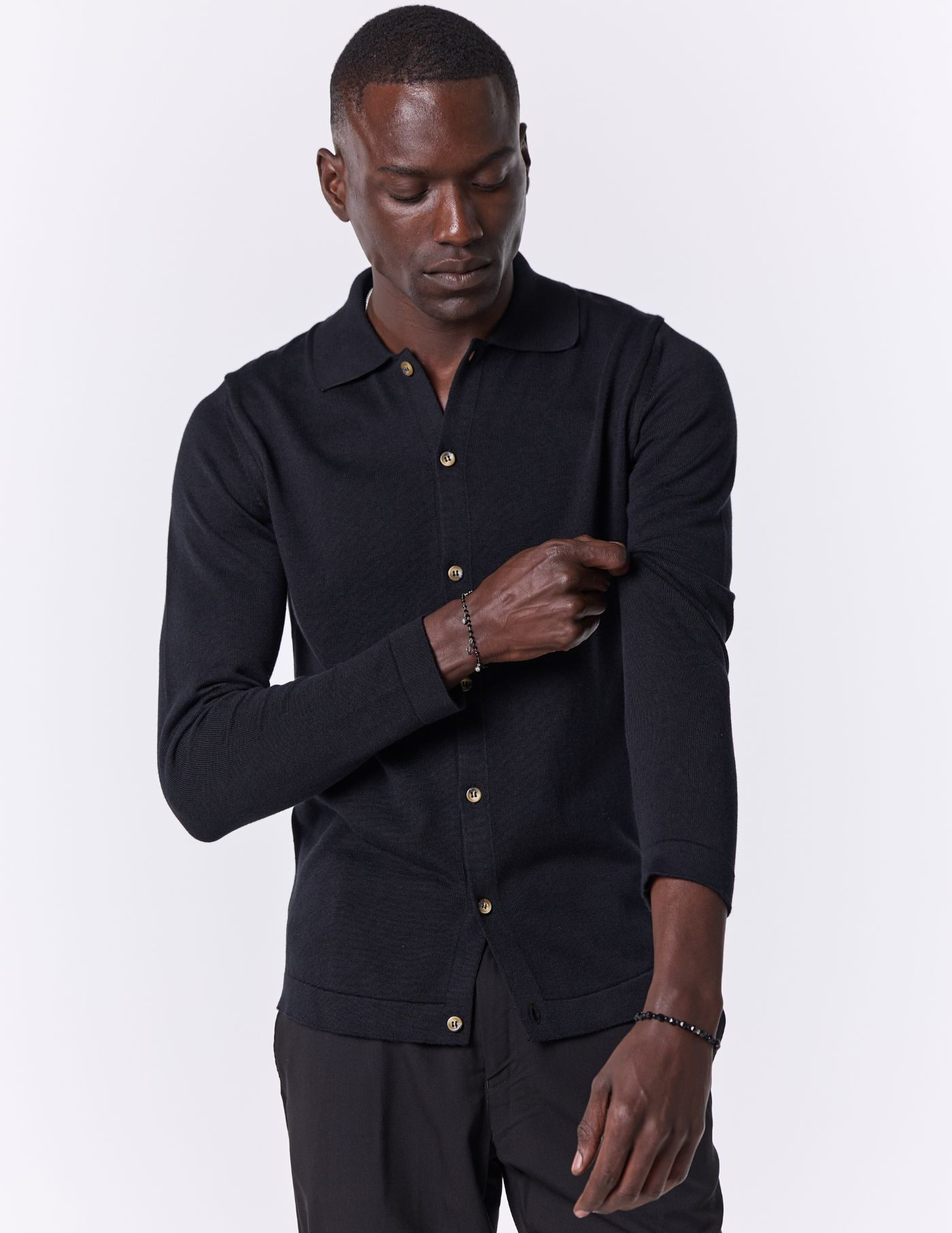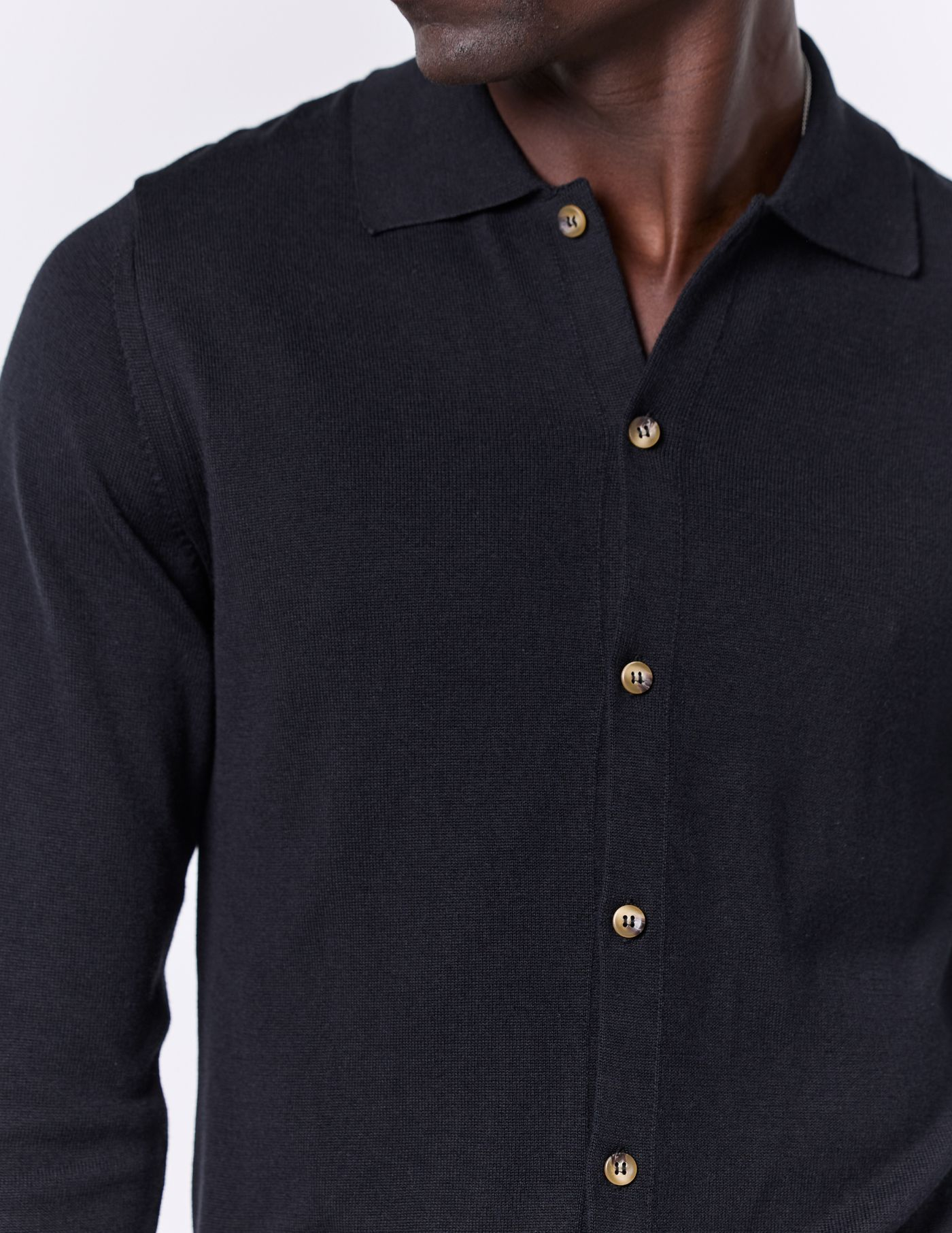 Ideal para looks casuais bem como mais refinados, este camiseiro é uma escolha versátil para o seu guarda-roupa. O nosso modelo tem 1,85 m de altura, pesa 78 quilos e usa um tamanho M. Uma peça essencial que traz elegância e aconchego para os teus dias.