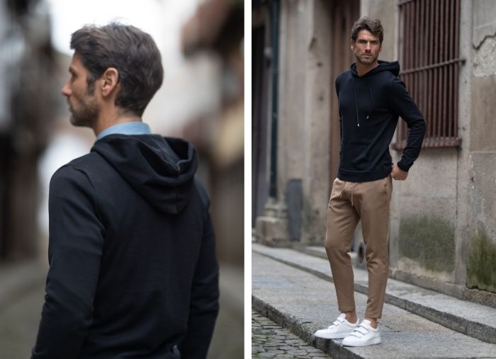 Camisola de capuz, confecionada em malha 100% algodão, garantindo um toque aconchegante, conforto e liberdade de movimentos. É a opção ideal para os dias mais frios e de fácil conjugação com um sobretudo ou casaco de penas. Finalizado com bolso frontal.