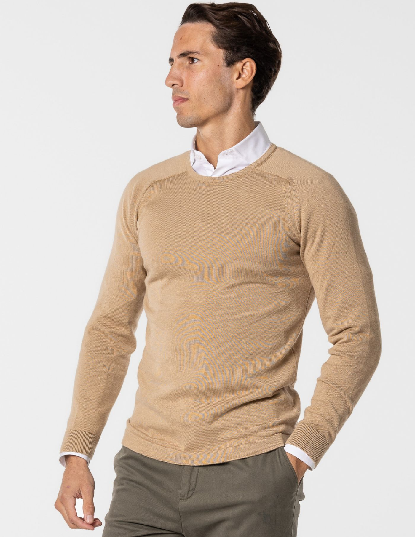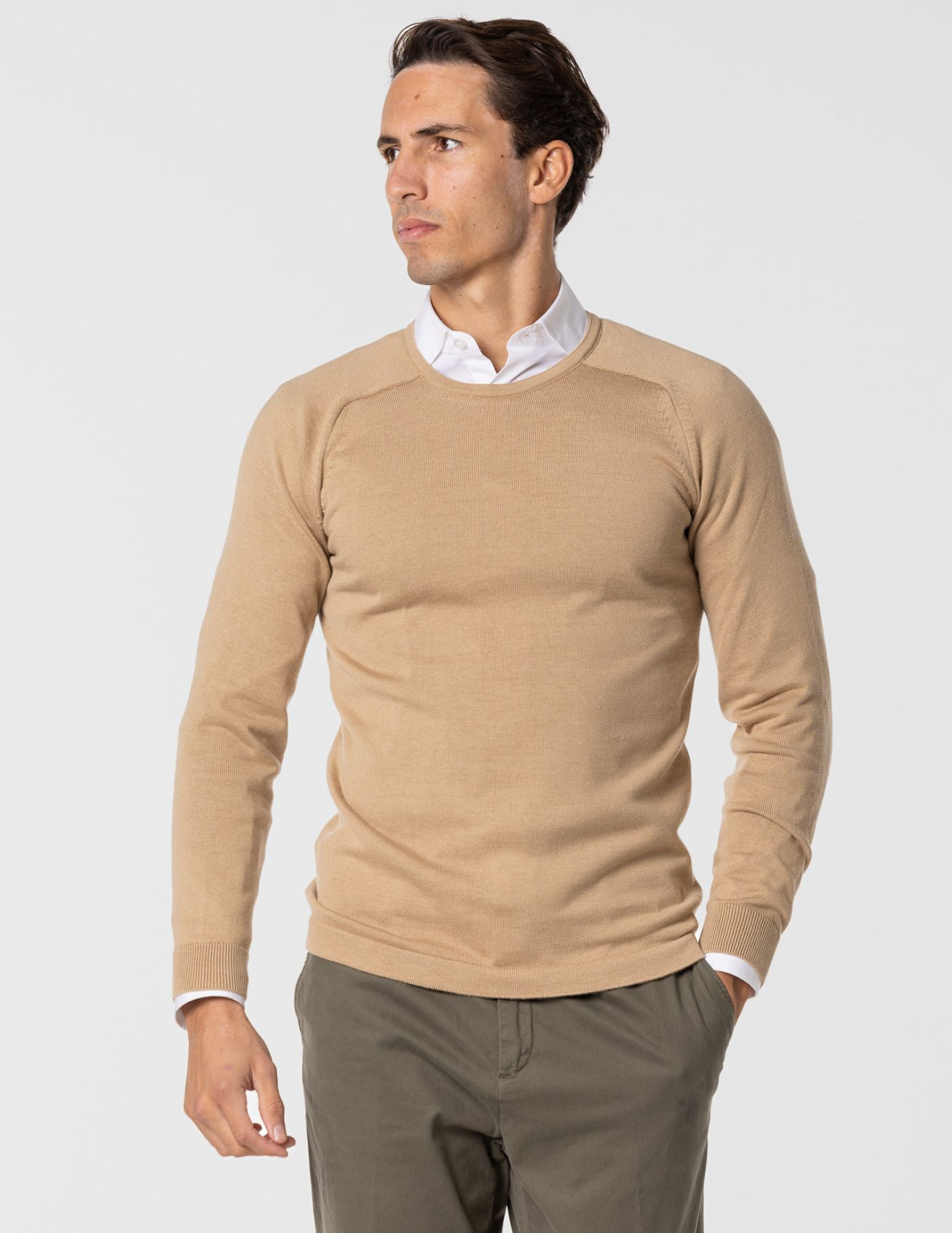 Camisola de malha com decote redondo, confecionada 67% de Liocel e 33% de algodão, garantindo um toque aconchegante e liberdade de movimentos. É a opção ideal para manter o conforto durante os dias mais frios e de fácil conjugação com uma parka ou casaco de inverno. Finalizada com acabamento canelado no punho e manga raglan.