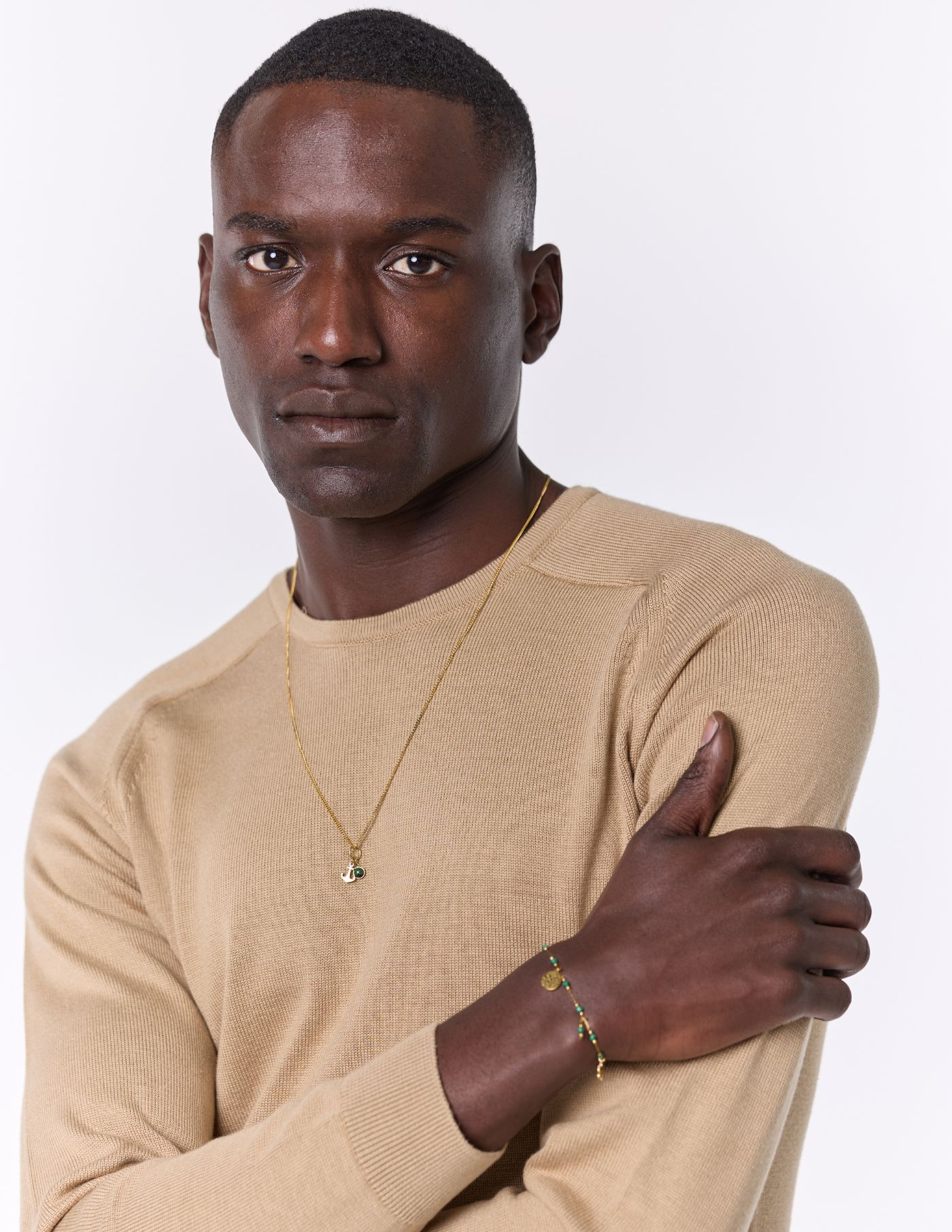 O nosso modelo tem 185 cm de altura, pesa 80 quilos e usa um tamanho L.