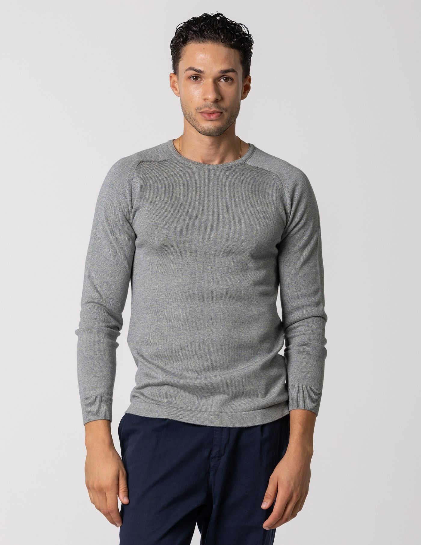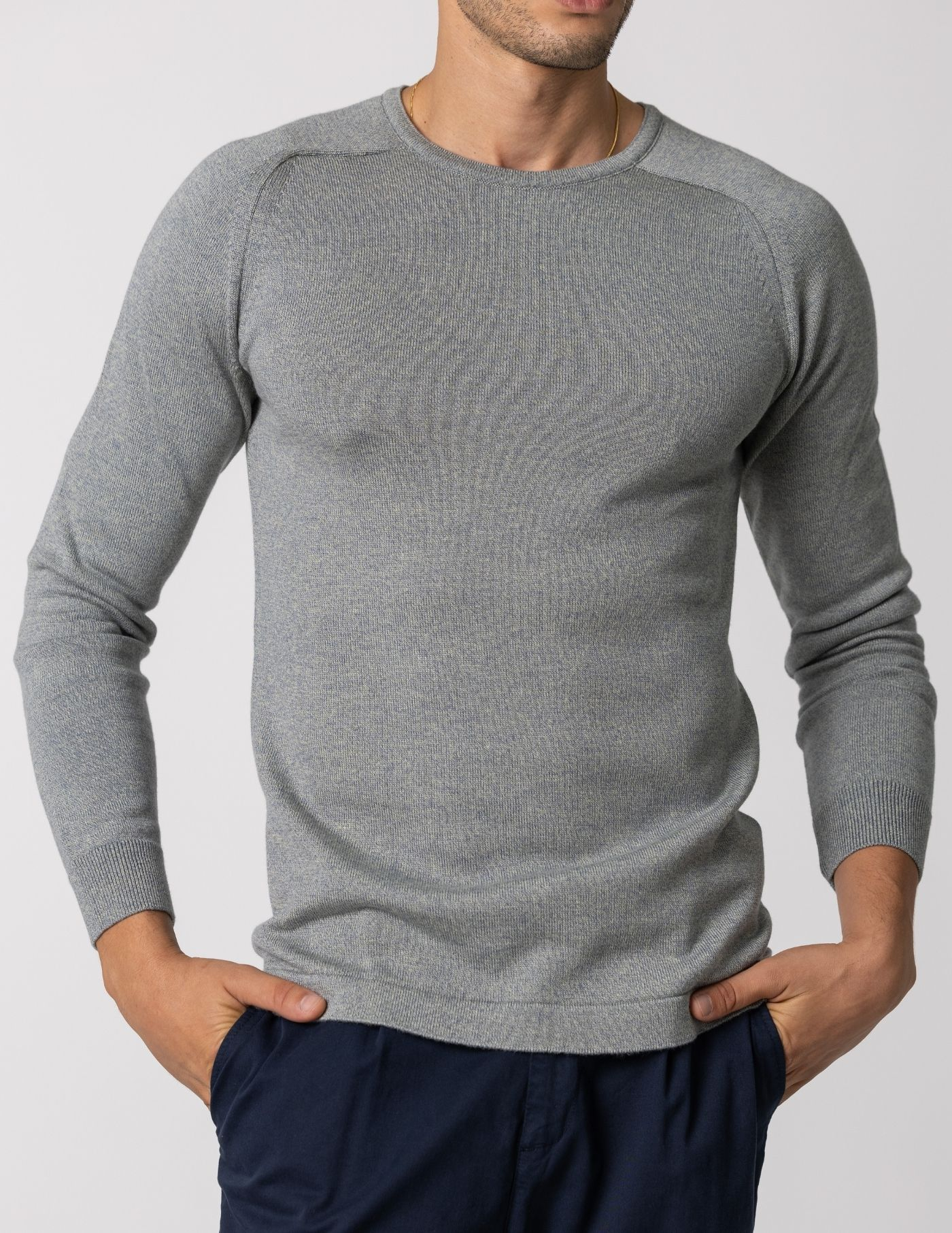 Camisola de malha com decote redondo, confecionada 67% de Liocel e 33% de algodão, garantindo um toque aconchegante e liberdade de movimentos. É a opção ideal para manter o conforto durante os dias mais frios e de fácil conjugação com uma parka ou casaco de inverno. Finalizada com acabamento canelado no punho e manga raglan.