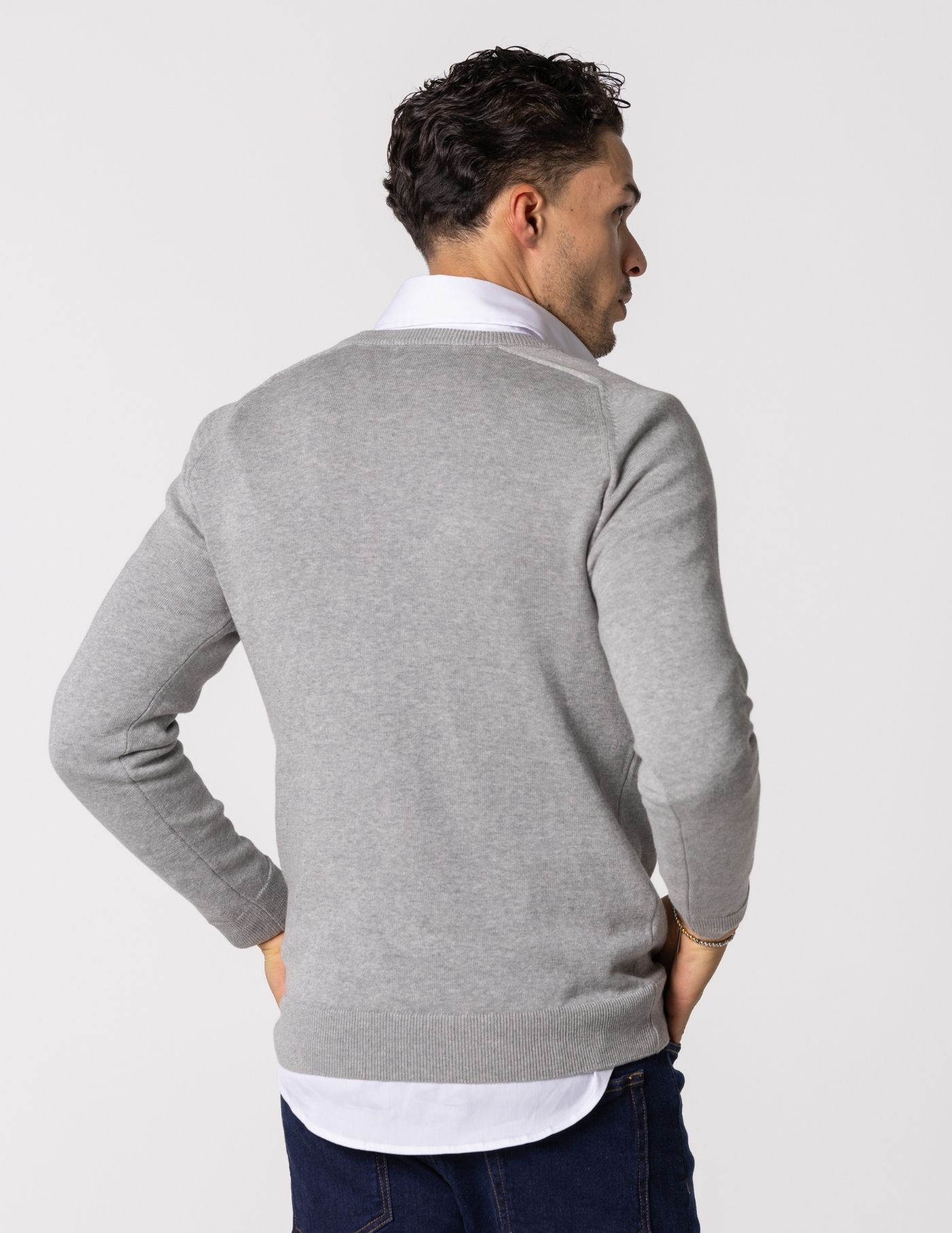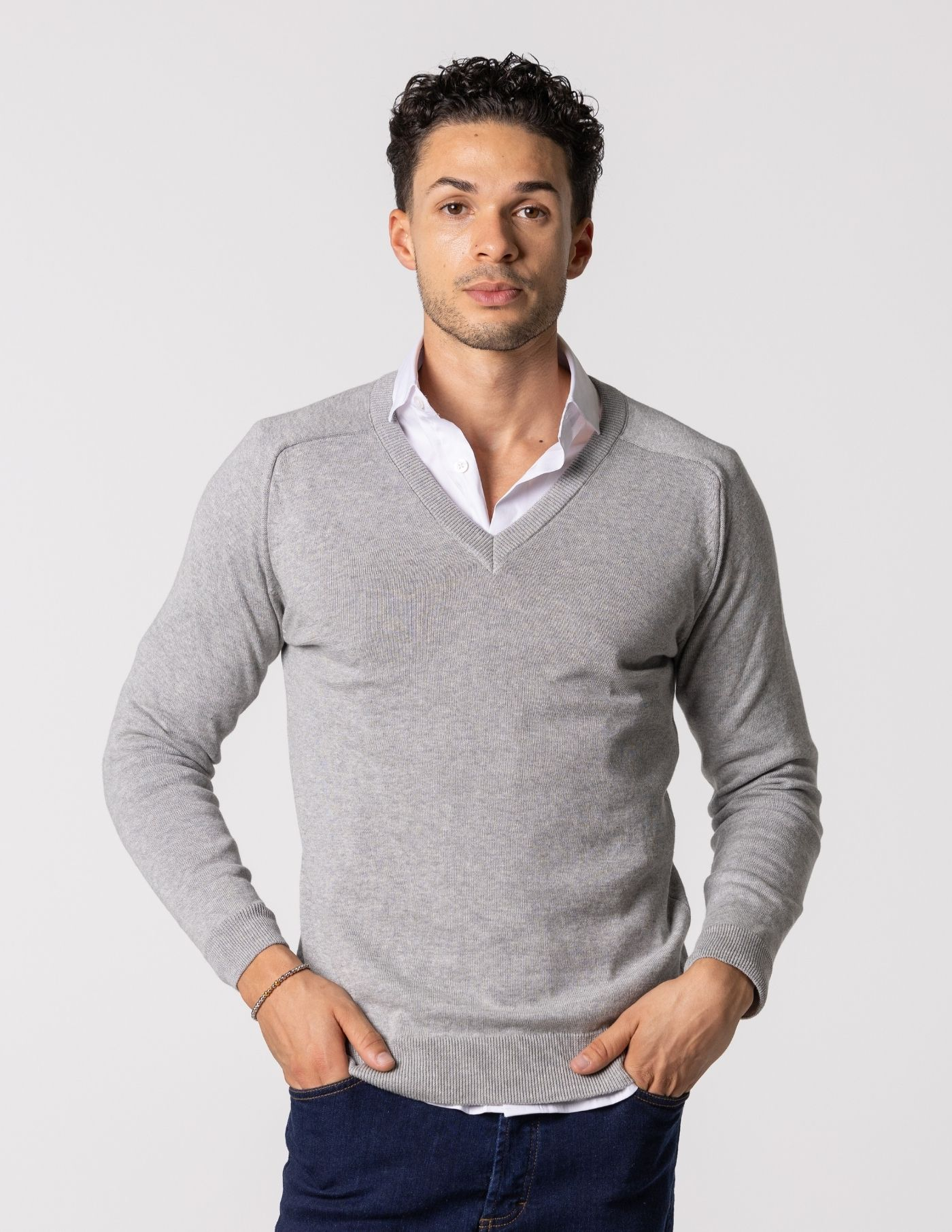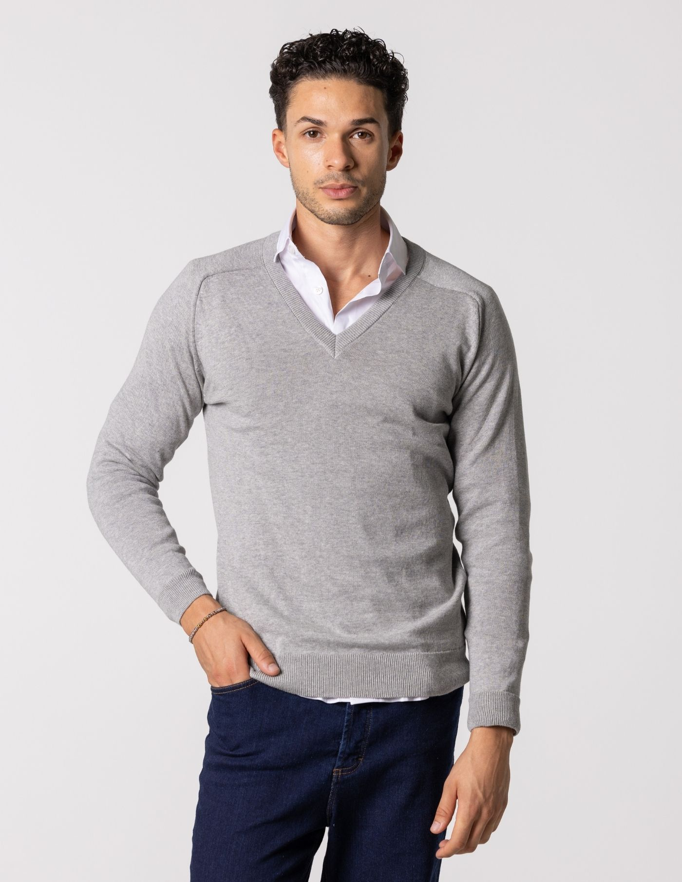 Camisola de malha com decote em v, confecionada 67% de Liocel e 33% de algodão, garantindo um toque aconchegante e liberdade de movimentos. Ideal para manter o conforto durante os dias mais frios e combina perfeitamente com uma camisa. Finalizada com acabamento canelado (gola, punho e base) e manga raglan.