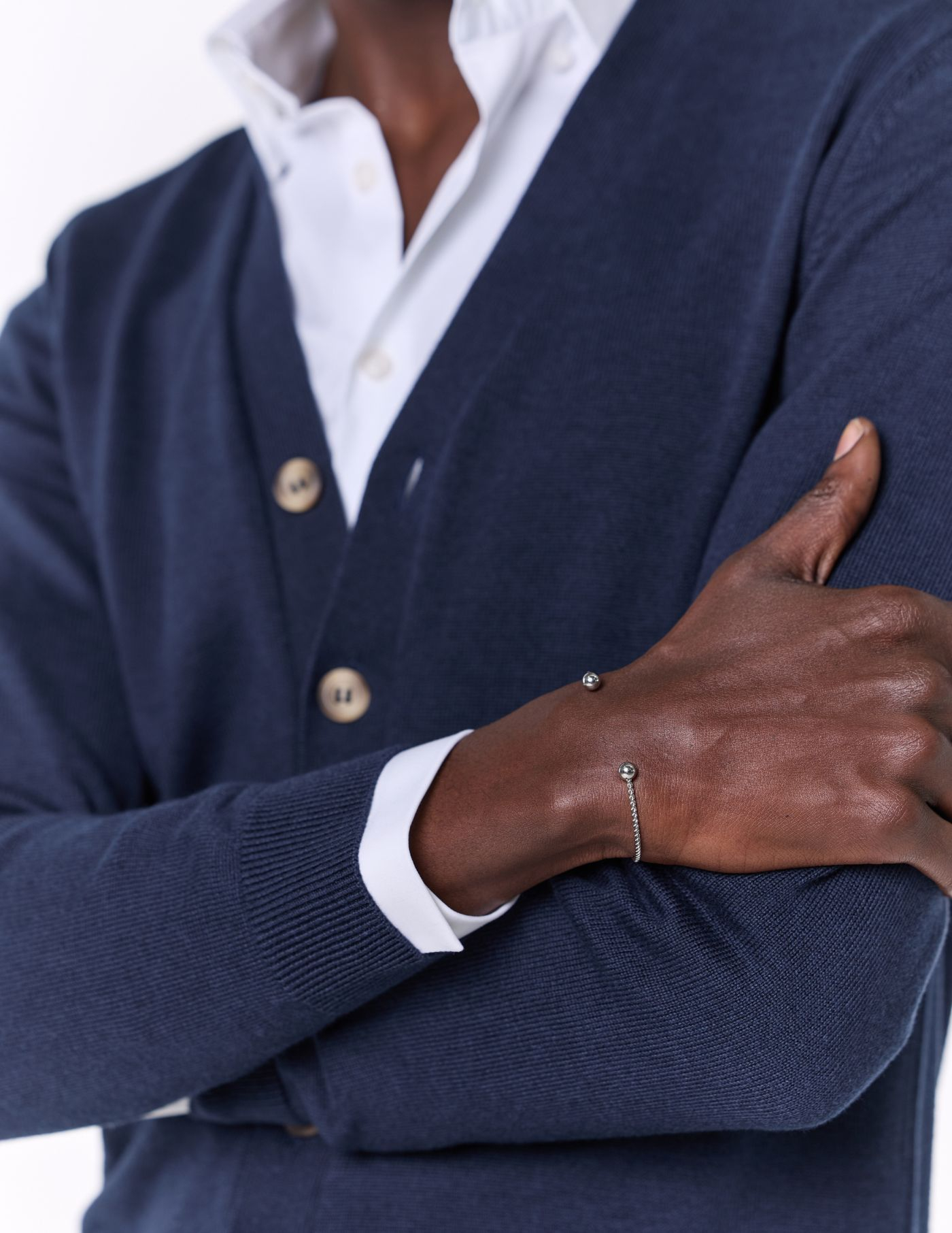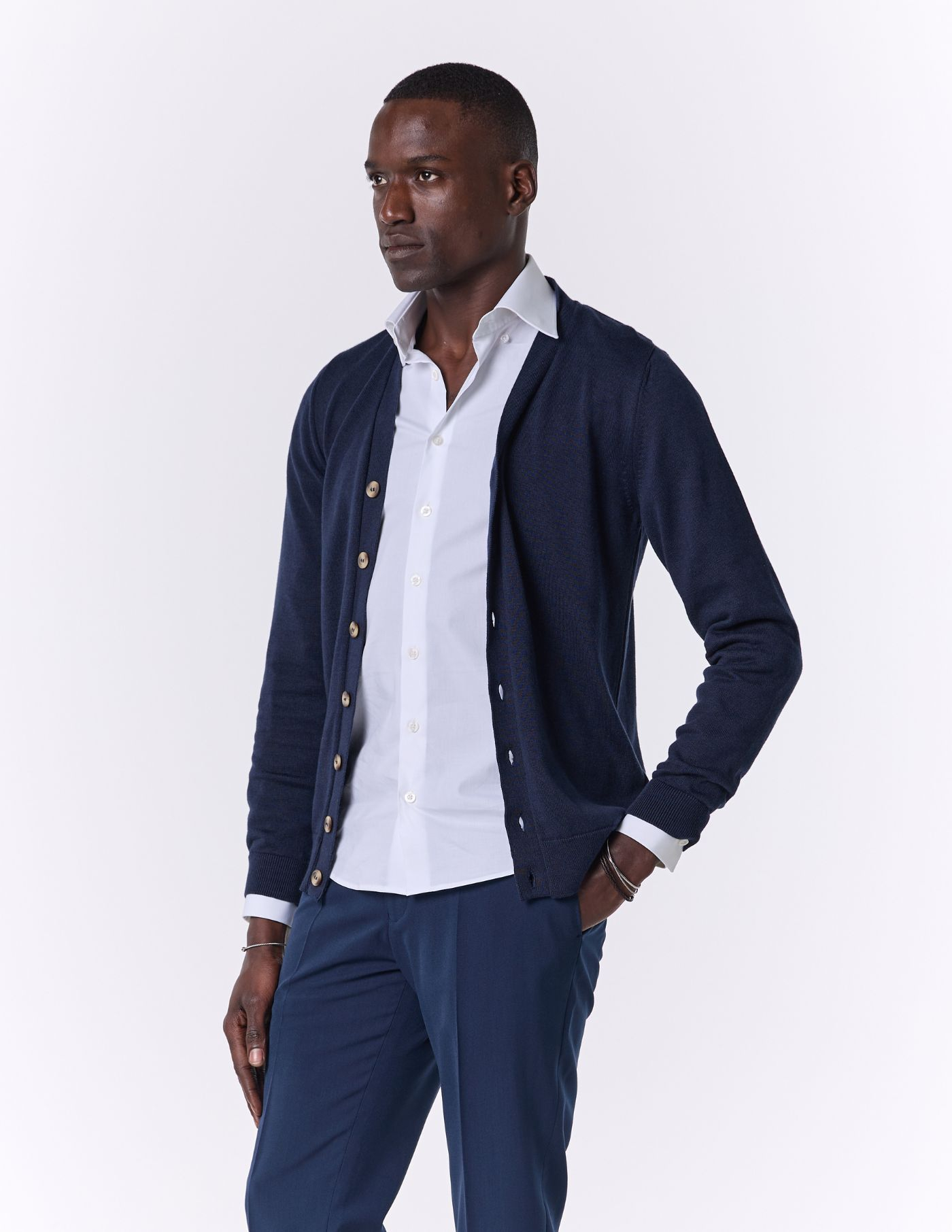 Este cardigan de botões é a opção perfeita para quem procura conforto e sofisticação. Confeccionado em tecido de alta qualidade, oferece um toque suave e aconchegante. O seu design clássico, com botões, torna-o uma peça versátil e fácil de combinar. Ideal para completar looks descontraídos ou mais arrumados, este cardigan é um essencial no teu guarda-roupa. Com um corte elegante e atemporal, é a escolha certa para adicionar um toque de distinção a qualquer outfit