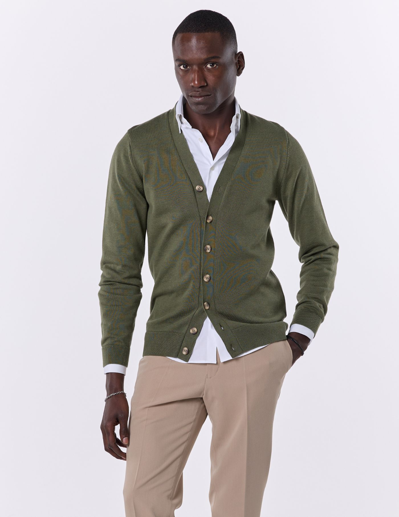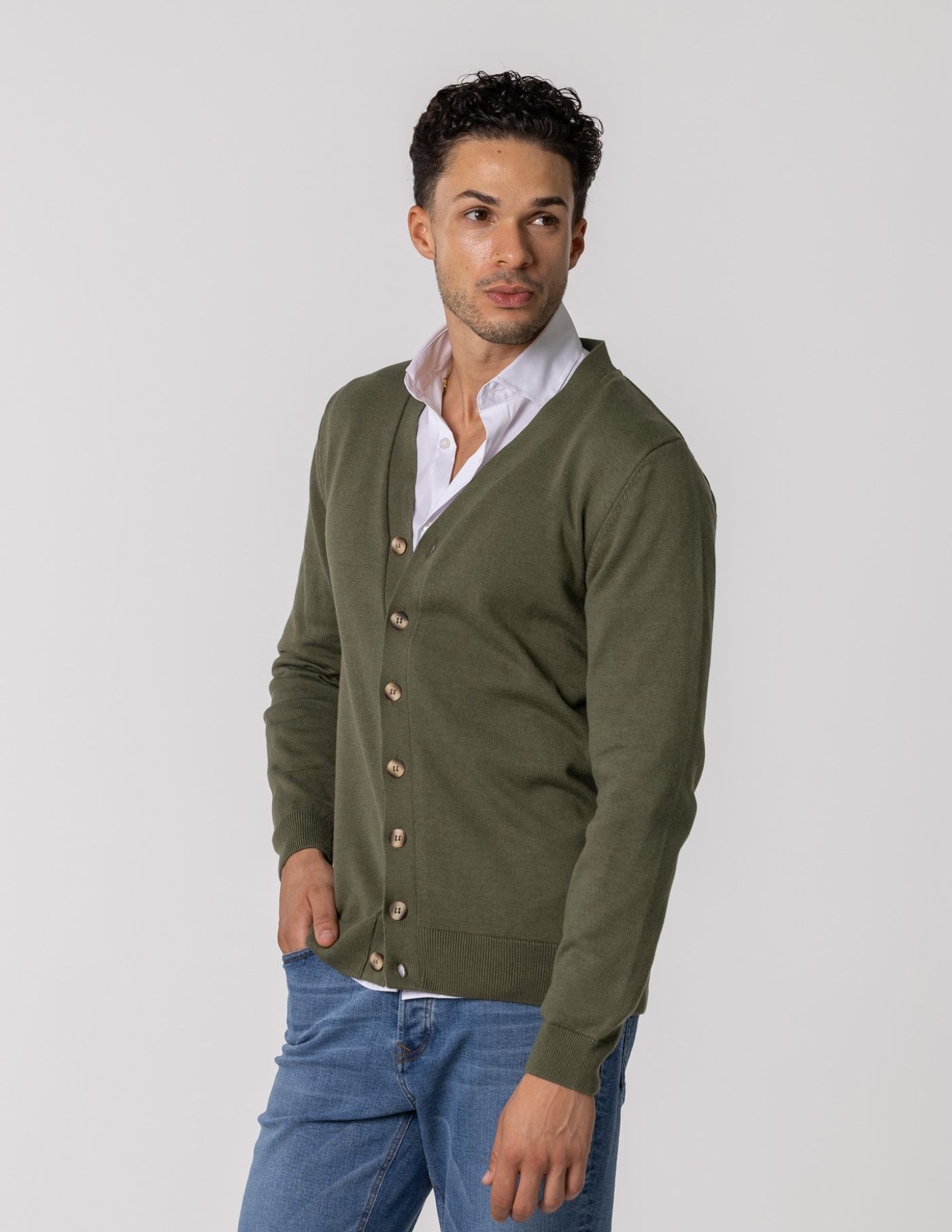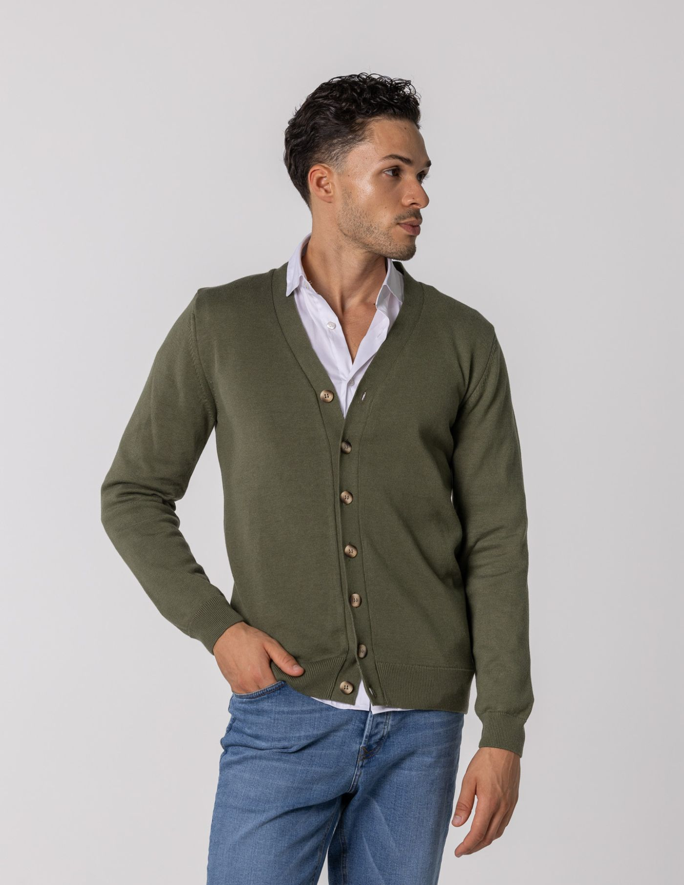 Este cardigan de botões é a opção perfeita para quem procura conforto e sofisticação. Confeccionado em tecido de alta qualidade, oferece um toque suave e aconchegante. O seu design clássico, com botões, torna-o uma peça versátil e fácil de combinar. Ideal para completar looks descontraídos ou mais arrumados, este cardigan é um essencial no teu guarda-roupa. Com um corte elegante e atemporal, é a escolha certa para adicionar um toque de distinção a qualquer outfit.