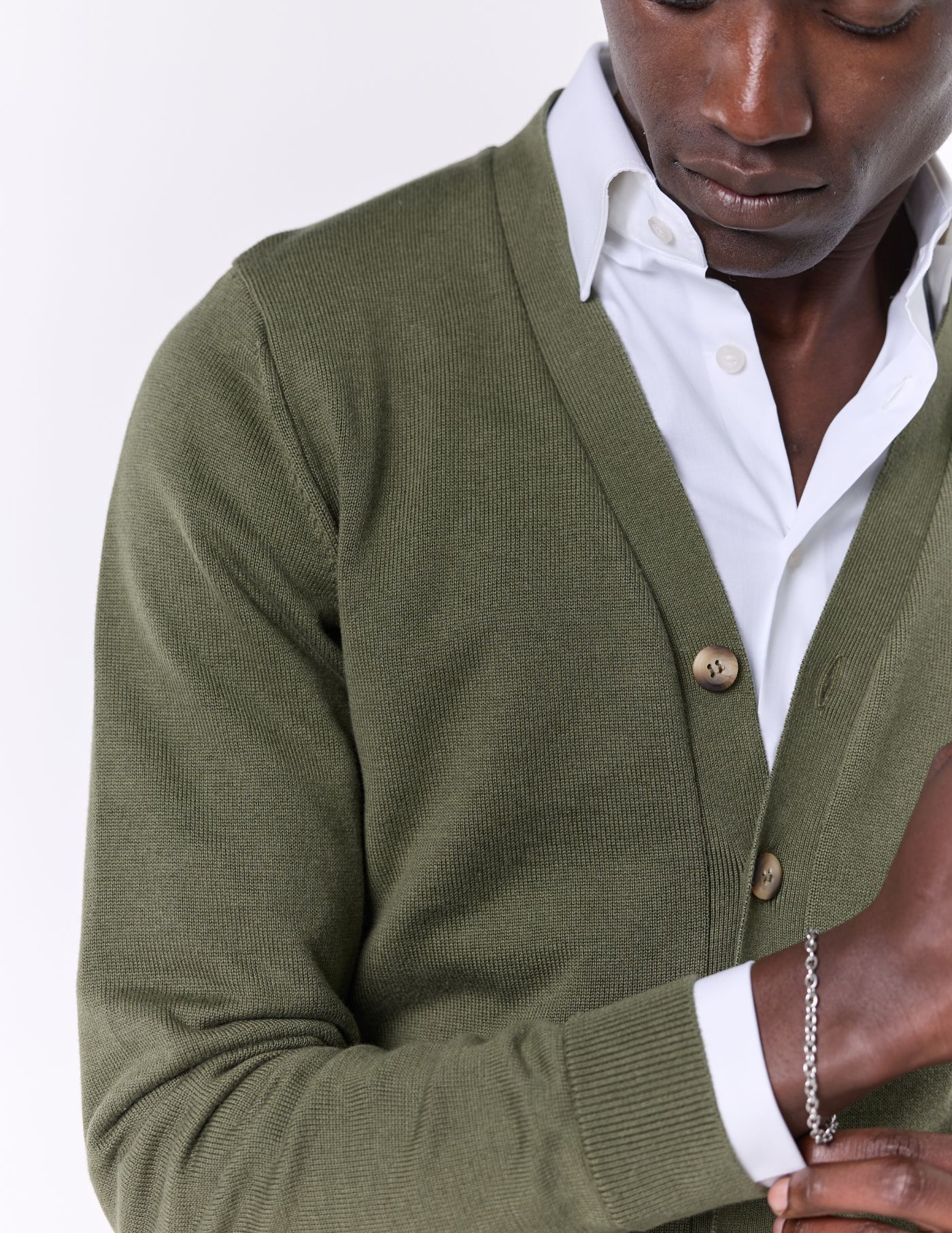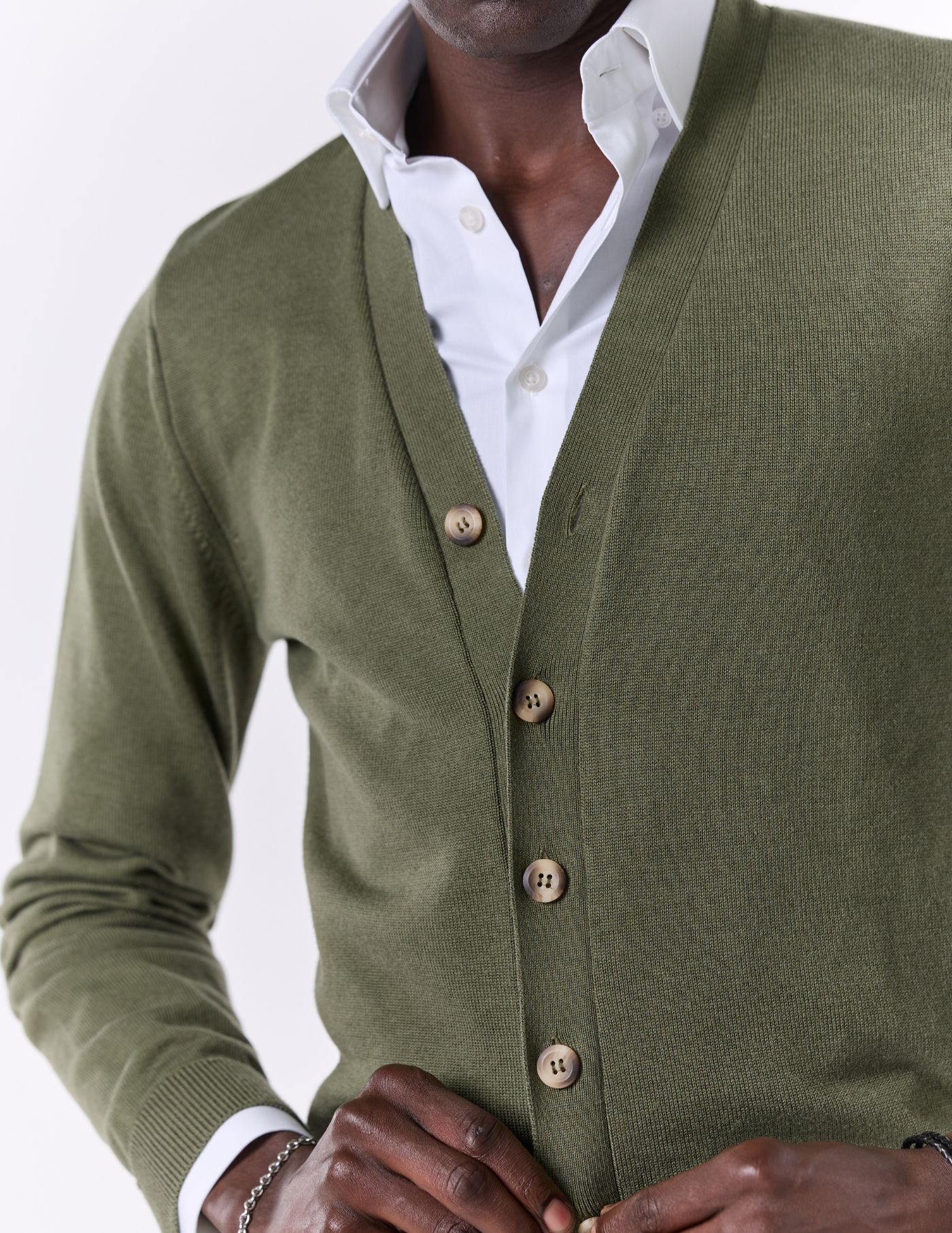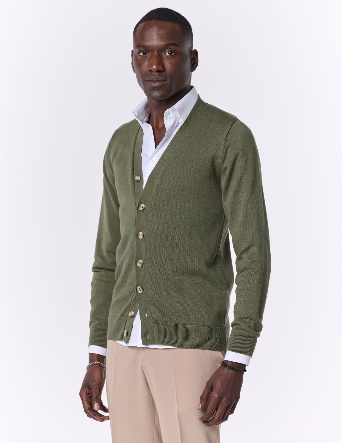 Este cardigan de botões é a opção perfeita para quem procura conforto e sofisticação. Confeccionado em tecido de alta qualidade, oferece um toque suave e aconchegante. O seu design clássico, com botões, torna-o uma peça versátil e fácil de combinar. Ideal para completar looks descontraídos ou mais arrumados, este cardigan é um essencial no teu guarda-roupa. Com um corte elegante e atemporal, é a escolha certa para adicionar um toque de distinção a qualquer outfit.