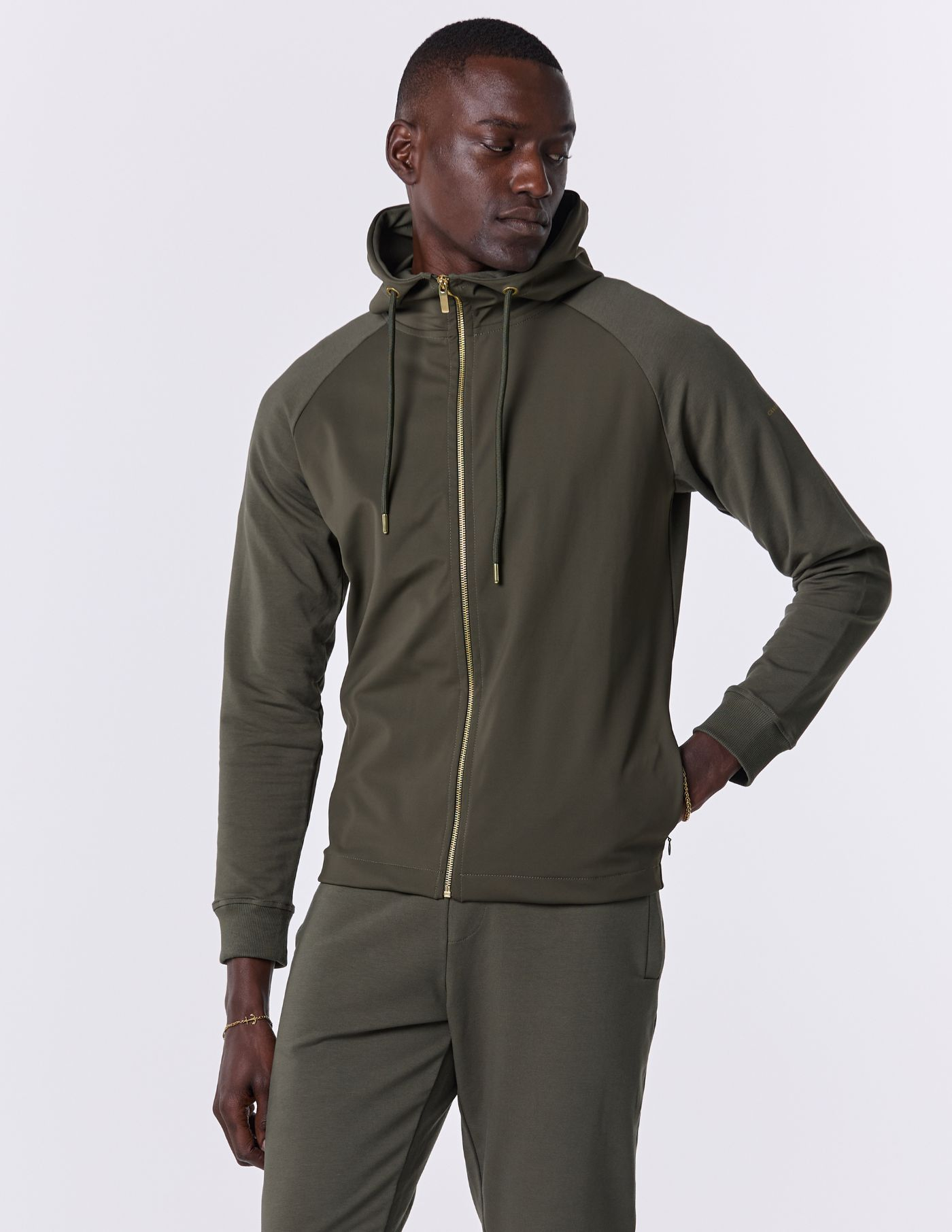 Este casaco masculino combina tecido técnico de alta performance com mangas de malha, oferecendo respirabilidade e liberdade de movimento. O tecido técnico mantém o corpo seco e a temperatura controlada, enquanto as mangas de malha garantem um ajuste confortável e flexível. Este casaco adapta-se a cada momento, sem perder em funcionalidade.