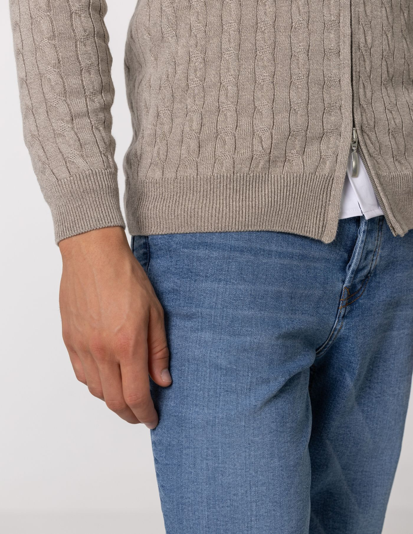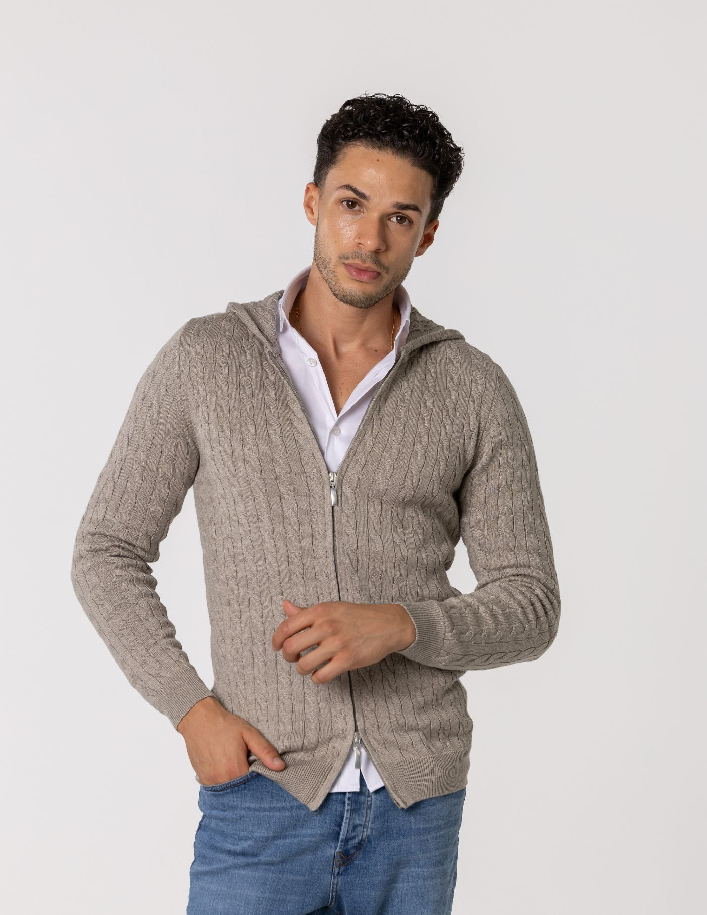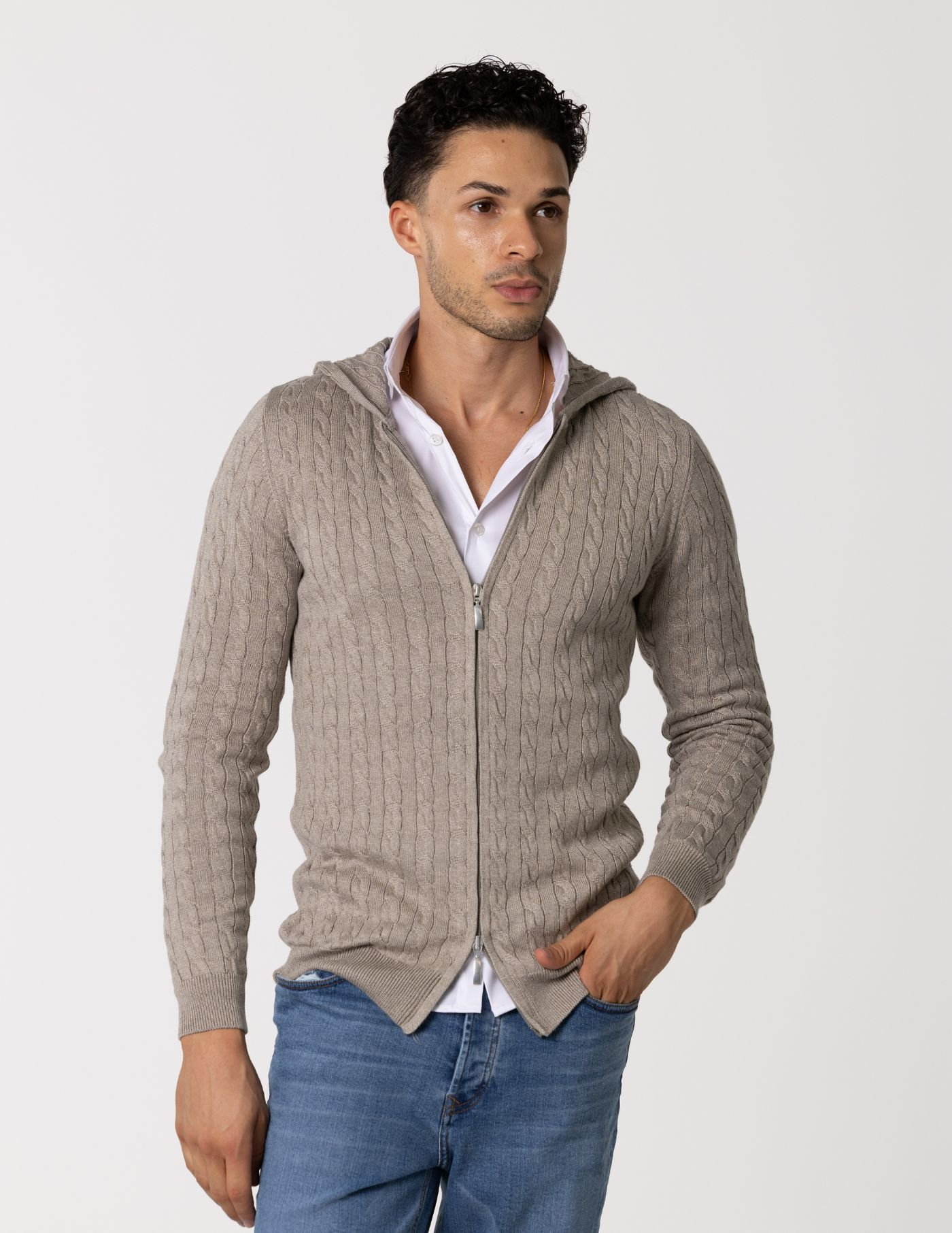 Casaco de malha suave e confortável, ideal para os dias mais frescos. Feito com 67% de Liocel e 33% de algodão, oferece um toque macio e devido ao seu fitting slim fit fica mais ajustado ao corpo. Possui fecho frontal e um elegante detalhe de trança em tricot, acrescentando textura e sofisticação ao design. Fácil de combinar, é perfeito para um look casual e versátil.
