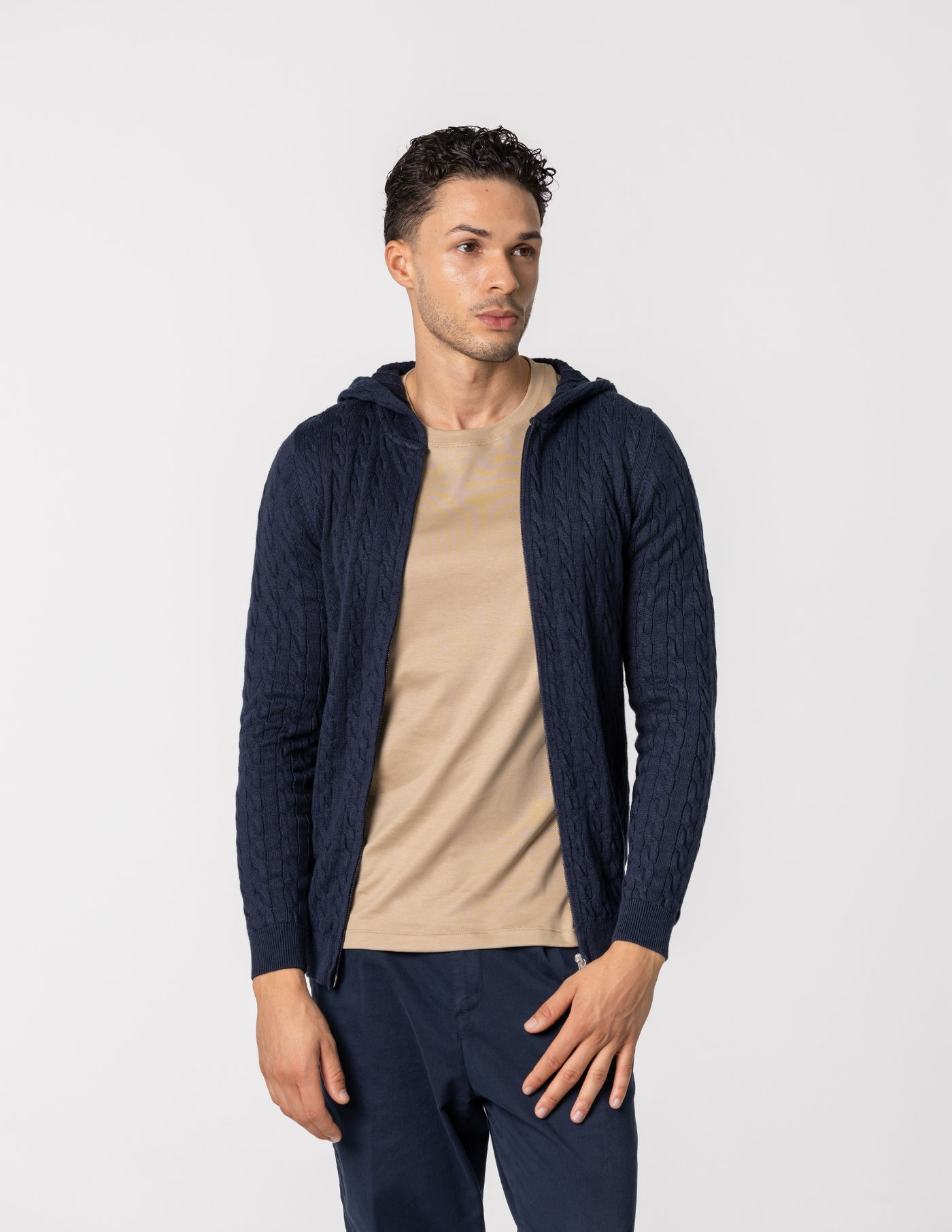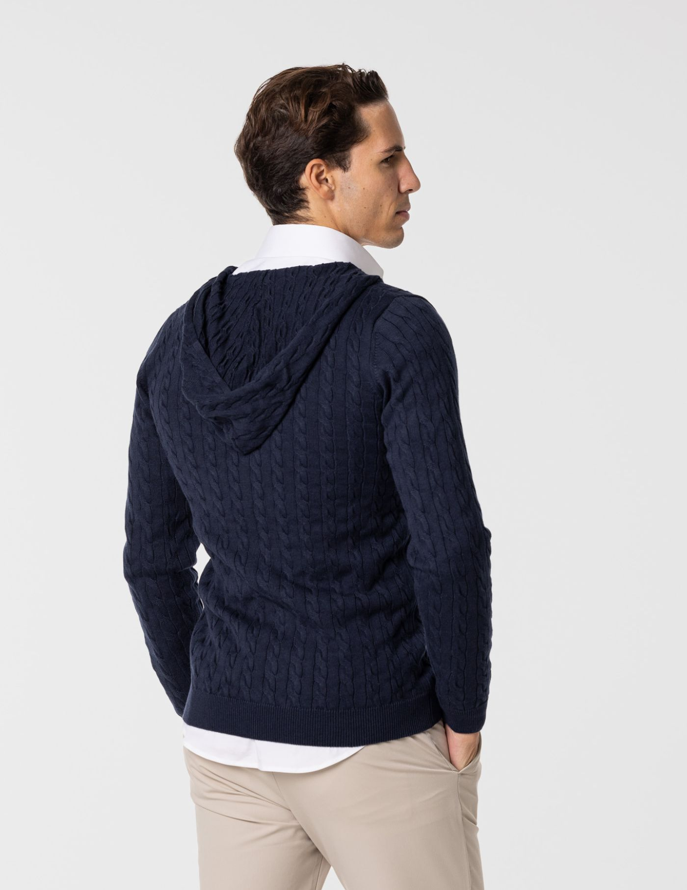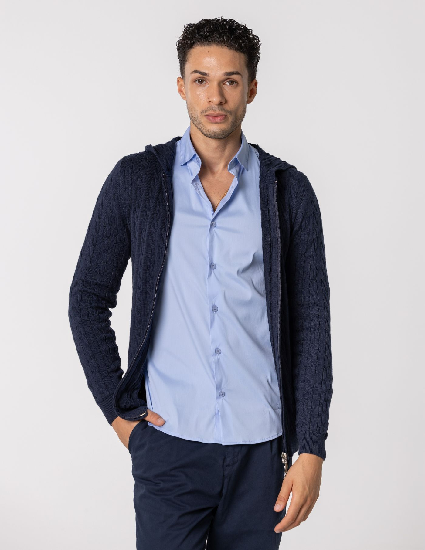 Casaco de malha suave e confortável, ideal para os dias mais frescos. Feito com 67% de Liocel e 33% de algodão, oferece um toque macio e devido ao seu fitting slim fit fica mais ajustado ao corpo. Possui fecho frontal e um elegante detalhe de trança em tricot, acrescentando textura e sofisticação ao design. Fácil de combinar, é perfeito para um look casual e versátil.