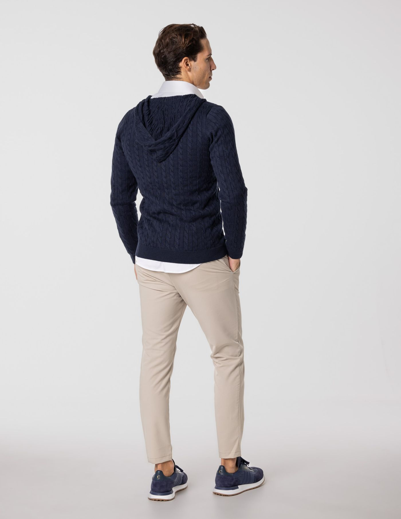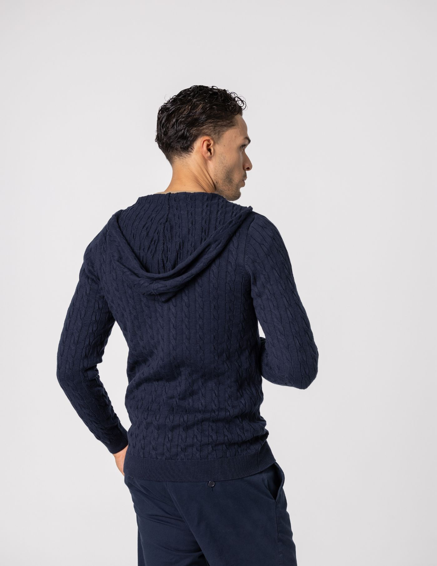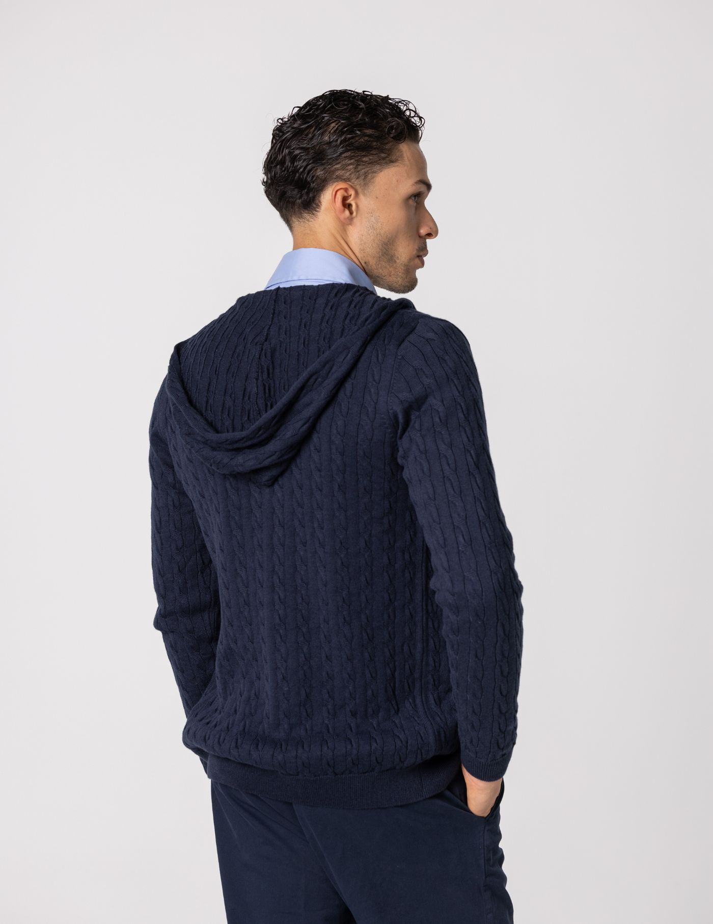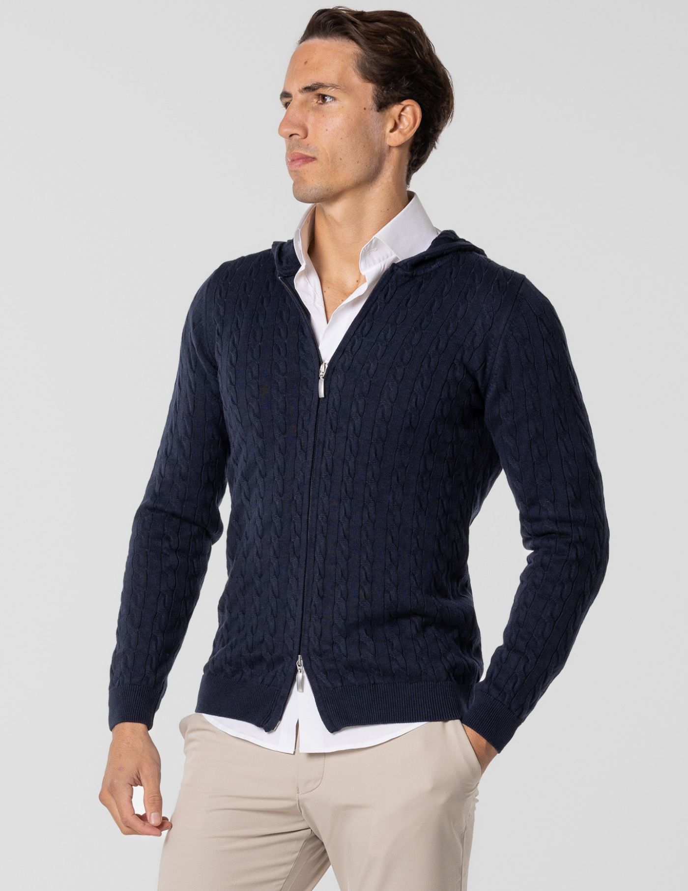 Casaco de malha suave e confortável, ideal para os dias mais frescos. Feito com 67% de Liocel e 33% de algodão, oferece um toque macio e devido ao seu fitting slim fit fica mais ajustado ao corpo. Possui fecho frontal e um elegante detalhe de trança em tricot, acrescentando textura e sofisticação ao design. Fácil de combinar, é perfeito para um look casual e versátil.
