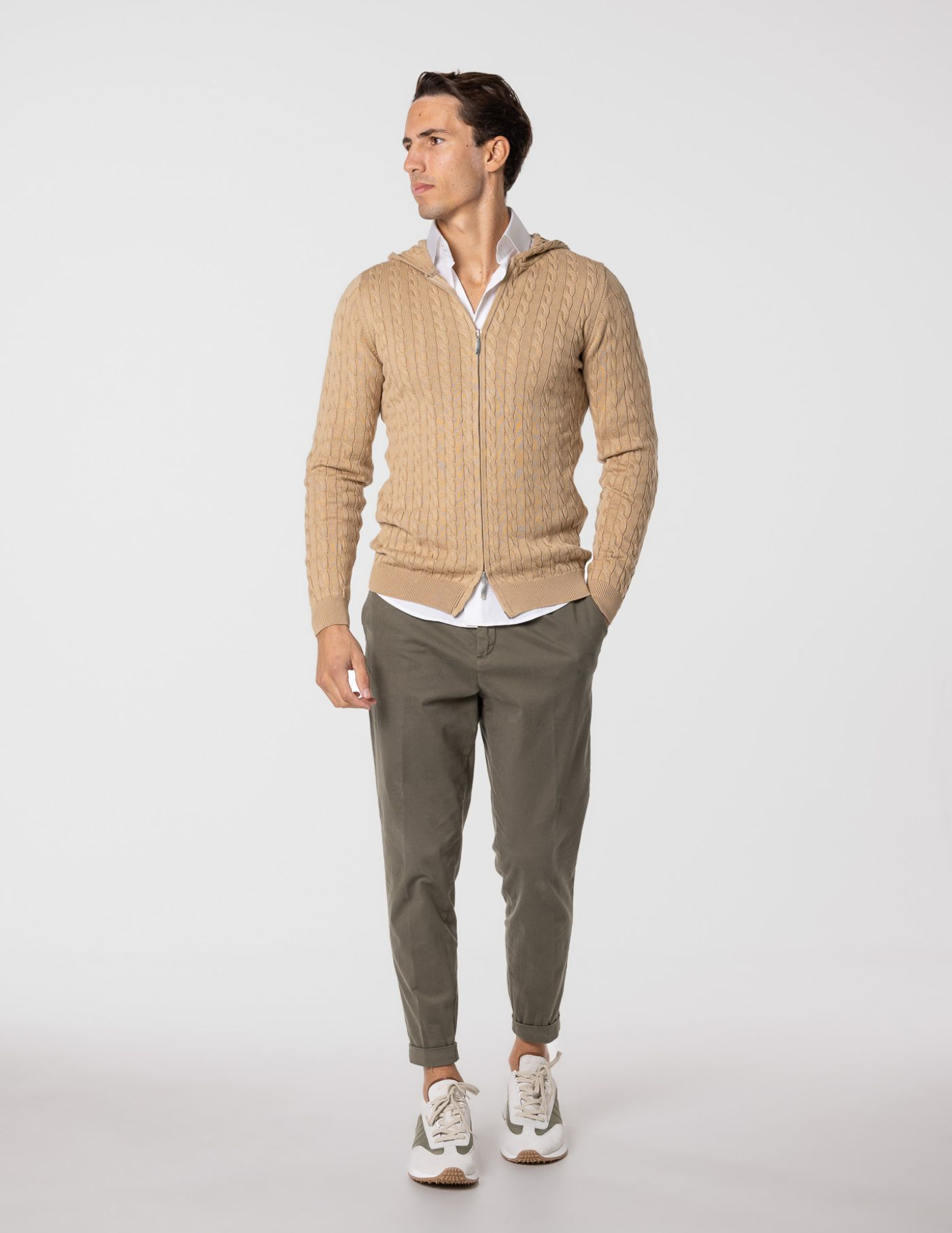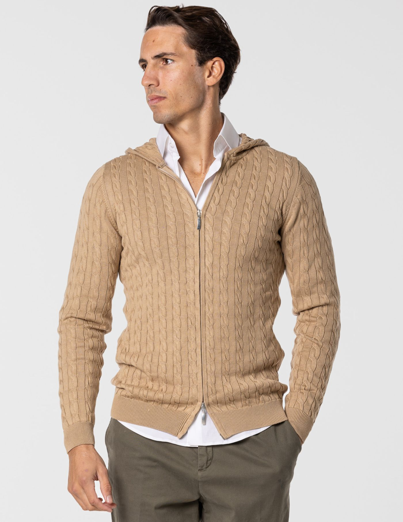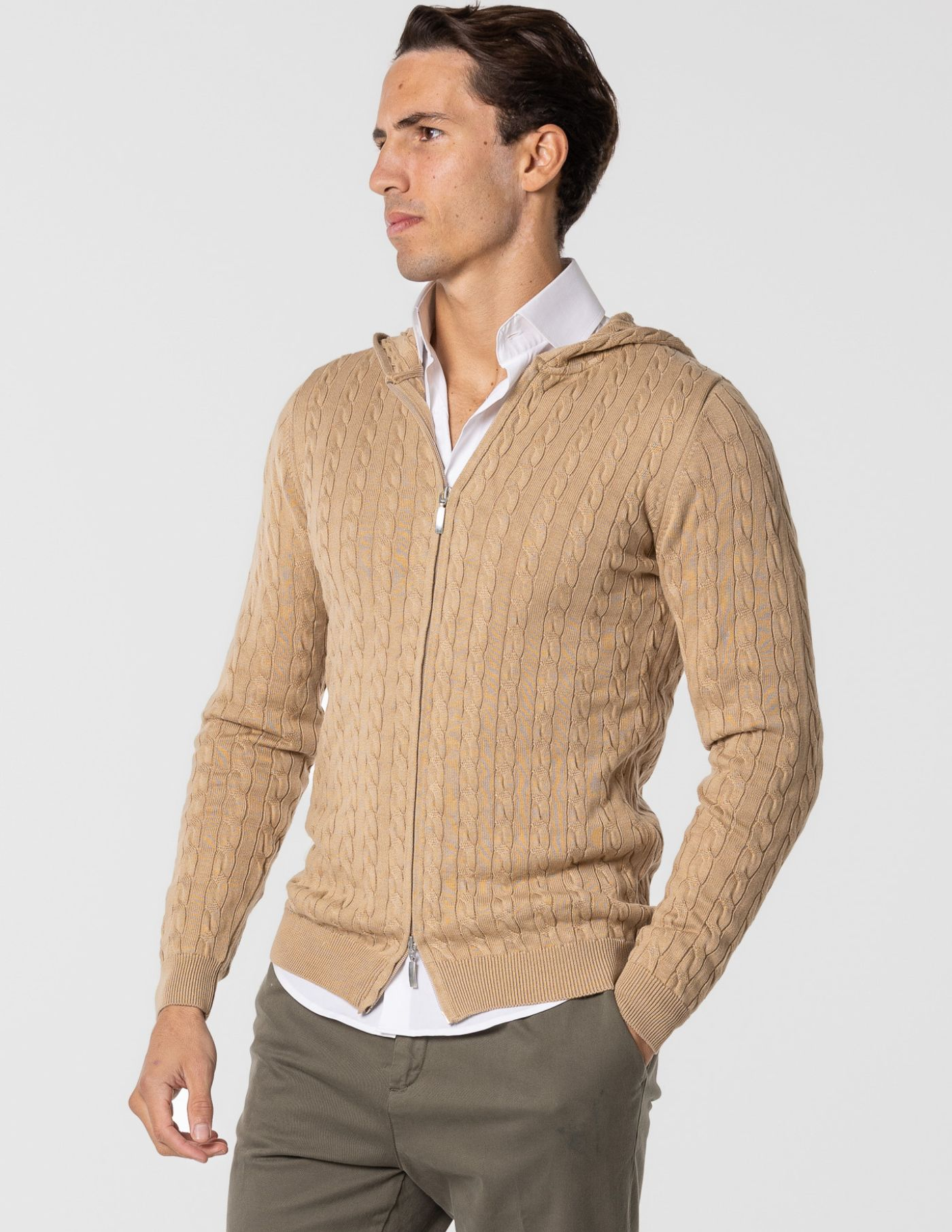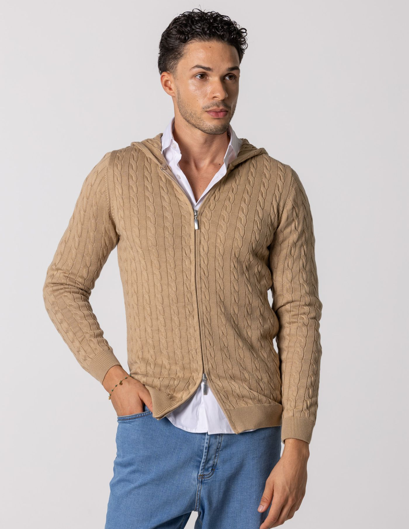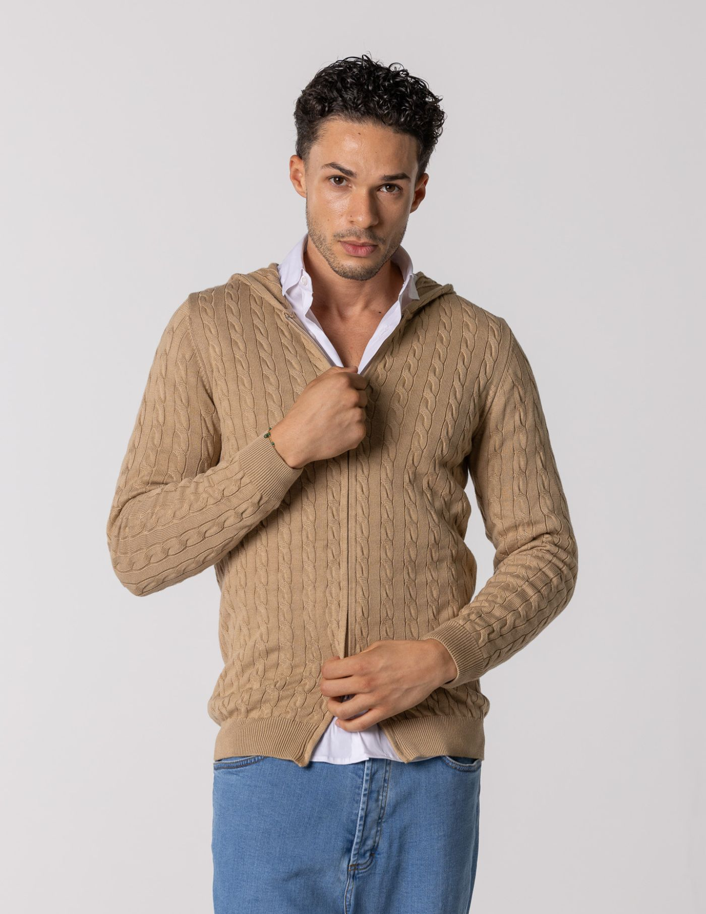 Casaco de malha suave e confortável, ideal para os dias mais frescos. Feito com 100% algodão, oferece um toque macio e devido ao seu fitting slim fit fica mais ajustado ao corpo. Possui fecho frontal e um elegante detalhe de trança em tricot, acrescentando textura e sofisticação ao design. Fácil de combinar, é perfeito para um look casual e versátil.