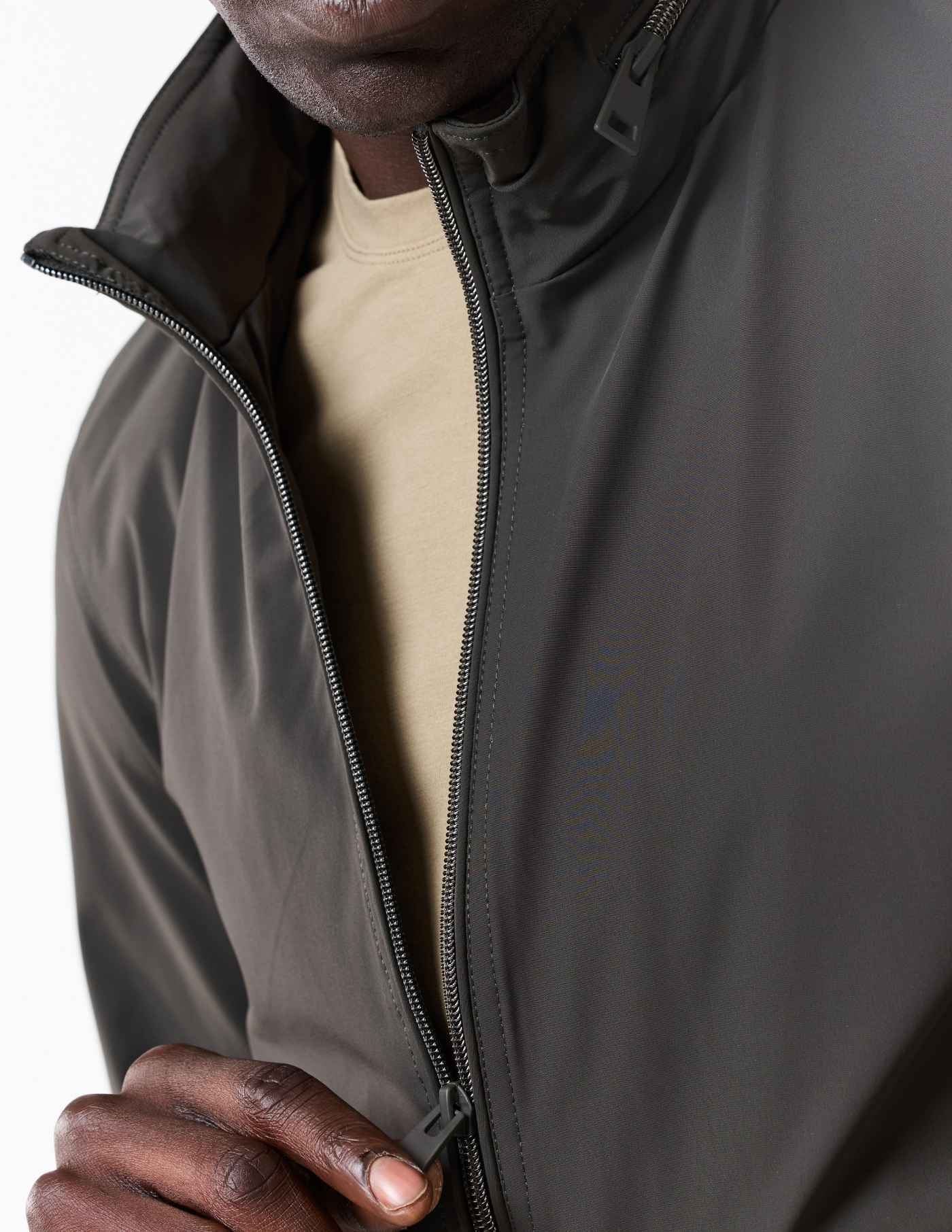 Ideal para acrescentar uma camada de conforto aos looks de meia estação. Corte slim fit, capuz dentro da gola (com acesso através de fecho) e punho e bainha elásticos. Finalizado com fecho frontal e dois bolsos laterais.