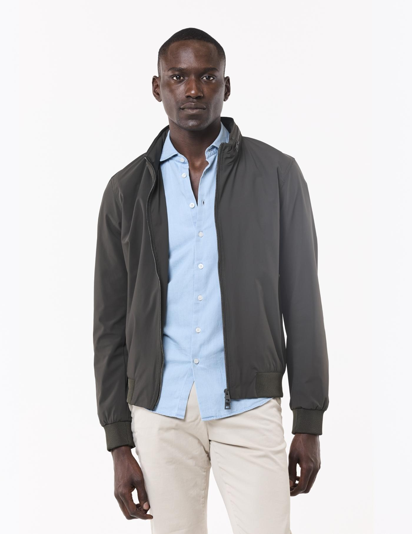 Casaco estilo parka, em tecido técnico de cor verde.