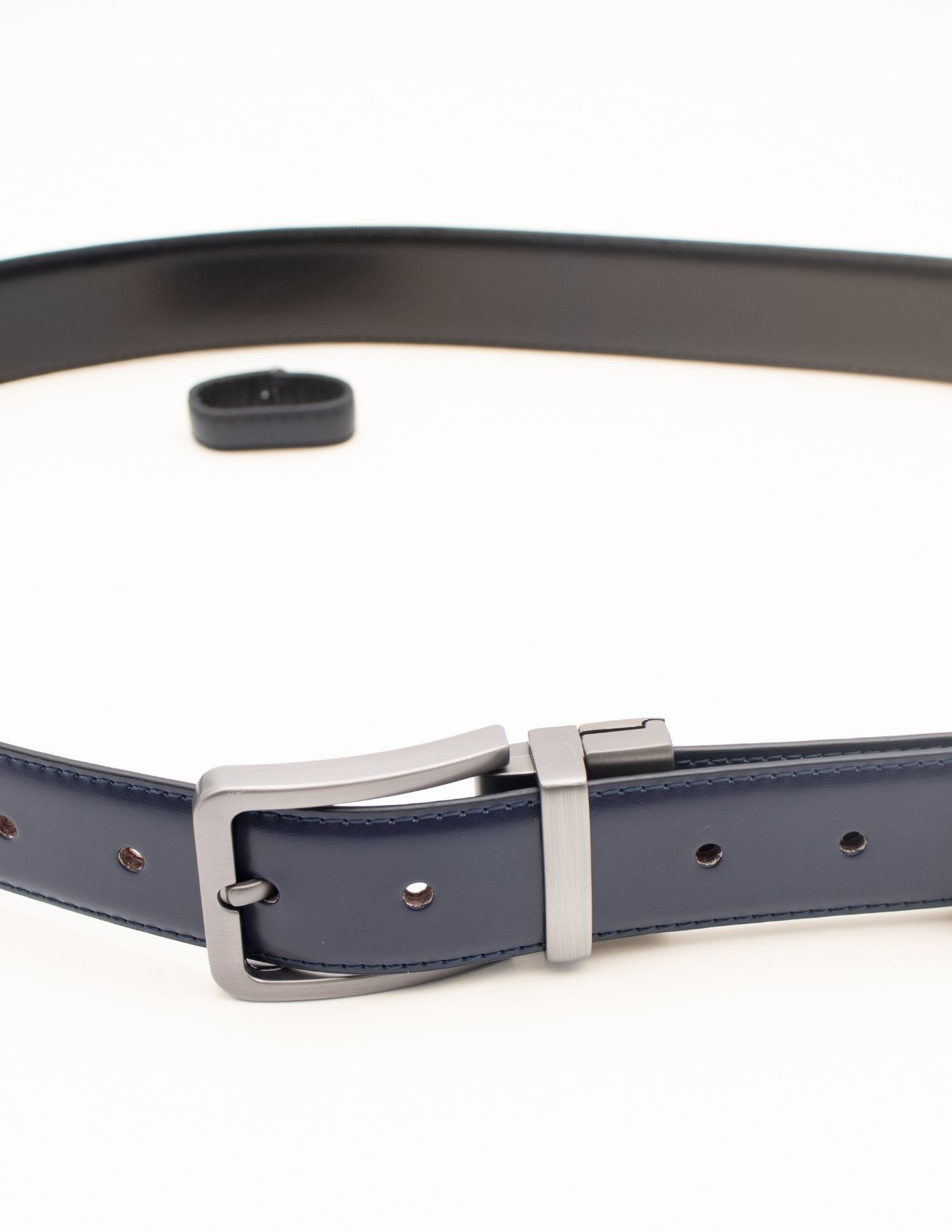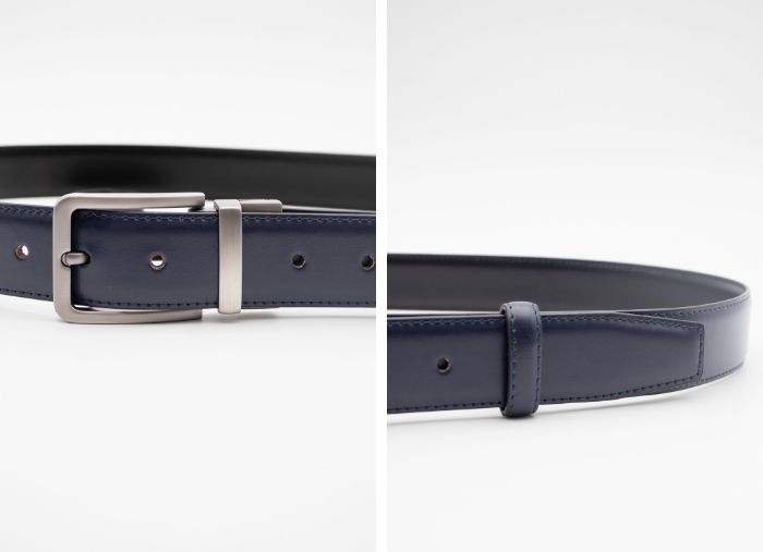 O parceiro ideal para as tuas calças. Desenhamos um cinto clássico e confortável, seja para o dia a dia ou uma ocasião especial. É reversível, com as cores azul e preto, o que permite escolher o tom mais apropriado para cada look. Confecionado em pele genuína e finalizado com fivela em aço.