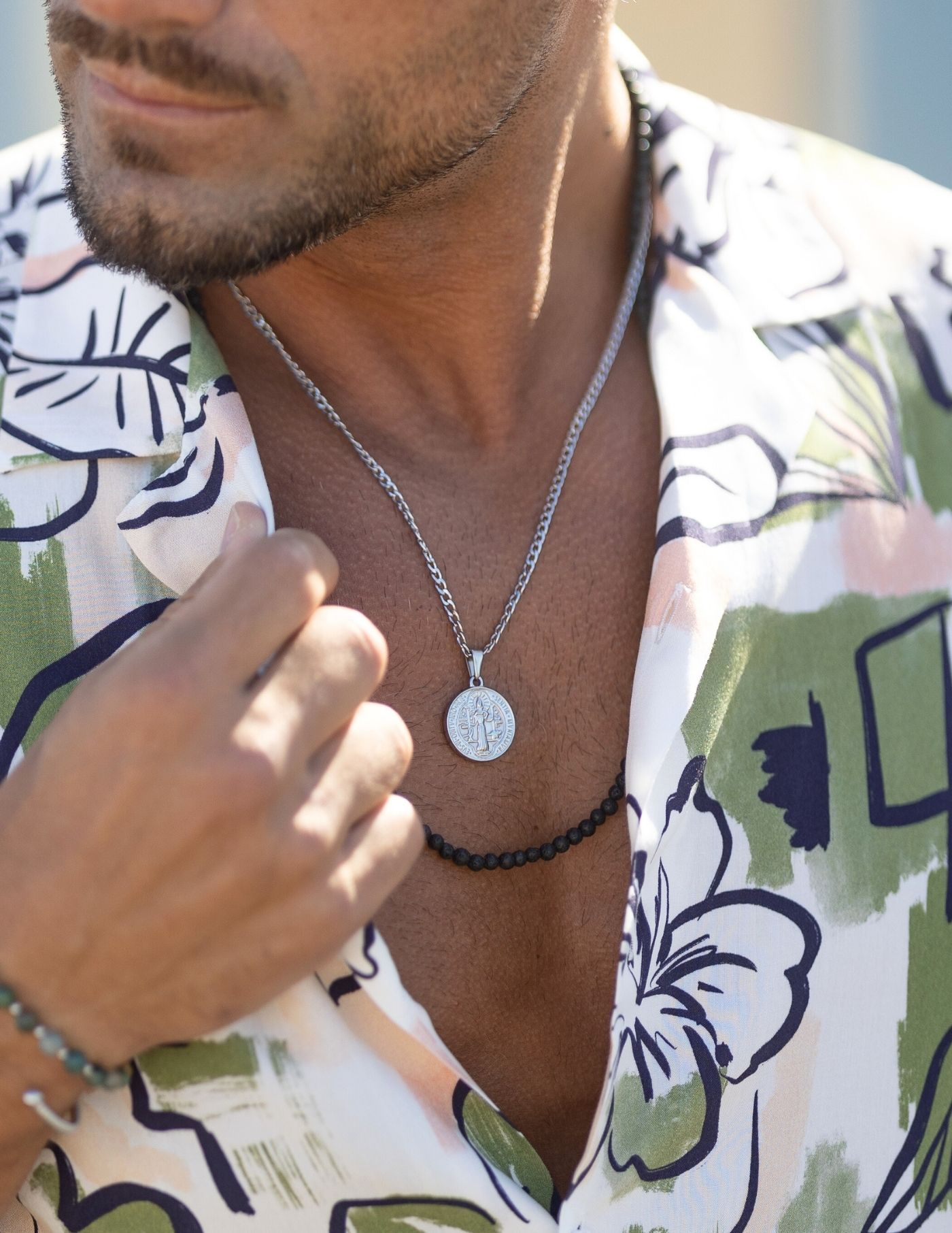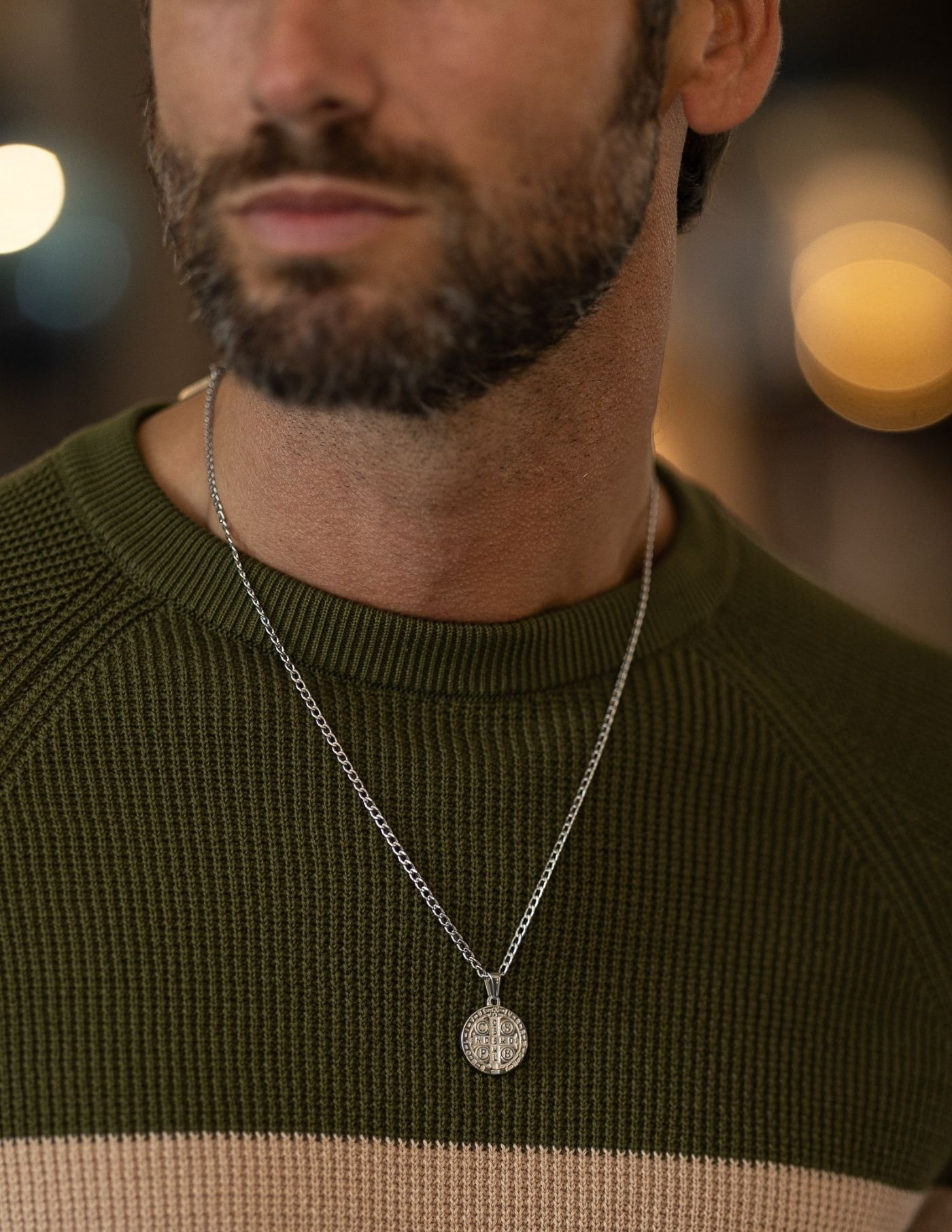 A sua constituição é em aço inoxidável de elevada qualidade (316L), com acabamento polido. Com um comprimento de 55 cm e uma espessura de 2 mm, é o acessório perfeito para enriquecer um look casual.