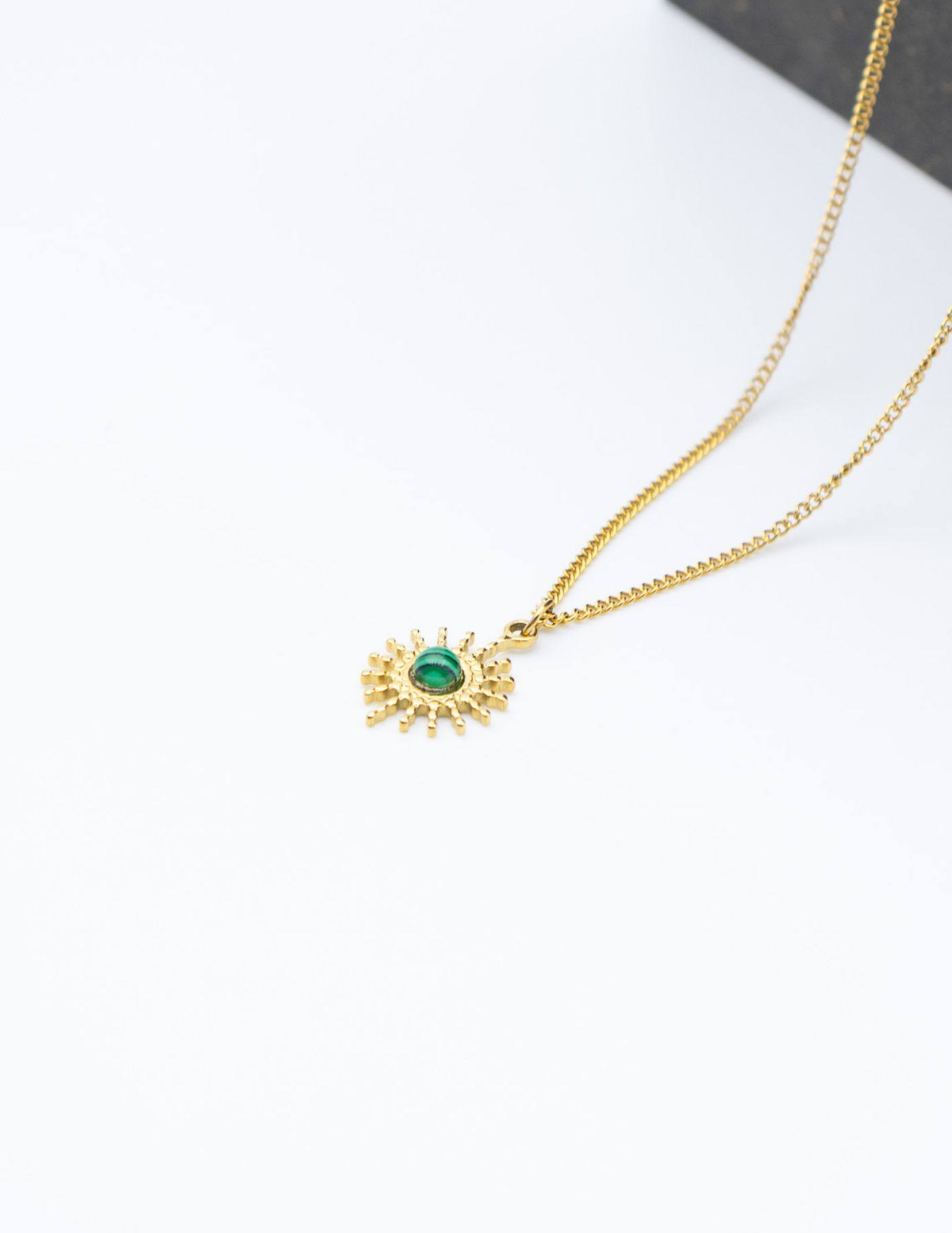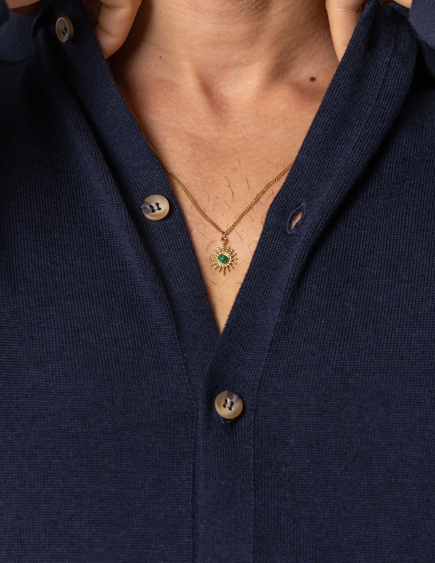 Colar masculino em aço inoxidável de alta qualidade, com um elegante pendente em forma de sol. Inspirado na pedra abalone, o pendente possui um toque iridescente, evocando os tons únicos e místicos do oceano. Este acessório combina durabilidade e estilo, sendo ideal para quem procura um visual moderno e distinto. Perfeito para elevar qualquer look casual ou sofisticado.
