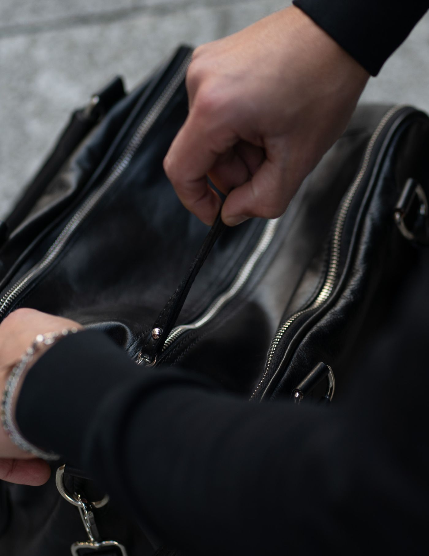 Detalhes: Duas alças / Fechos de correr prateados