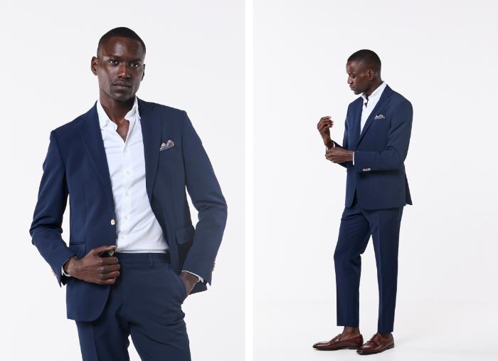 Fato de duas peças (blazer e calça). Uma peça indispensável em qualquer guarda-roupa, seja para uma ocasião especial ou para a rotina de trabalho. Este modelo é clássico, com blazer de dois botões com detalhe de costura picotada (pick stitch), e possui um design elegante e moderno. É leve e confortável de usar, e composto por materiais que garantem um aspeto estético irrepreensível e liberdade de movimentos. Finalizado com acabamento non-iron, não sendo necessário passar a ferro para que se mantenha elegante.