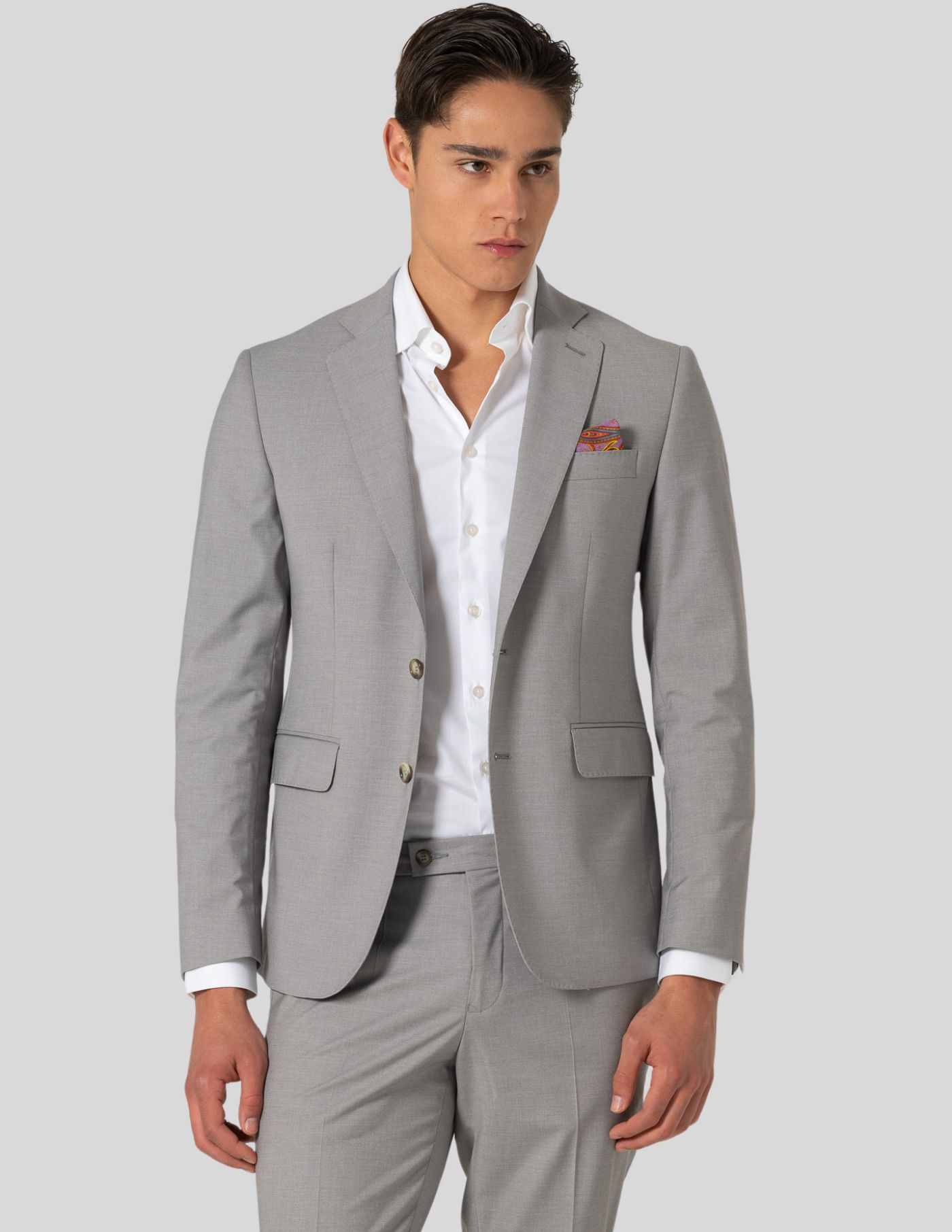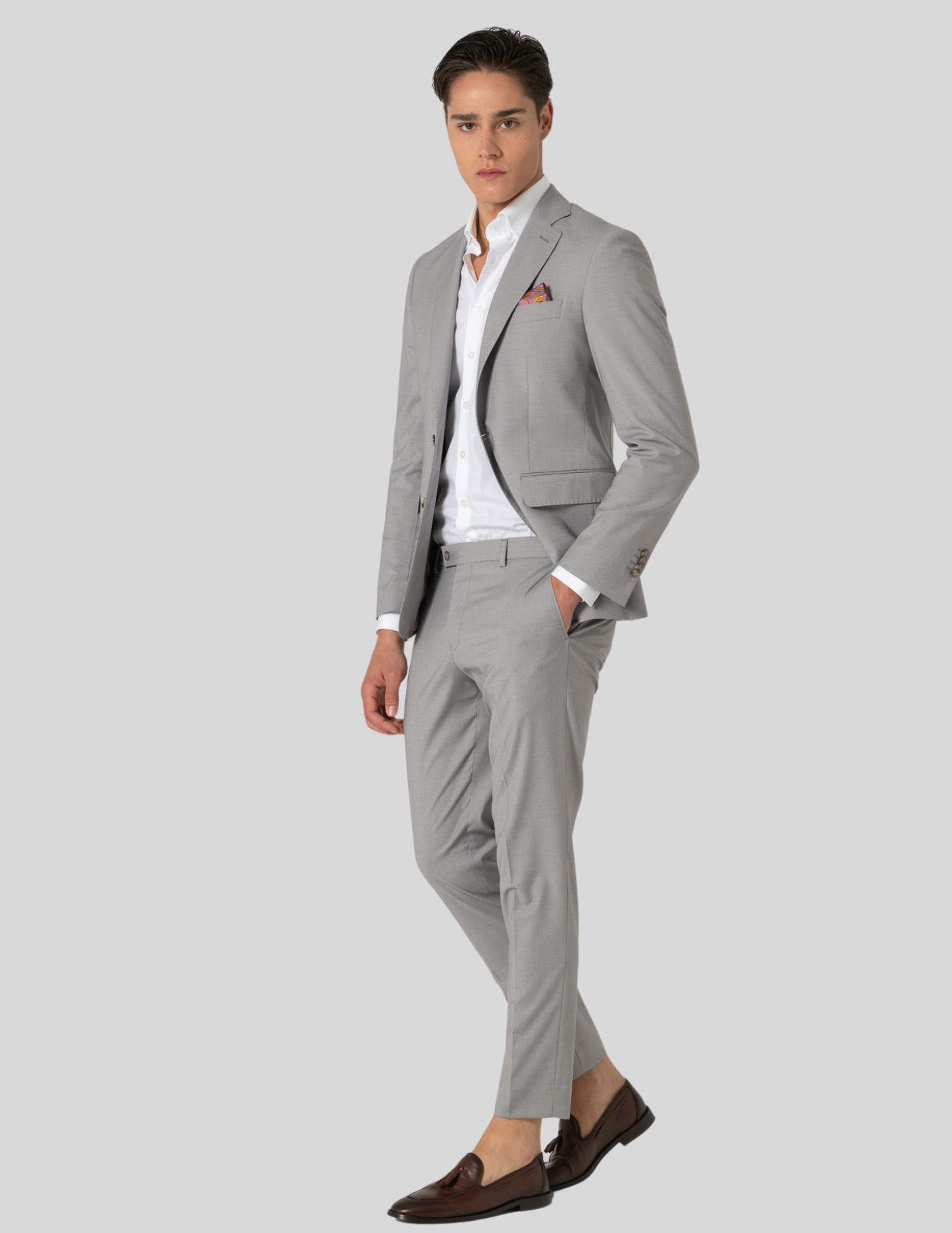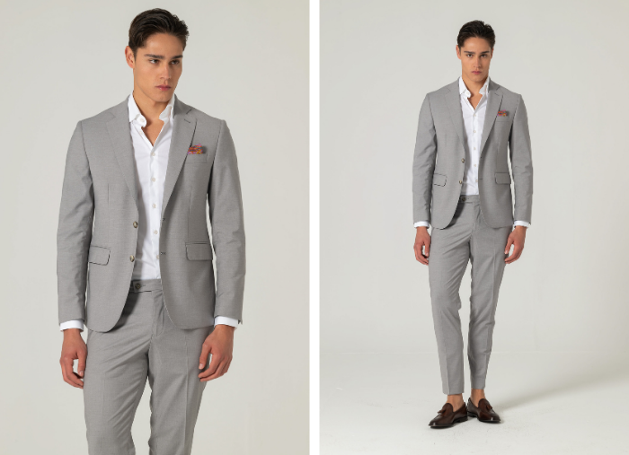 Fato de duas peças (blazer e calça). Uma peça indispensável em qualquer guarda-roupa, seja para uma ocasião especial ou para a rotina de trabalho. Este modelo é clássico, com blazer de dois botões com detalhe de costura picotada (pick stitch), e possui um design elegante e moderno. É leve e confortável de usar, e composto por materiais que garantem um aspeto estético irrepreensível e liberdade de movimentos. Finalizado com acabamento non-iron, não sendo necessário passar a ferro para que se mantenha elegante.